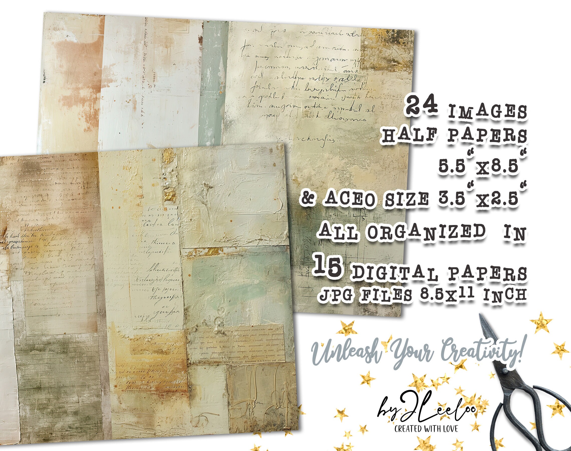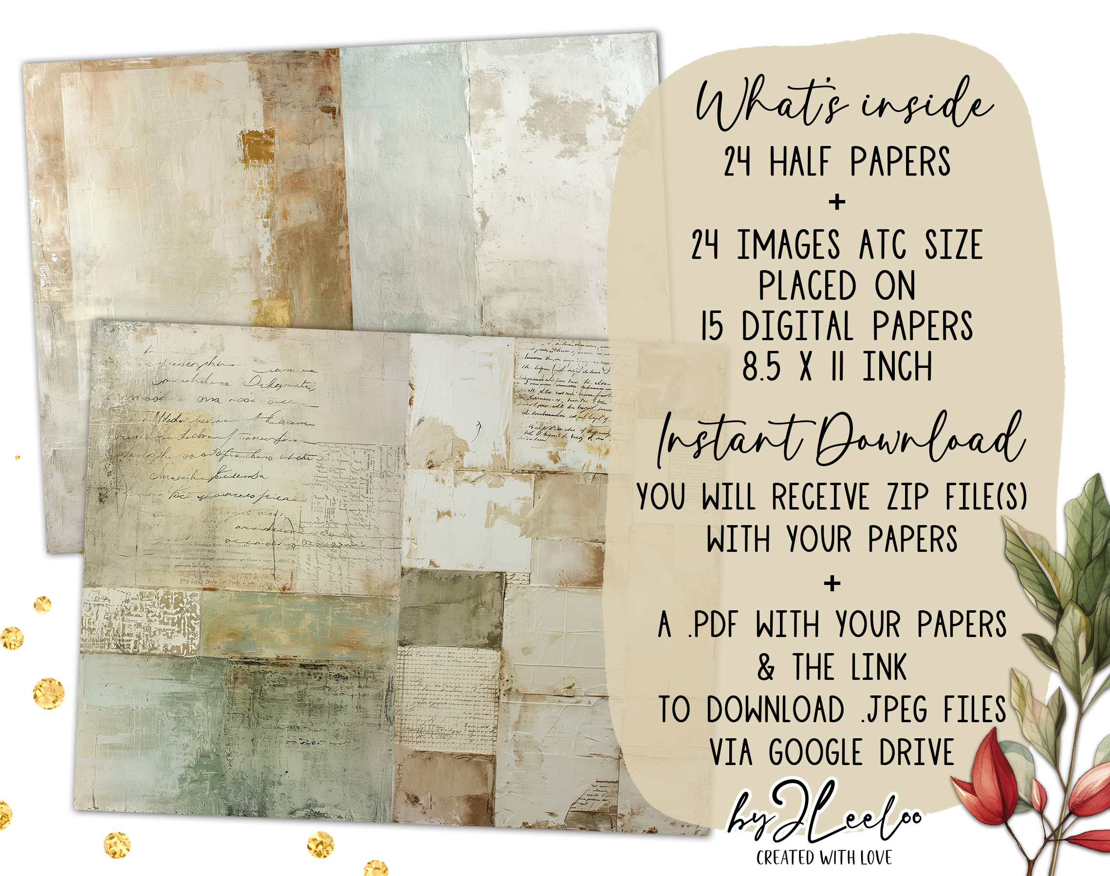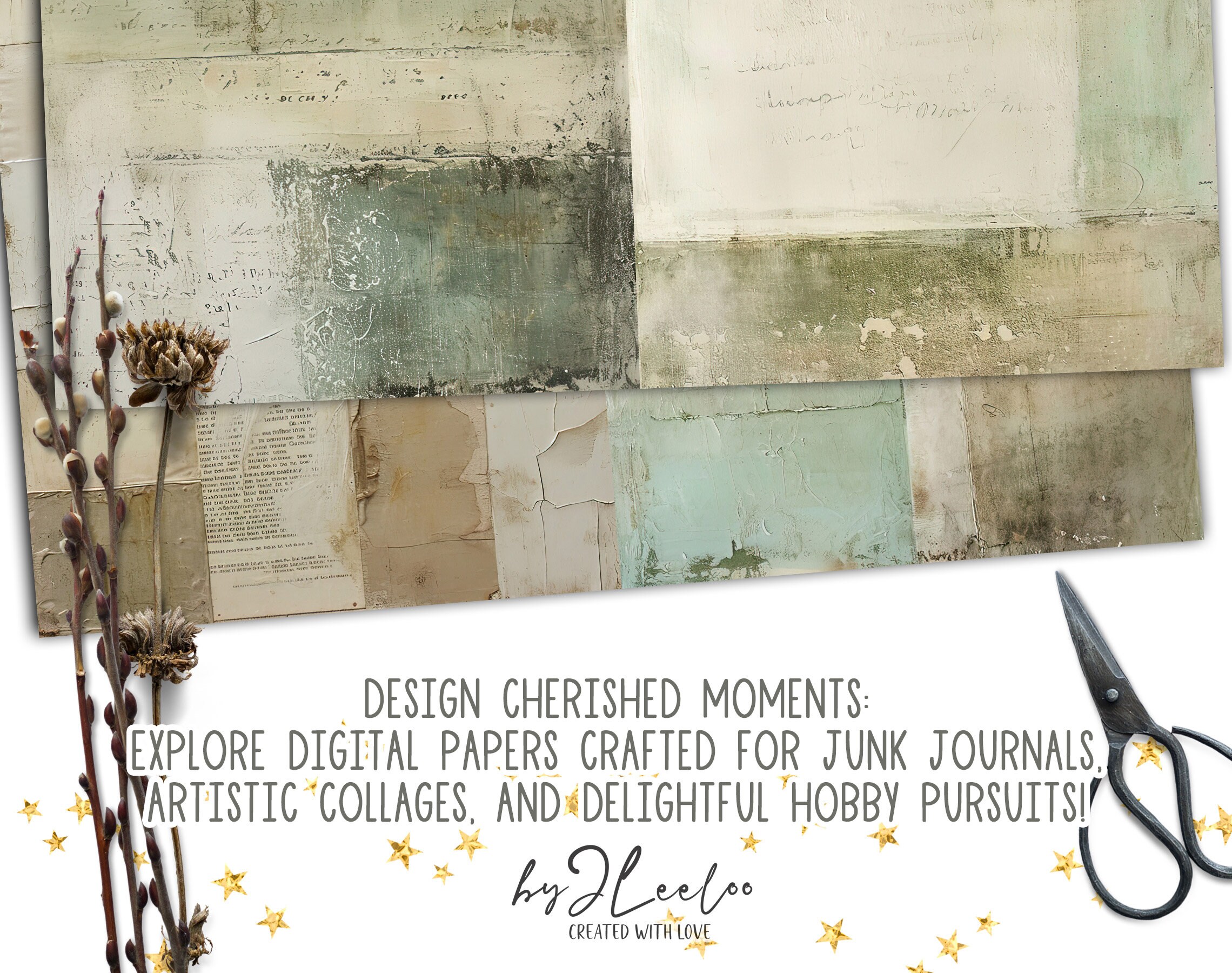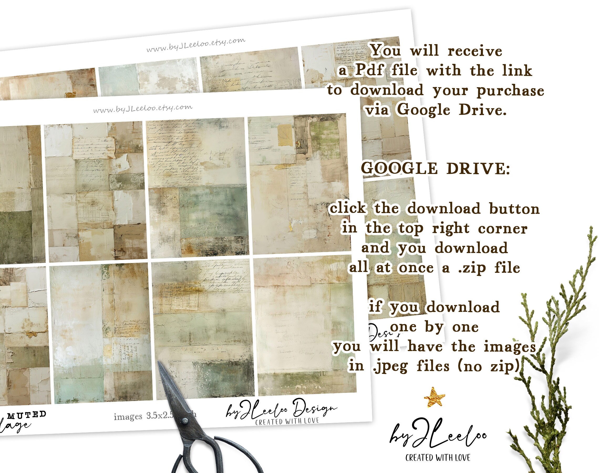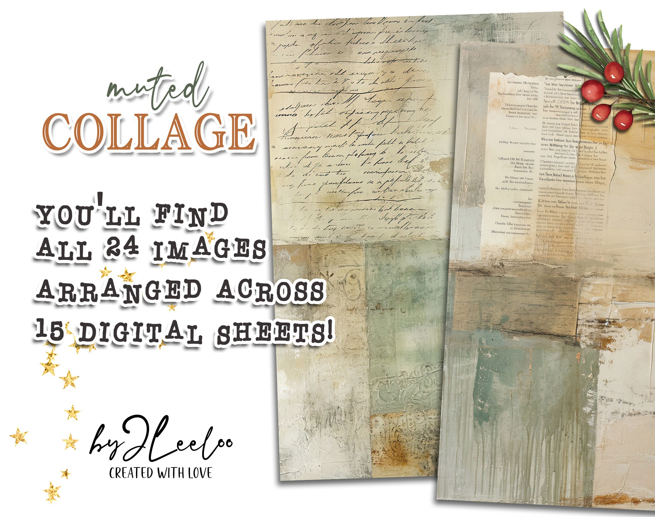 MUTED COLLAGE half pages printable | junk journal Mixed Media supplies | Distressed grunge dirty paper card making collage diary | pp715