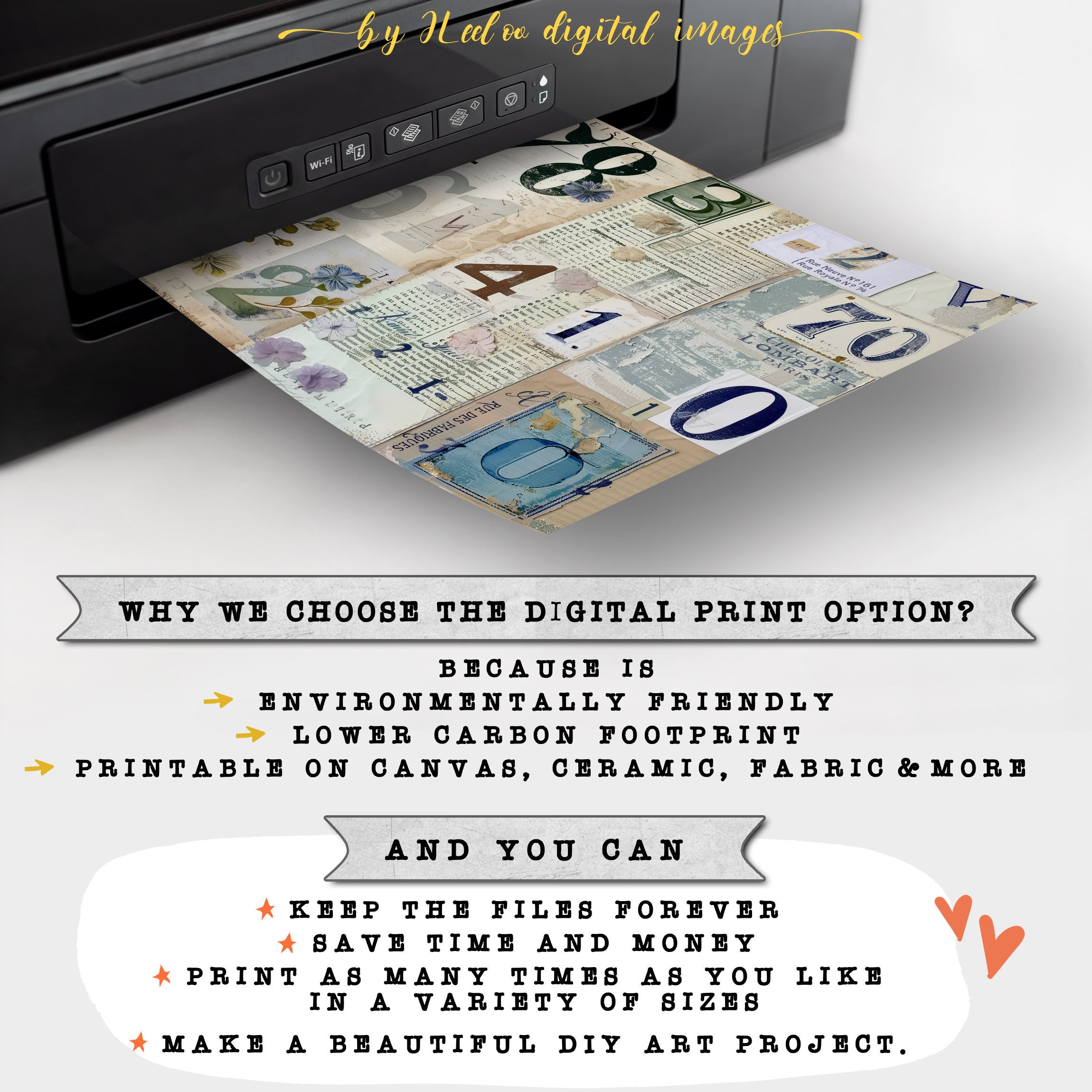 Each digital collage sheet will print out on a 8.5" x 11" page.
