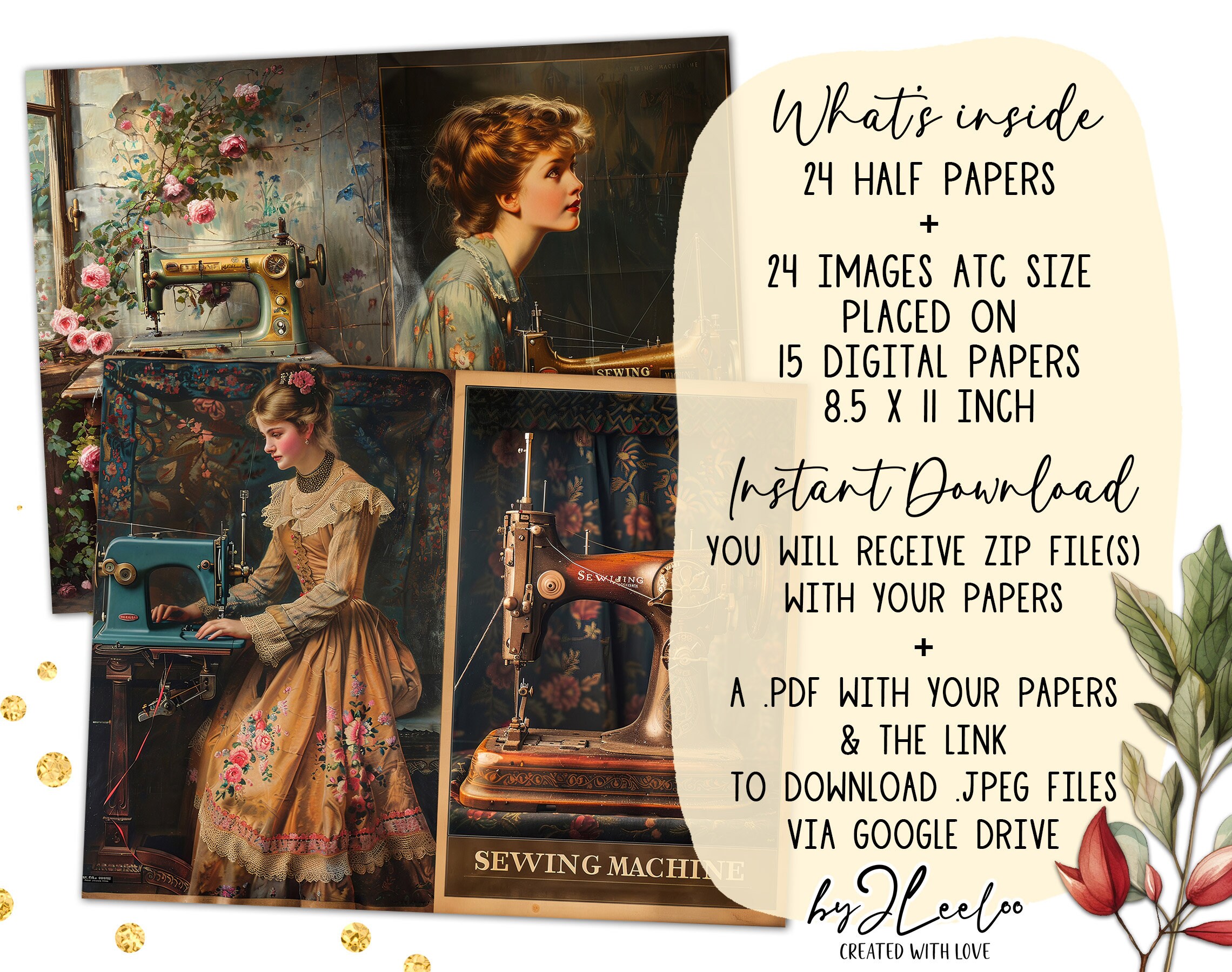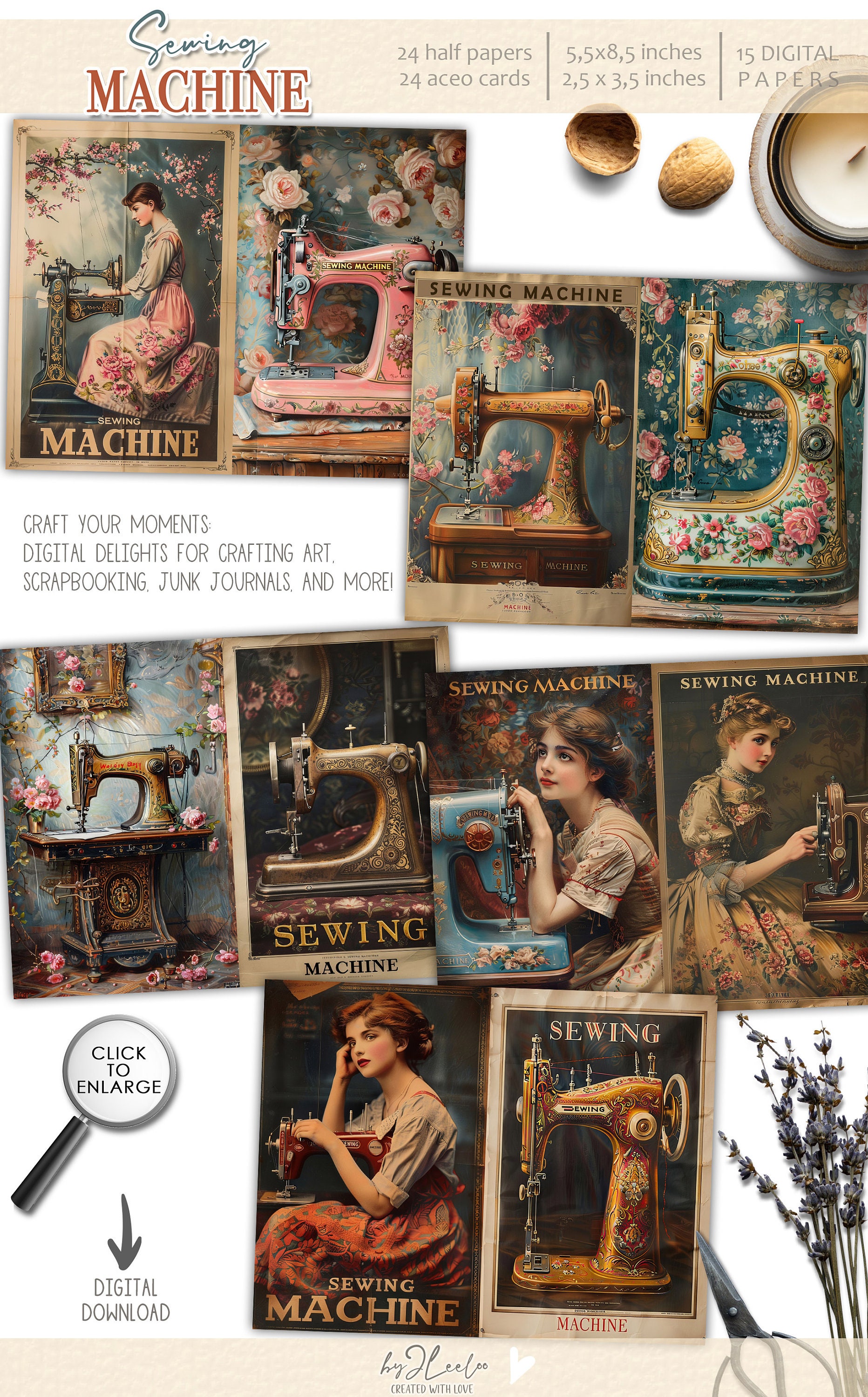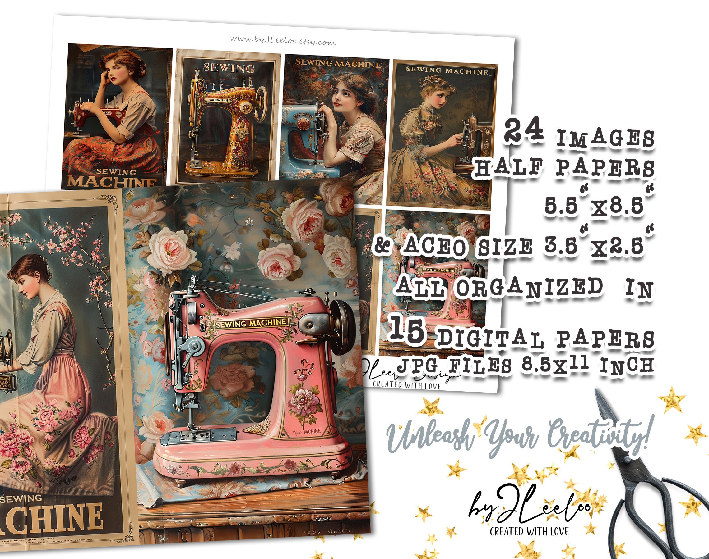 SEWING MACHINE half pages printable ACEO | Poster vintage junk journal Mixed Media supplies | Digital paper card collage postcard | pp741