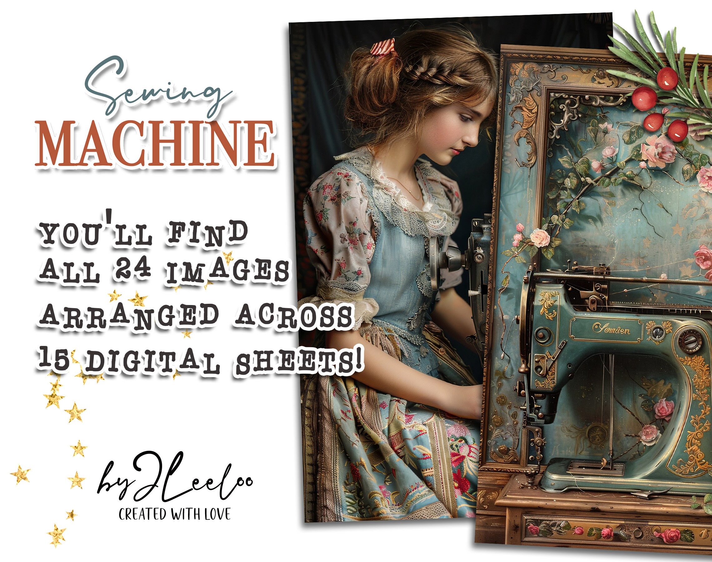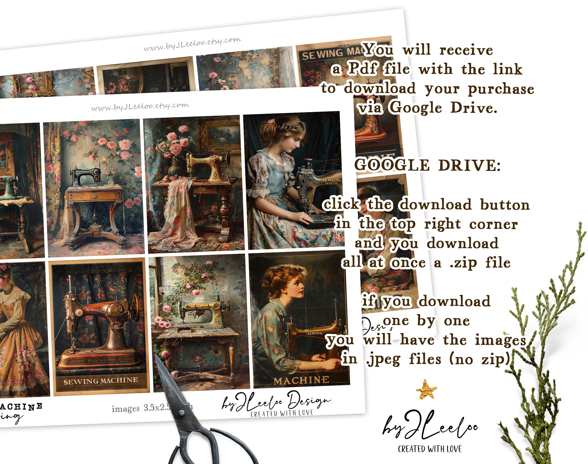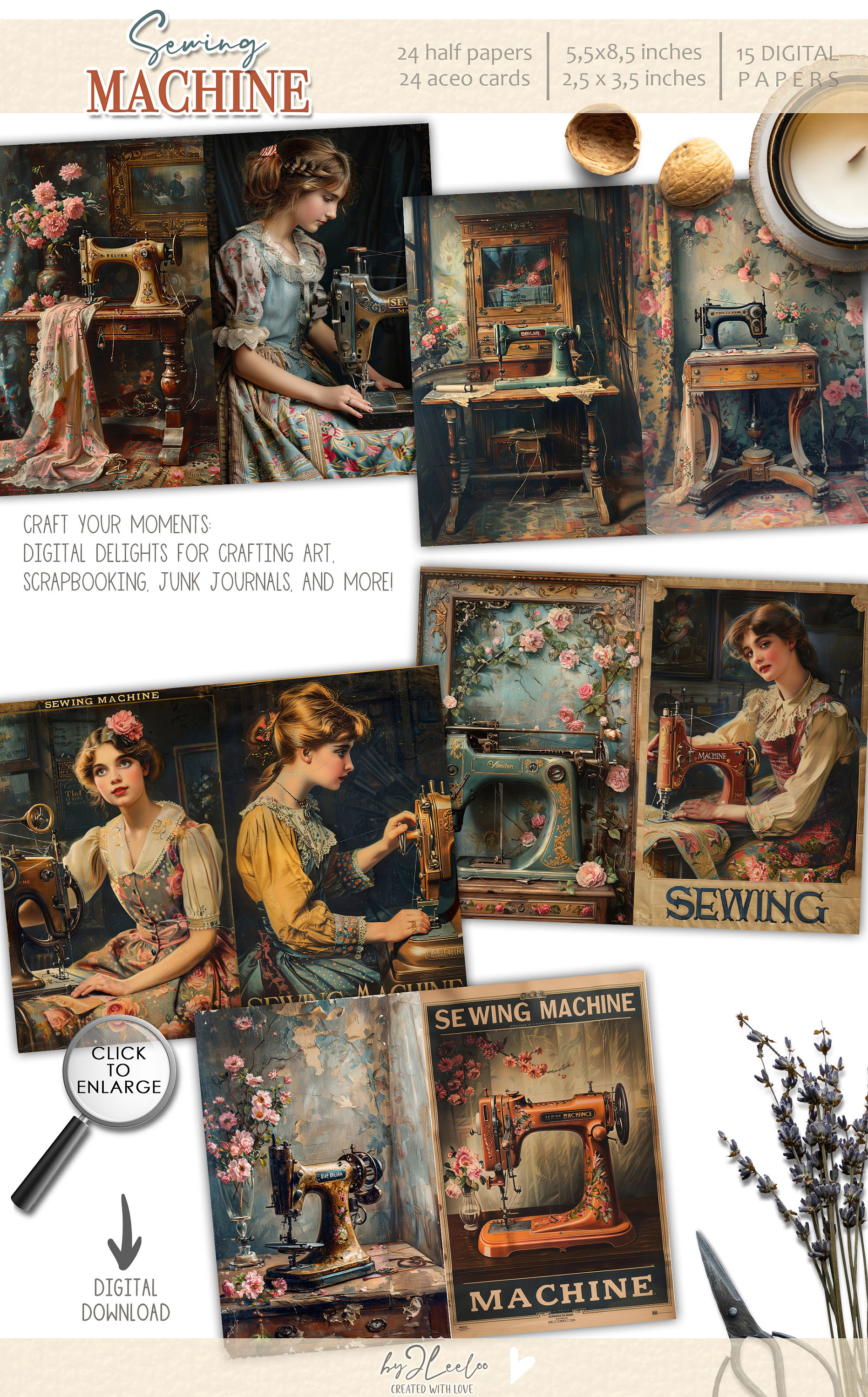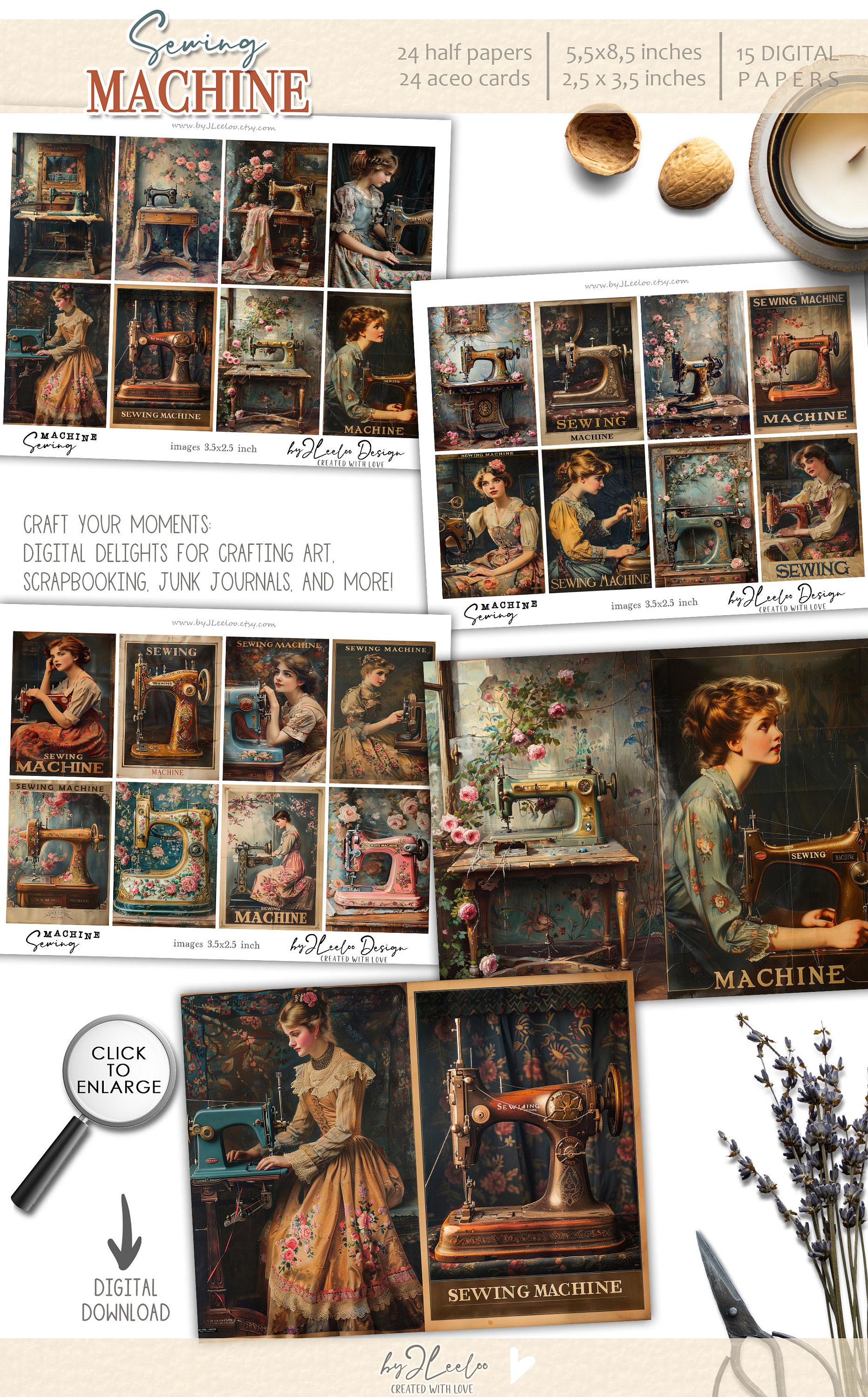 SEWING MACHINE half pages printable ACEO | Poster vintage junk journal Mixed Media supplies | Digital paper card collage postcard | pp741
