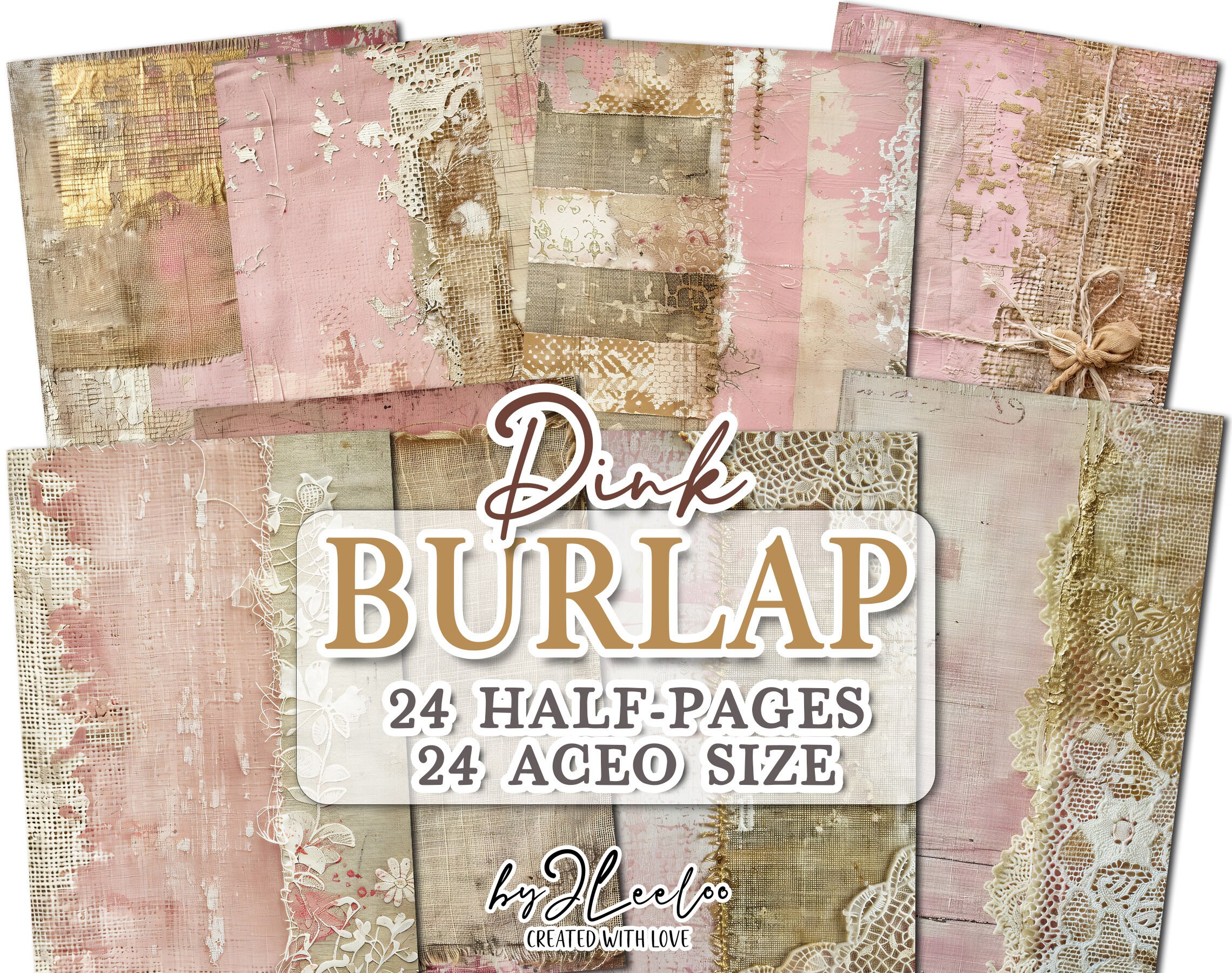 PINK BURLAP half pages printable | Distressed texture Collage junk journal Mixed Media supplies | Shabby chic papers card Aceo diary DiY | pp743