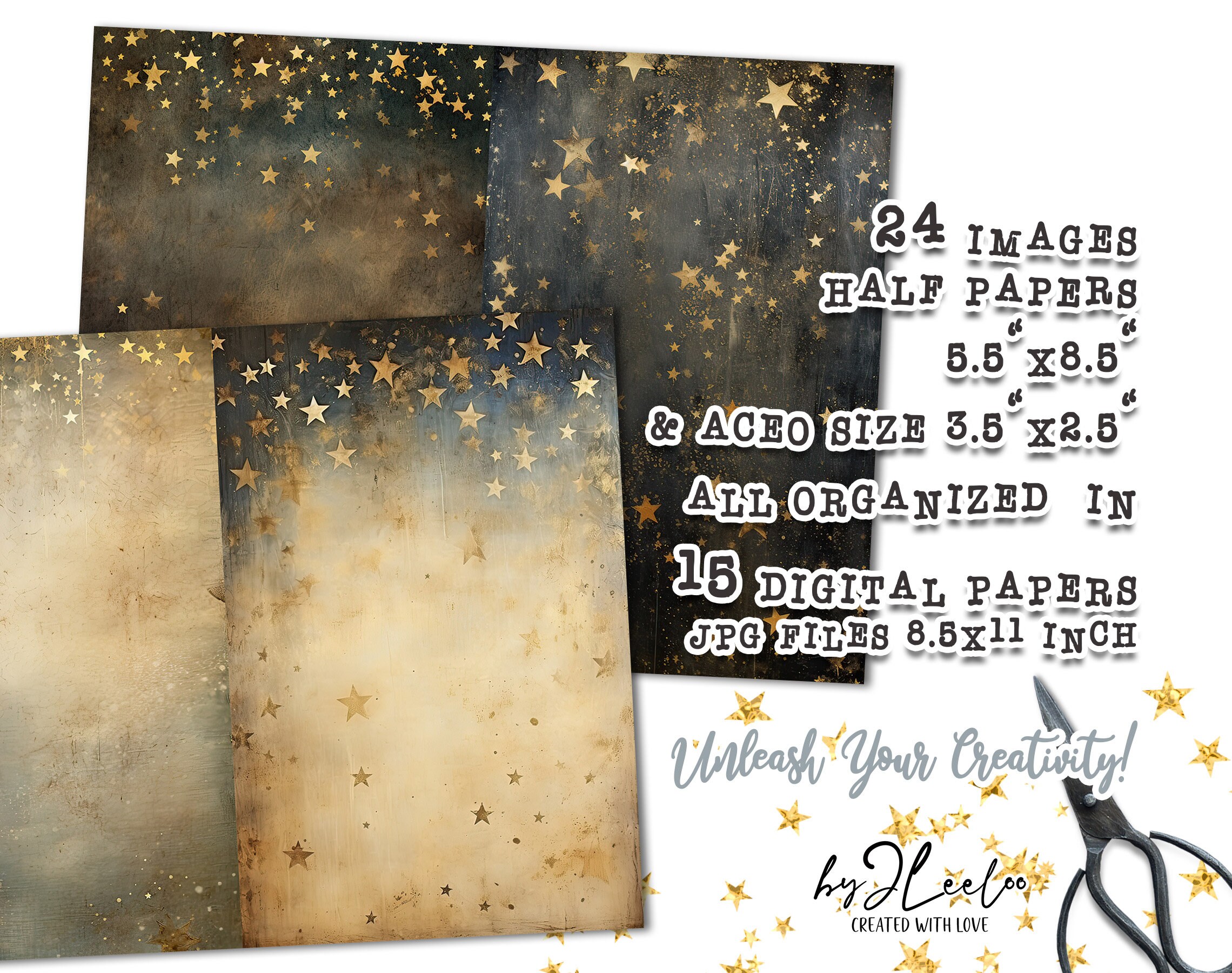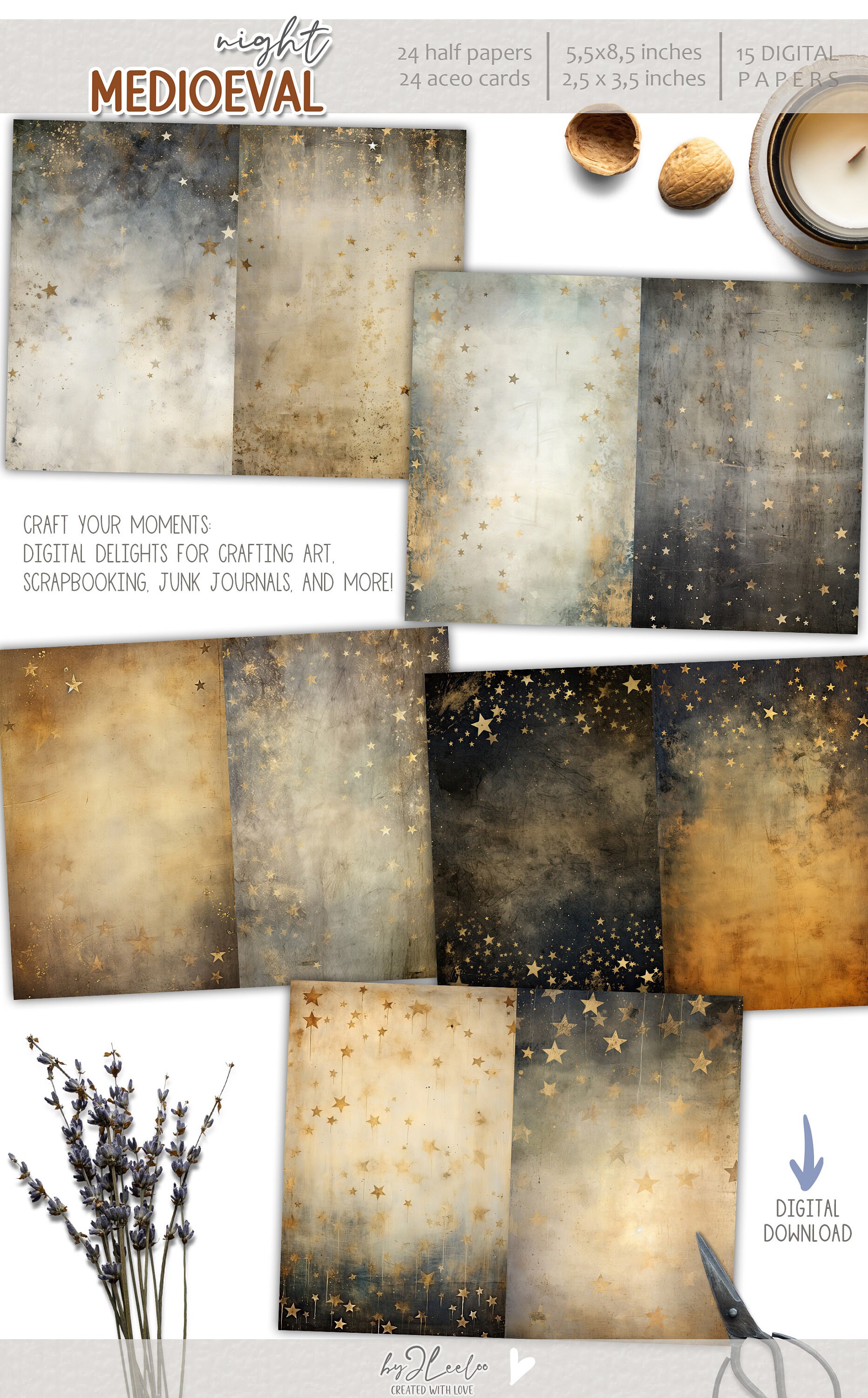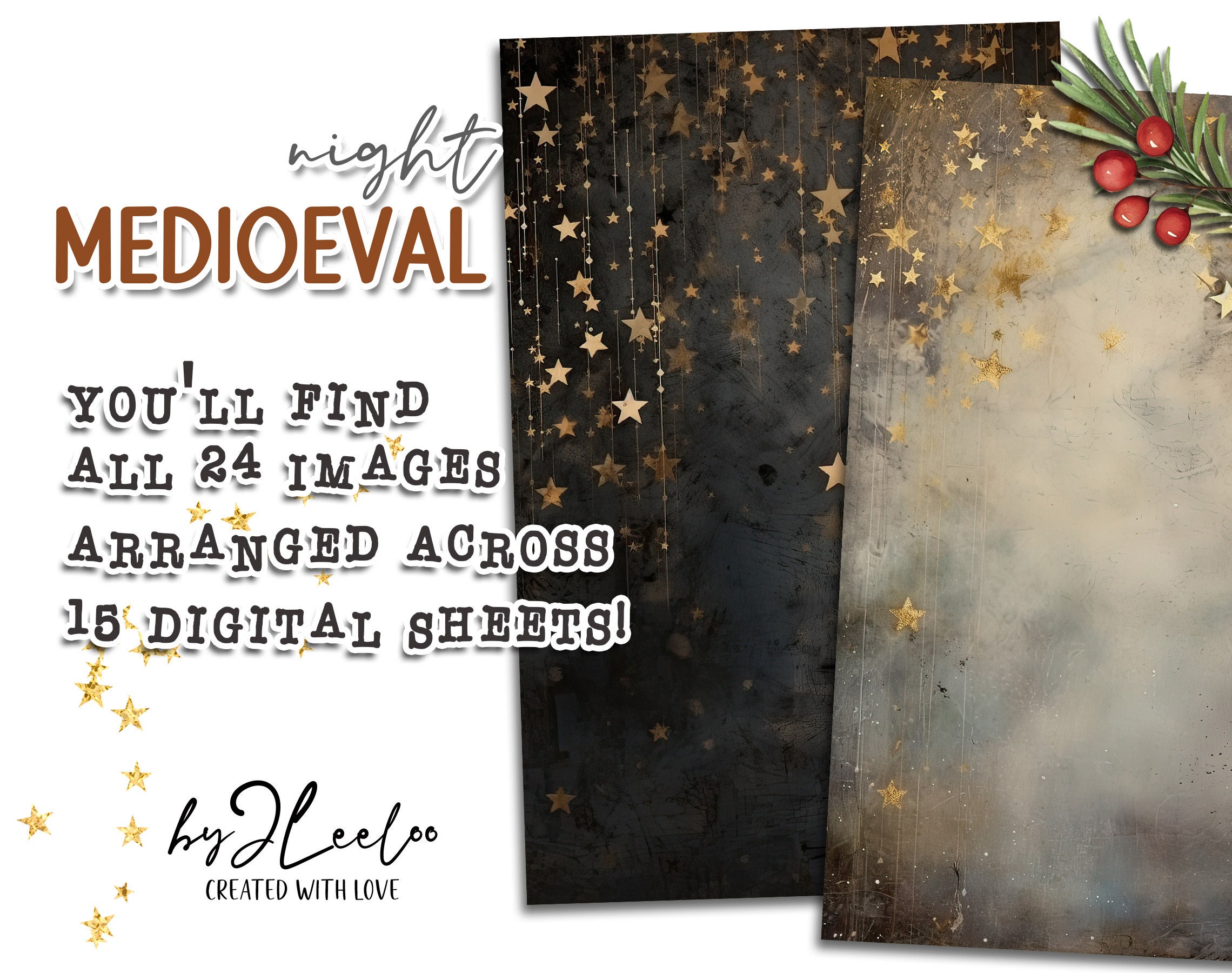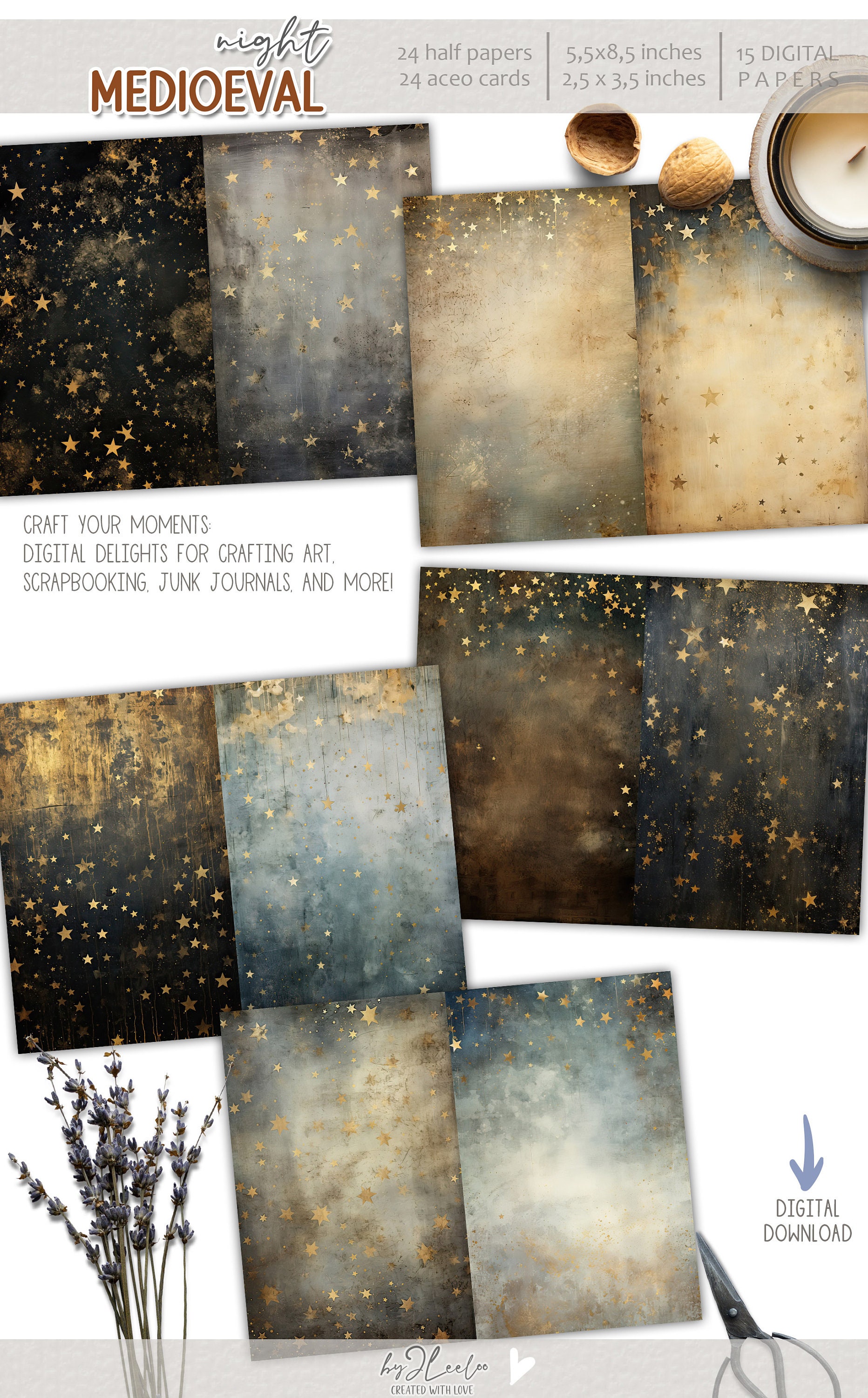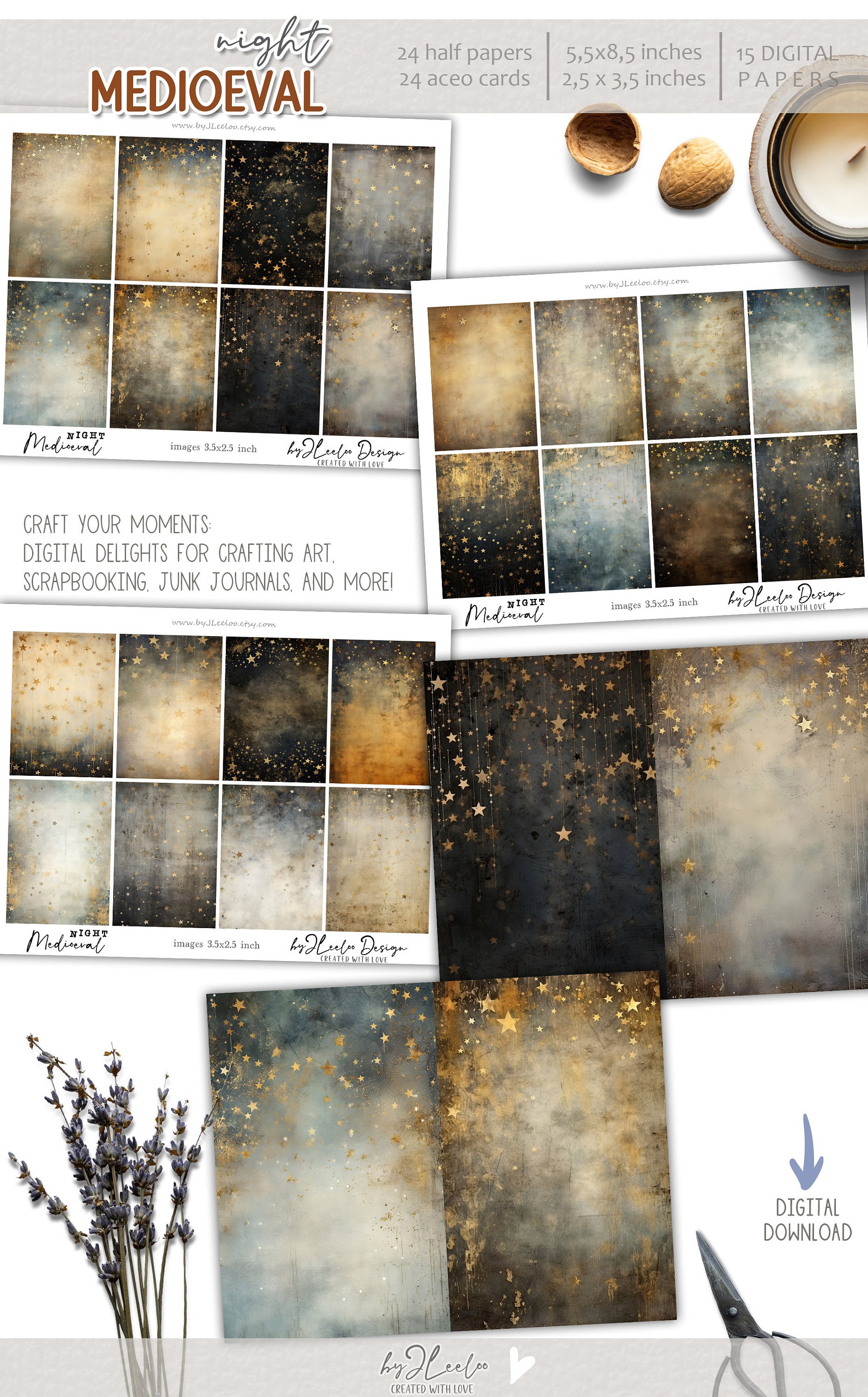 MEDIEVAL NIGHT half pages starry sky printable | junk journal Mixed Media supplies | Vintage print poster card making collage diary | pp727
