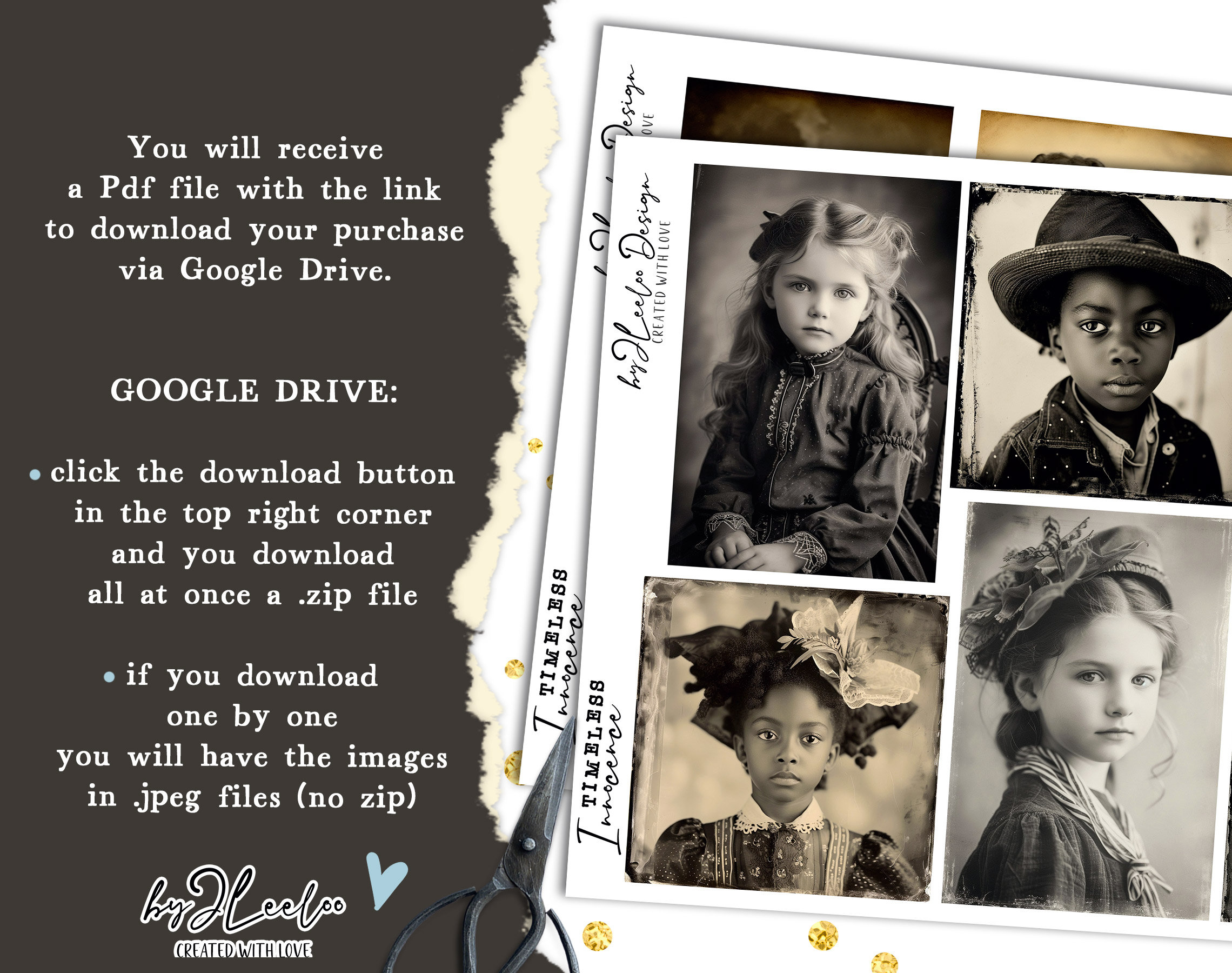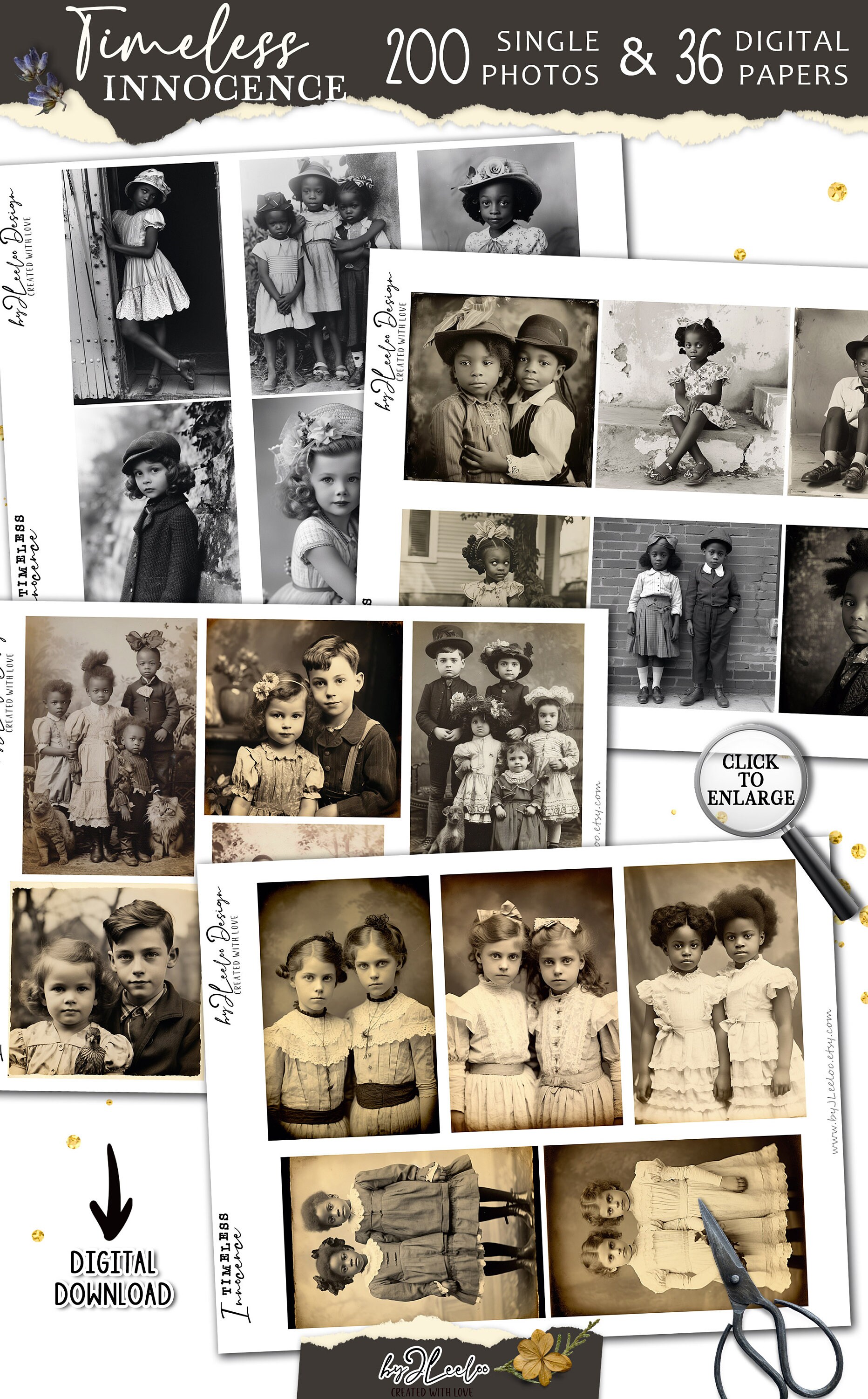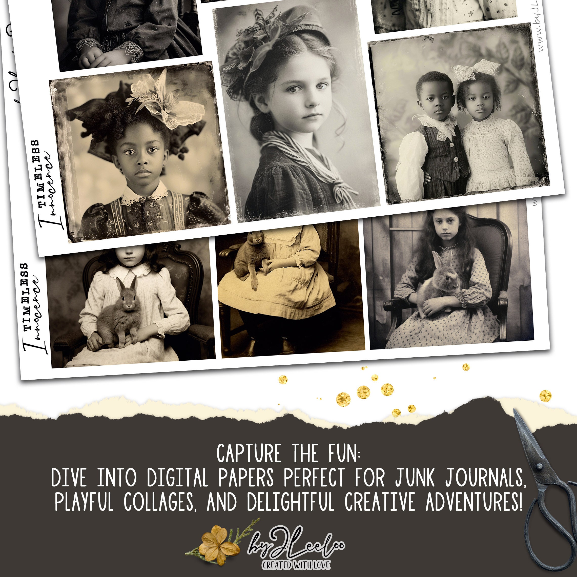 TIMELESS INNOCENCE Collection 200 ephemera children photos printable | Supplies Mixed media junk journal | Bundle cute for crafting | cp005