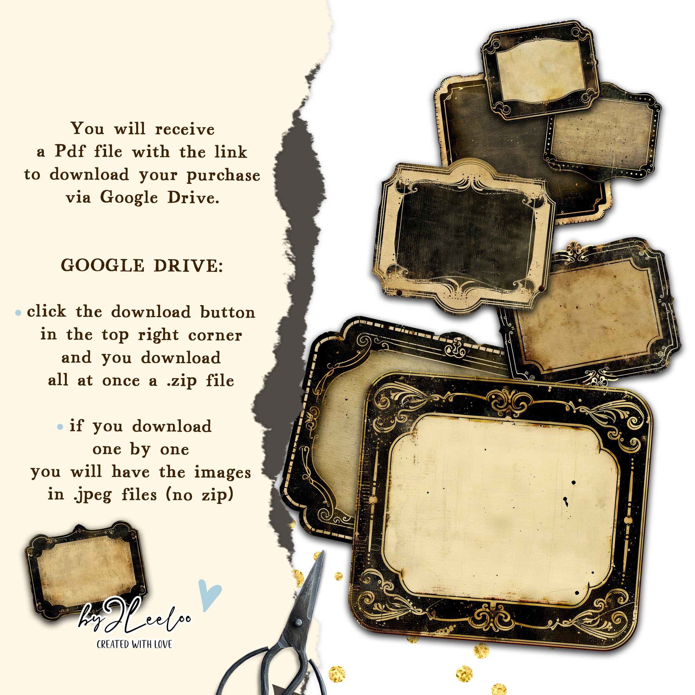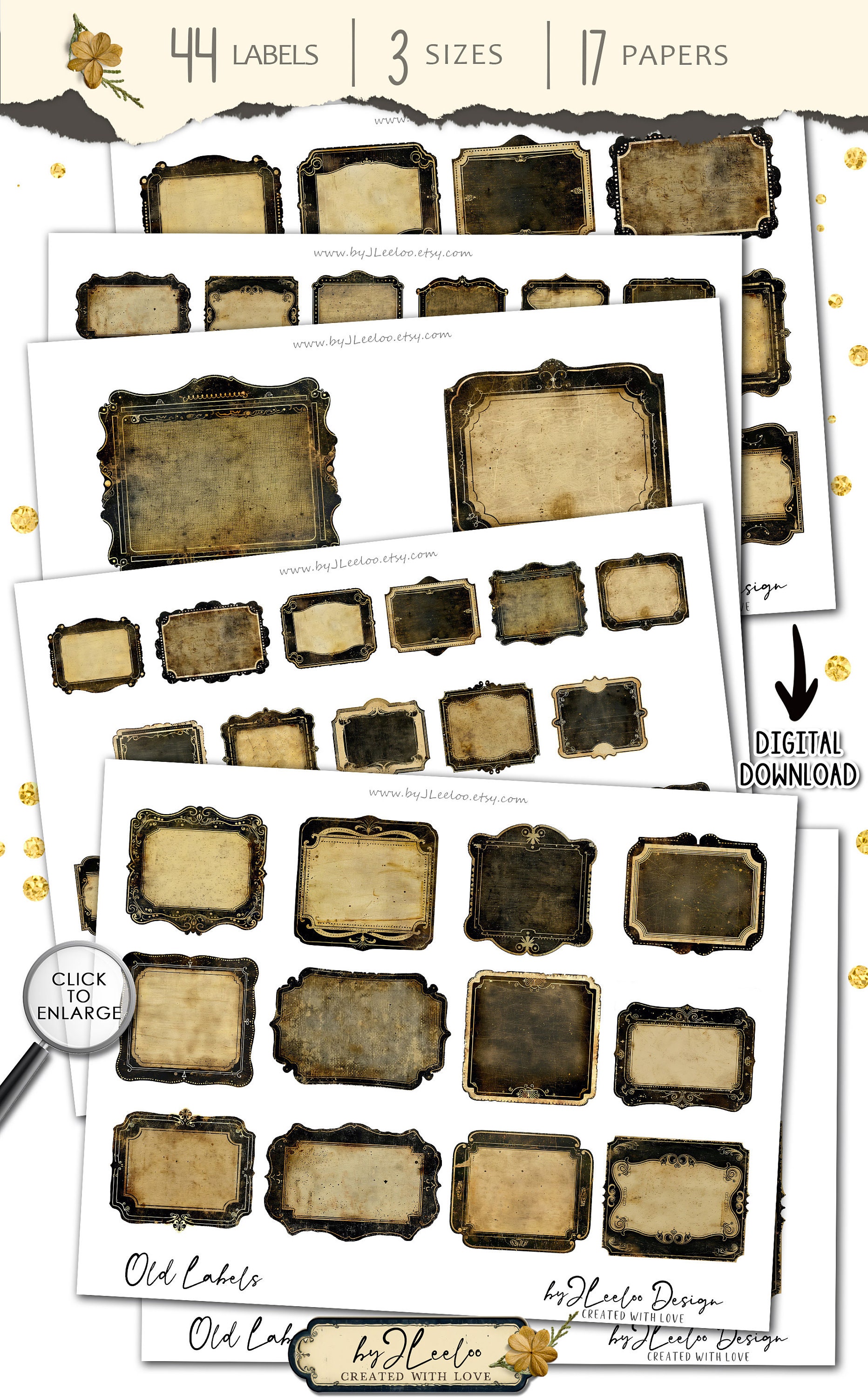 OLD LABELS vintage blank supplies for journal and paper art | Grunge vintage ephemera Steampunk images digital collage | Writable | tl275
