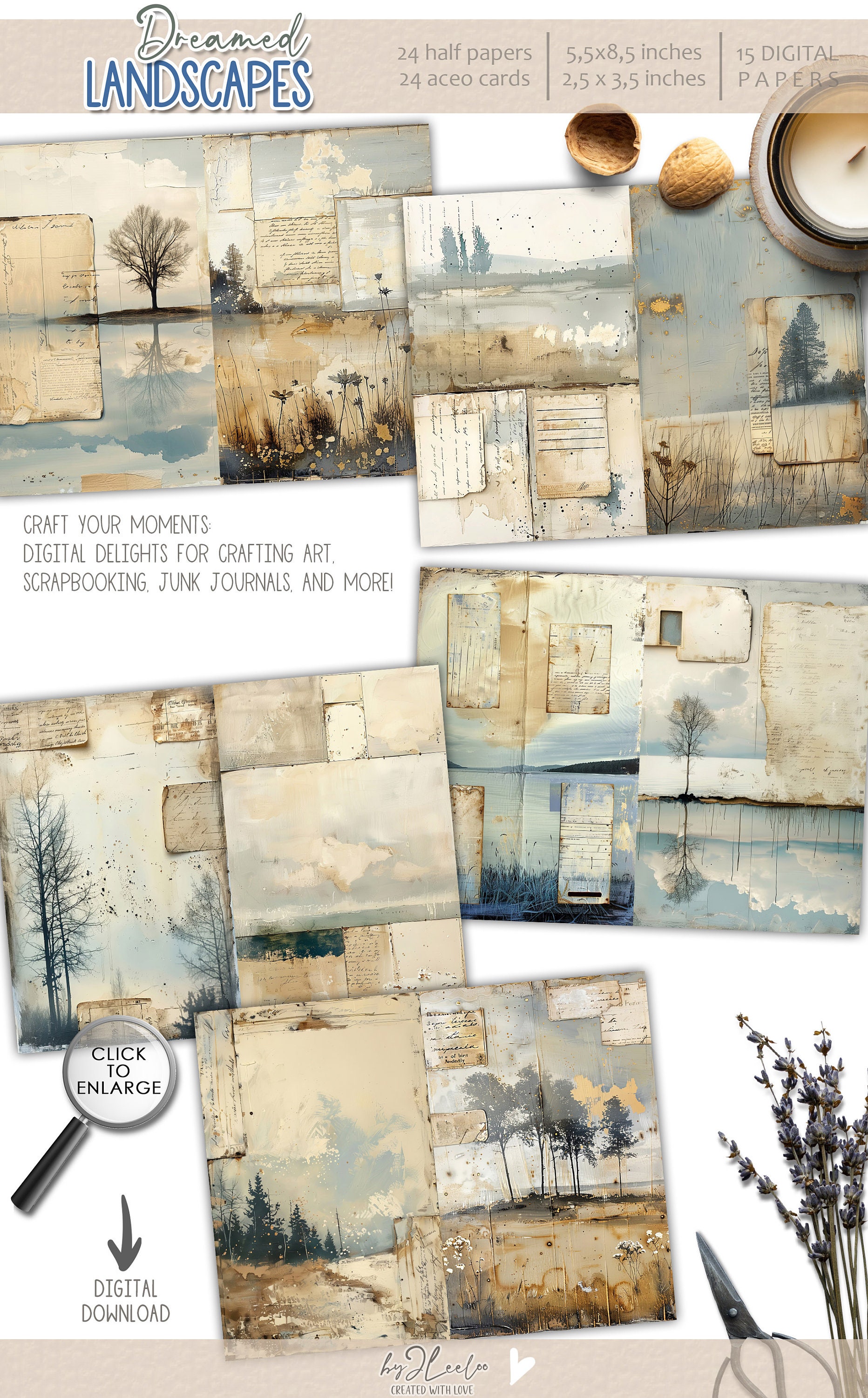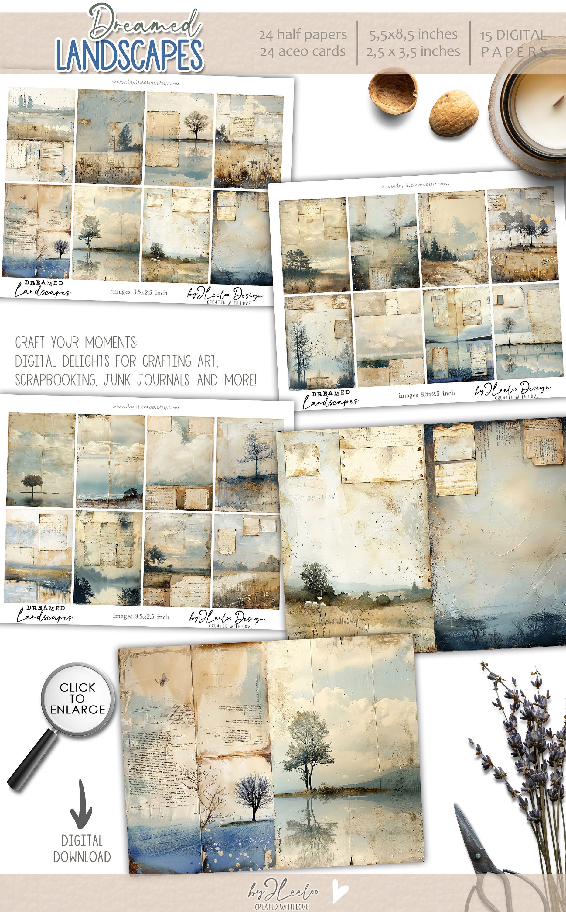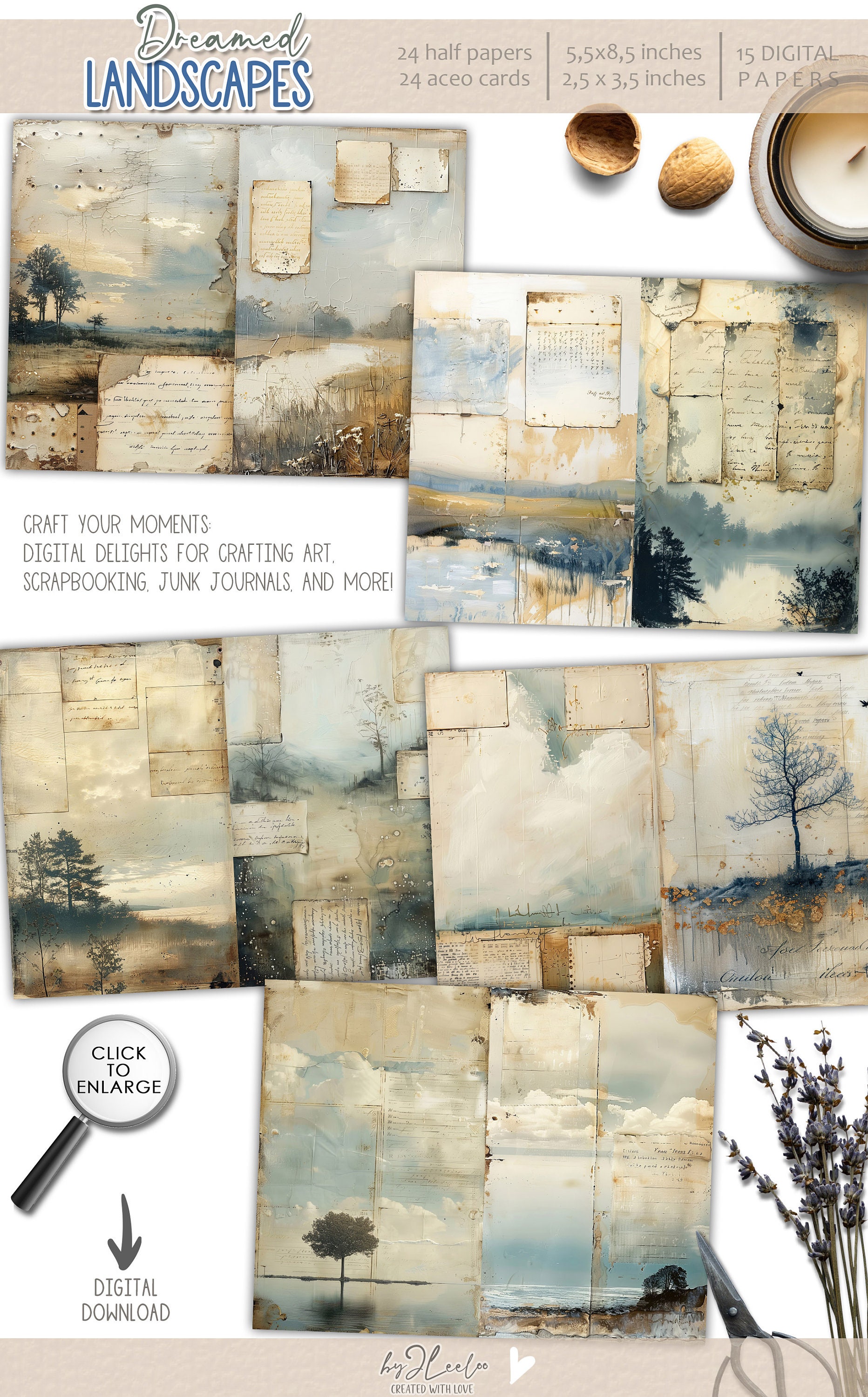 DREAMED LANDSCAPES half pages printable Aceo | junk journal Mixed Media supplies | Scrapbooking paper card making collage diary | pp746