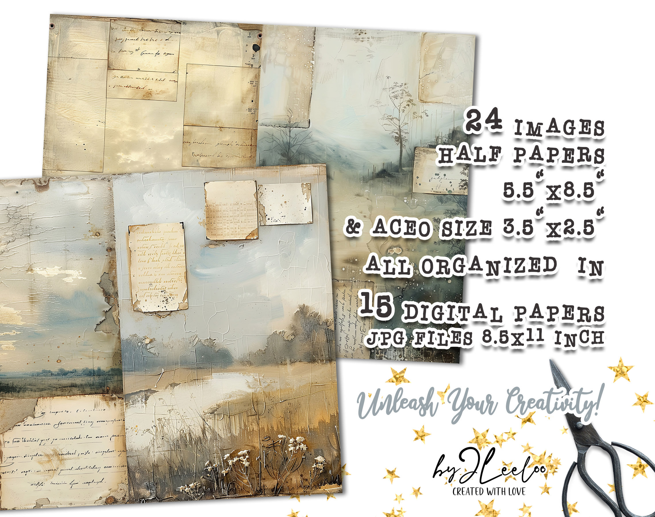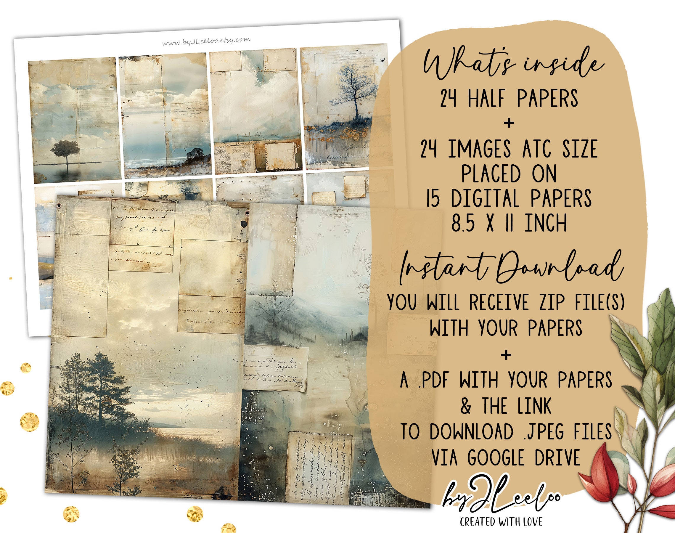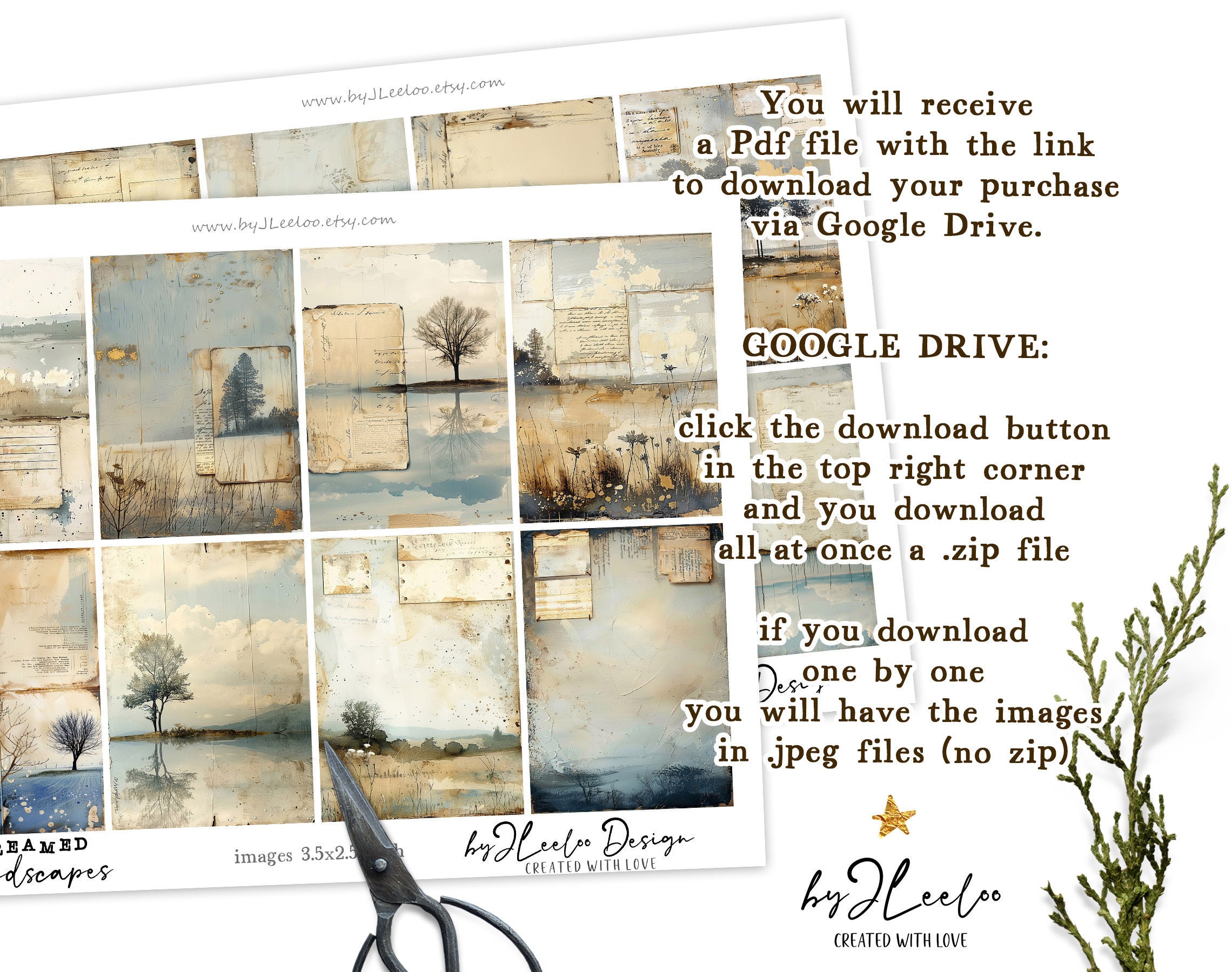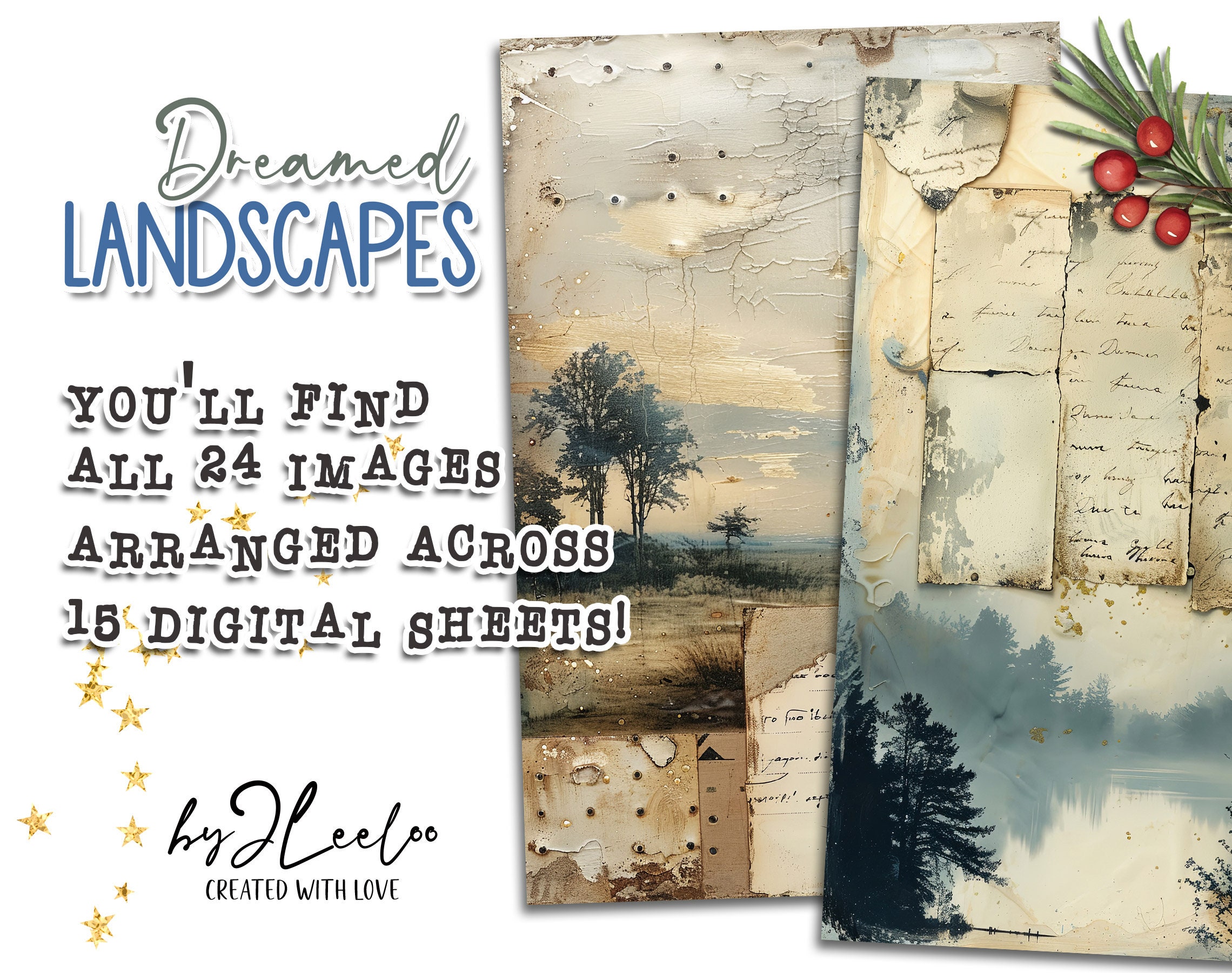DREAMED LANDSCAPES half pages printable Aceo | junk journal Mixed Media supplies | Scrapbooking paper card making collage diary | pp746