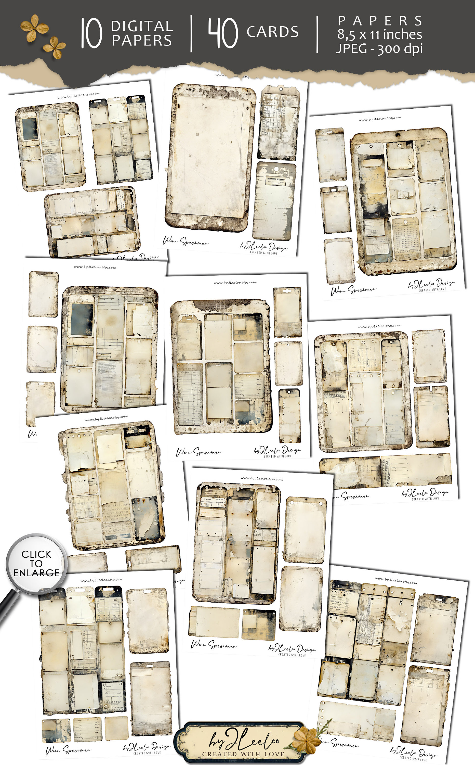 From jagged edges to worn paper textures, every piece carries the charm of something once handled, marked, and saved — now ready to become part of your own creative story.