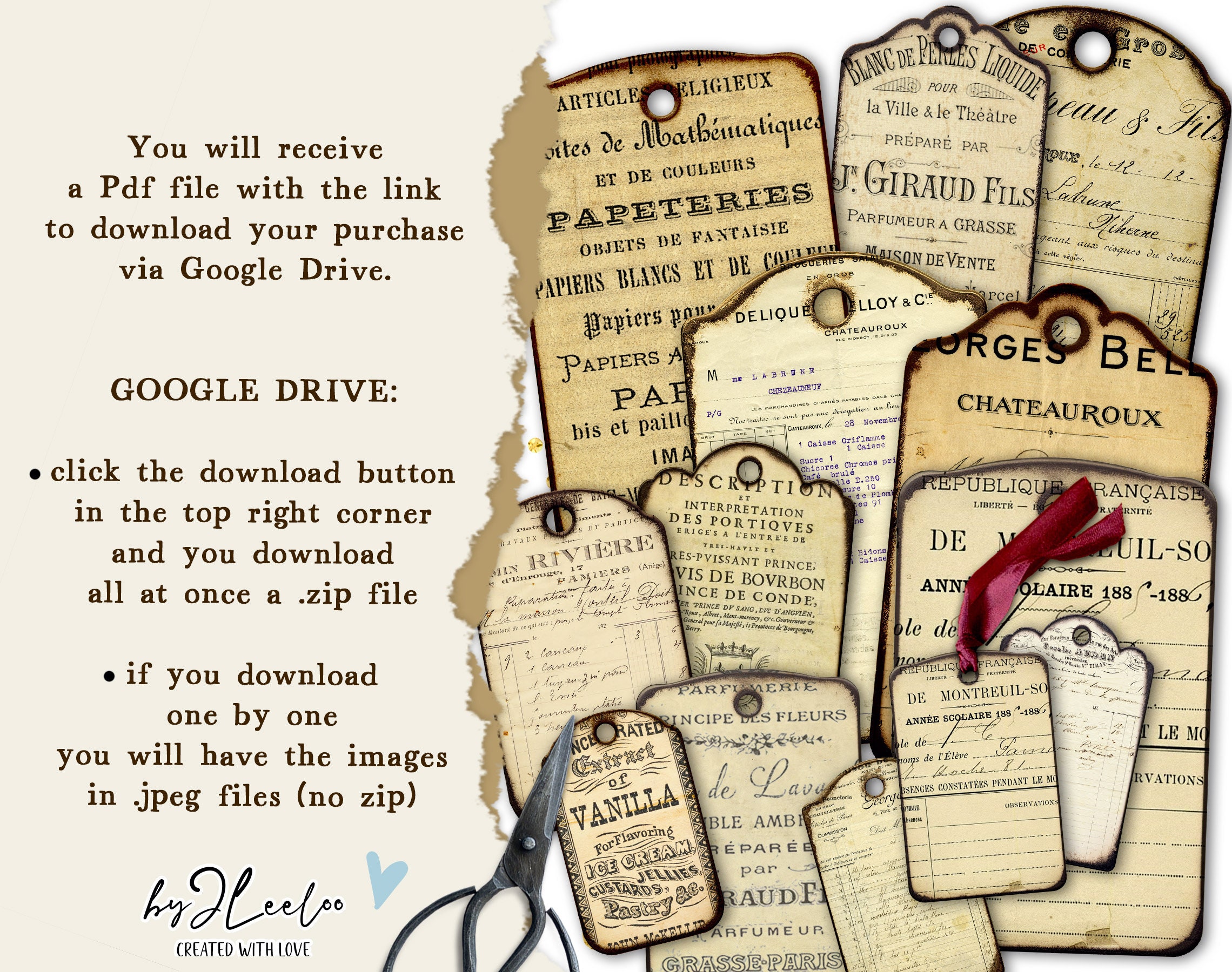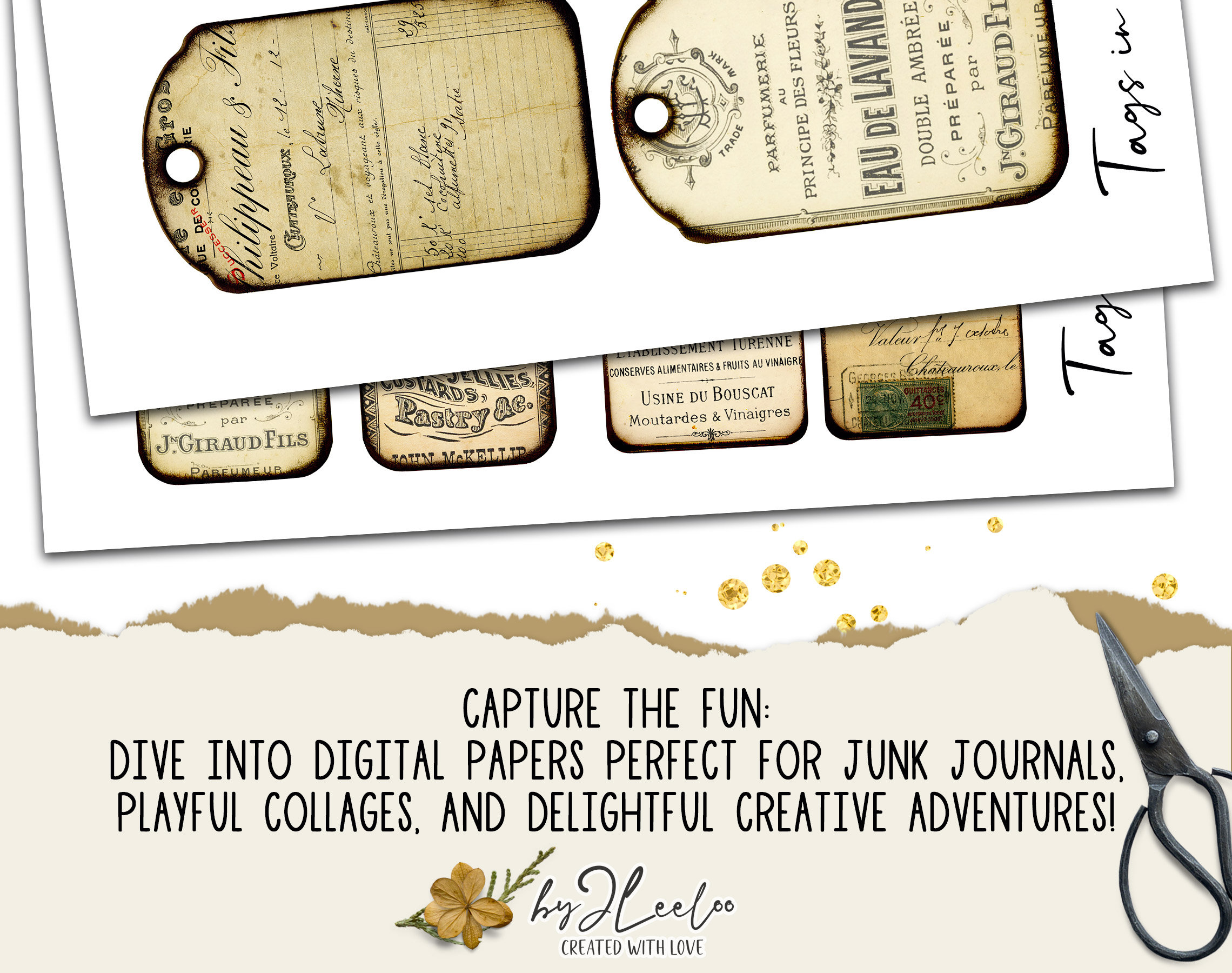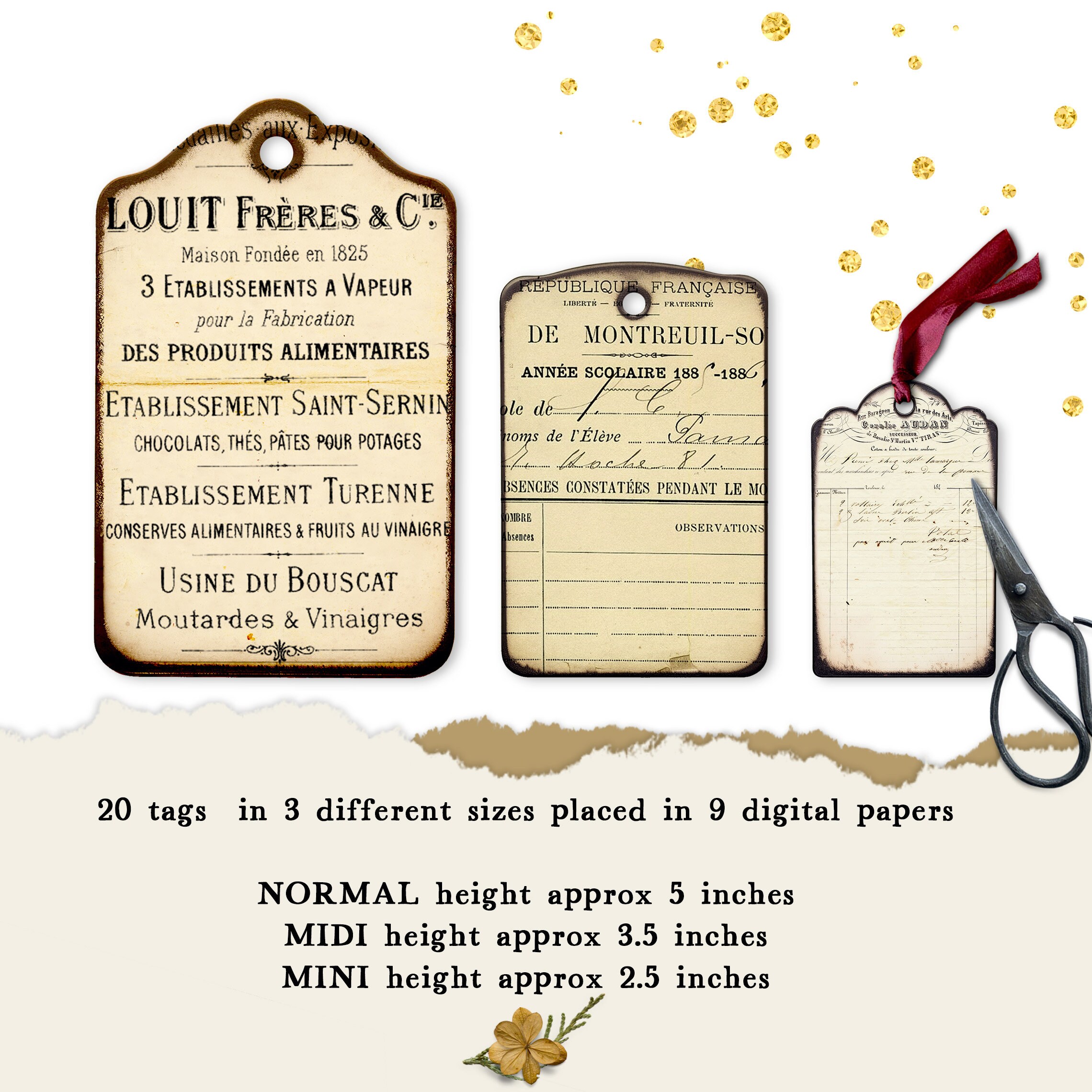 TAGS IN FRENCH vintage romantic supplies | Ephemera old tag junk journal | Parisienne documents images collage | Digital download | tl274