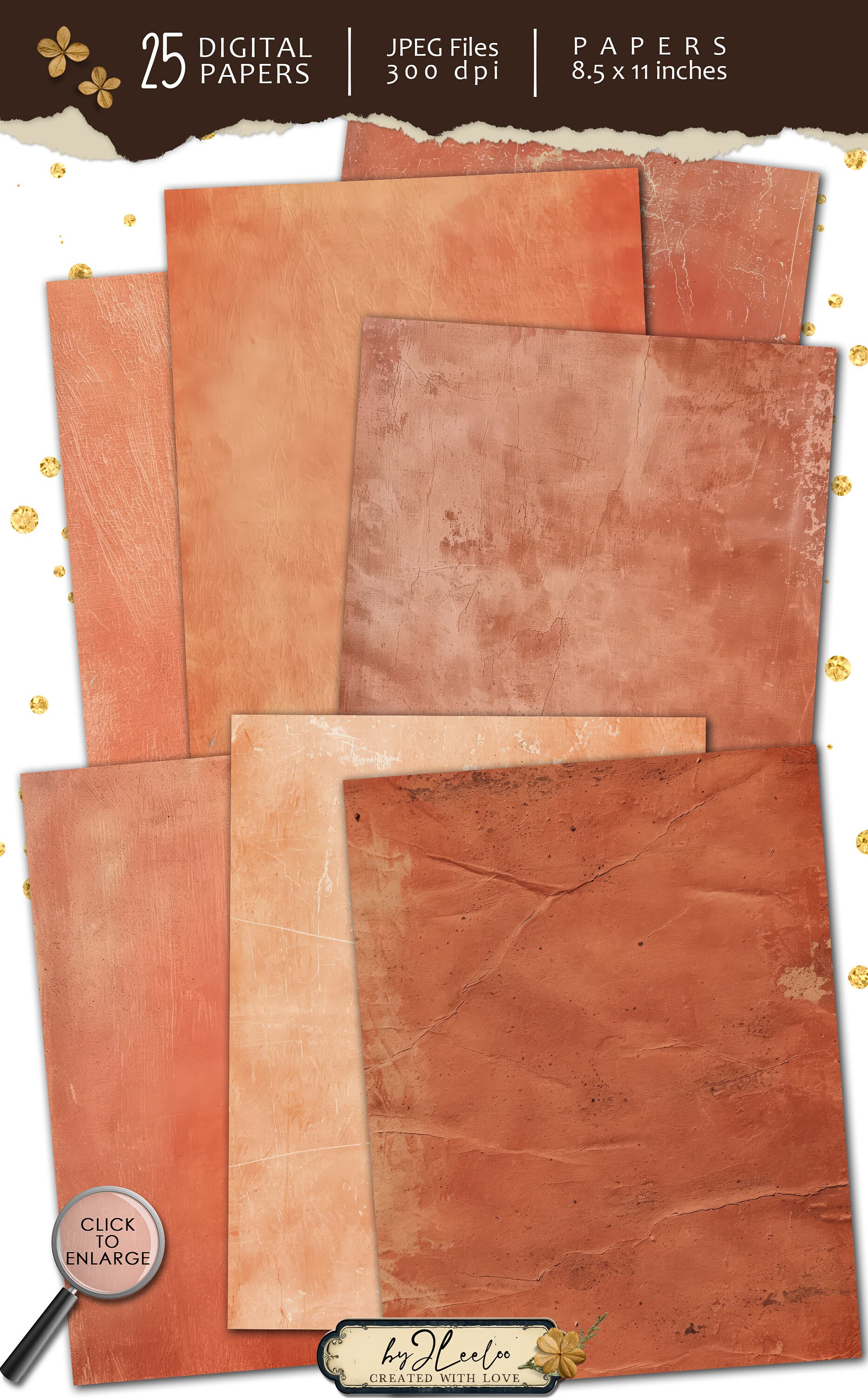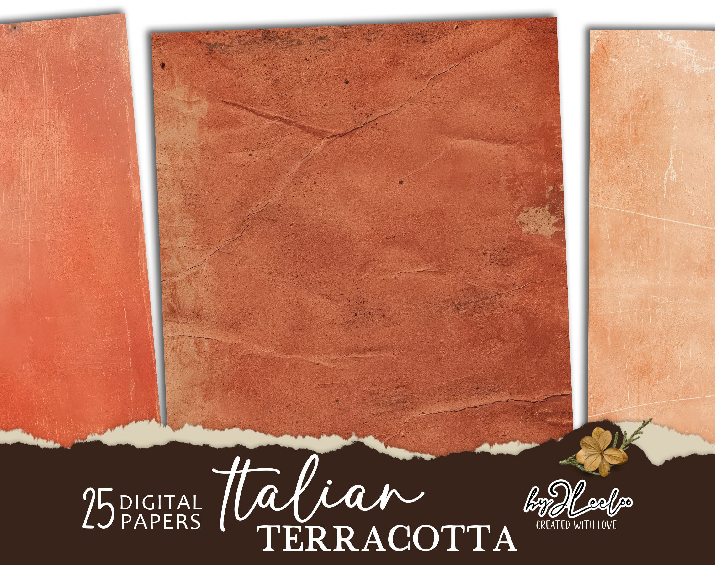 ๐คฉ Get ready to grab 25 ultra-cool digital papers from our 'Italian Terracotta' collection! Dive into a world of textured grunge backgrounds in rich terracotta shades. They're like the Swiss Army Knife of creativity - perfect for sprucing up your T-shirts, Mugs, Bags, Cushions, Wall Art, Websites, Social Media, Invitations, Journalling, Business and Greeting Cards, Sublimation, Heat Transfer, Phone Cases, or anything else your imagination can dream up! โจ