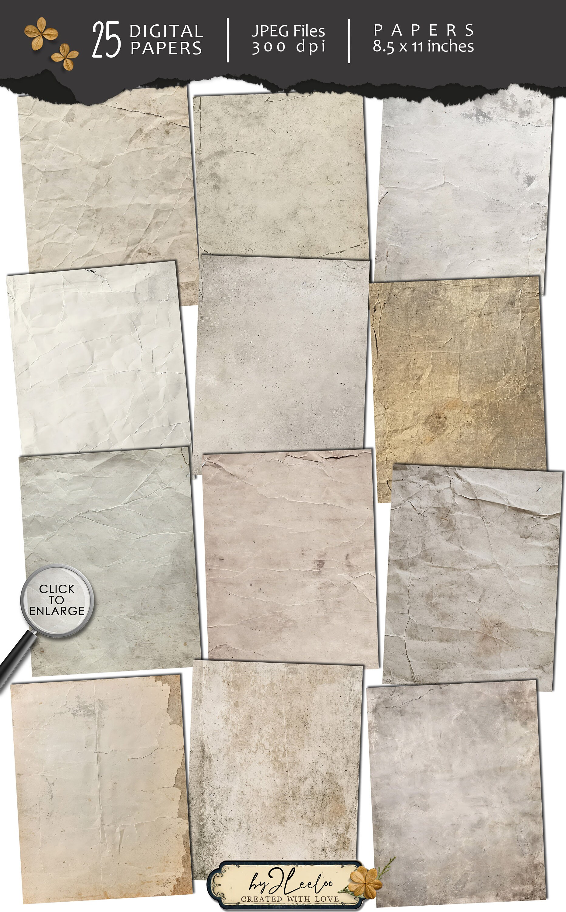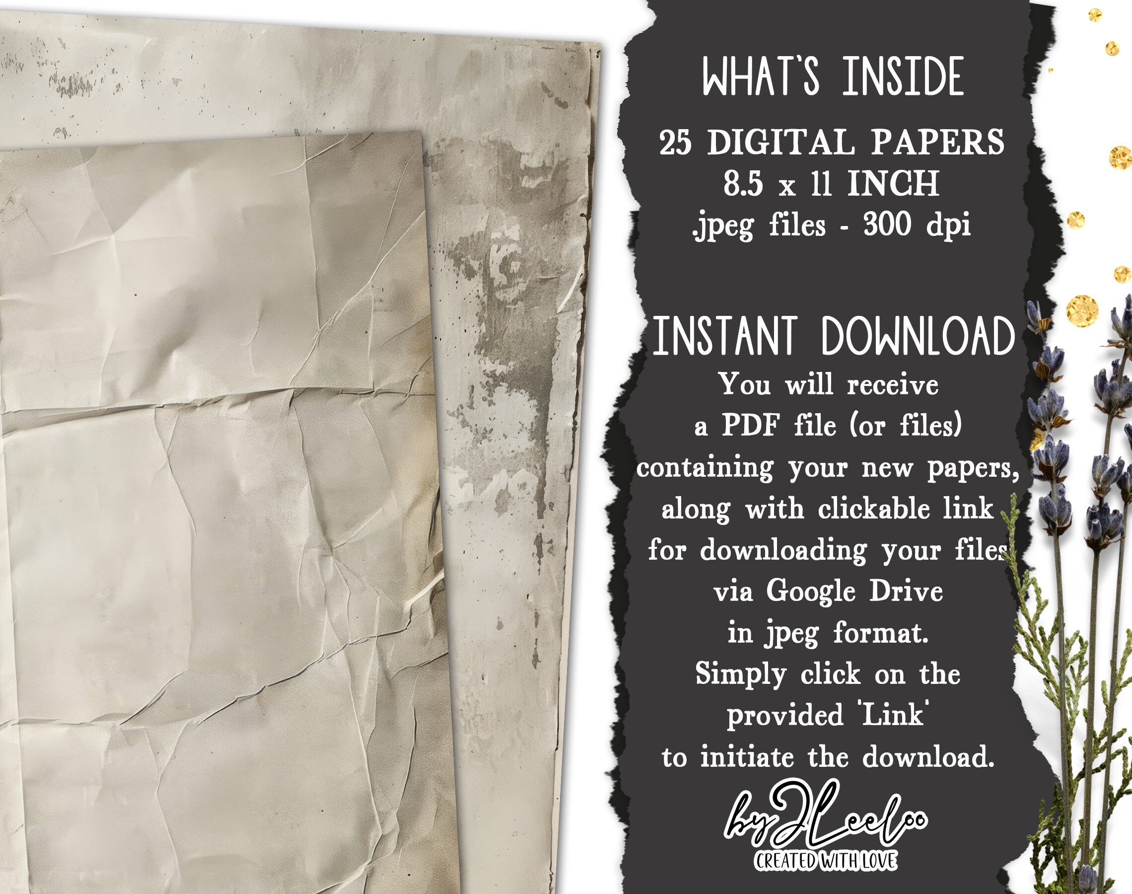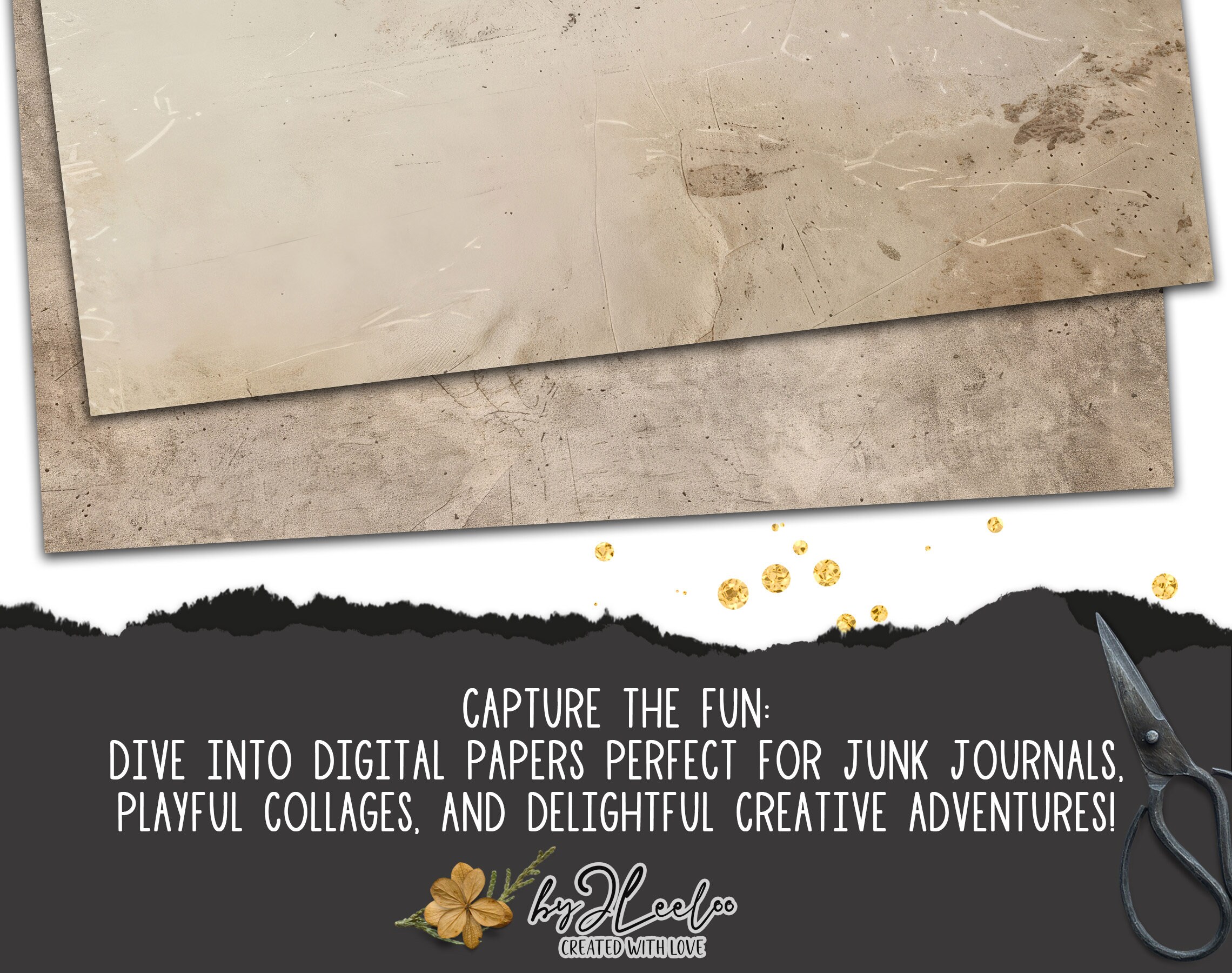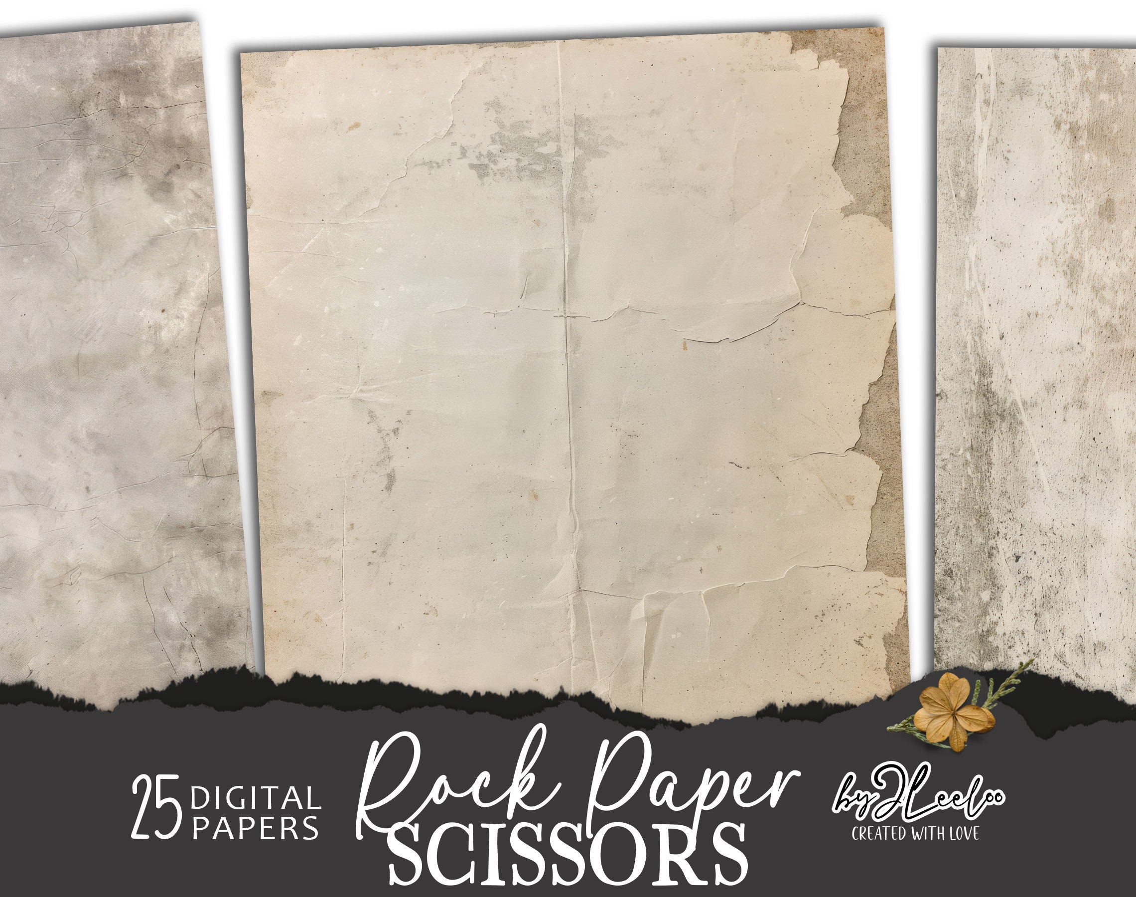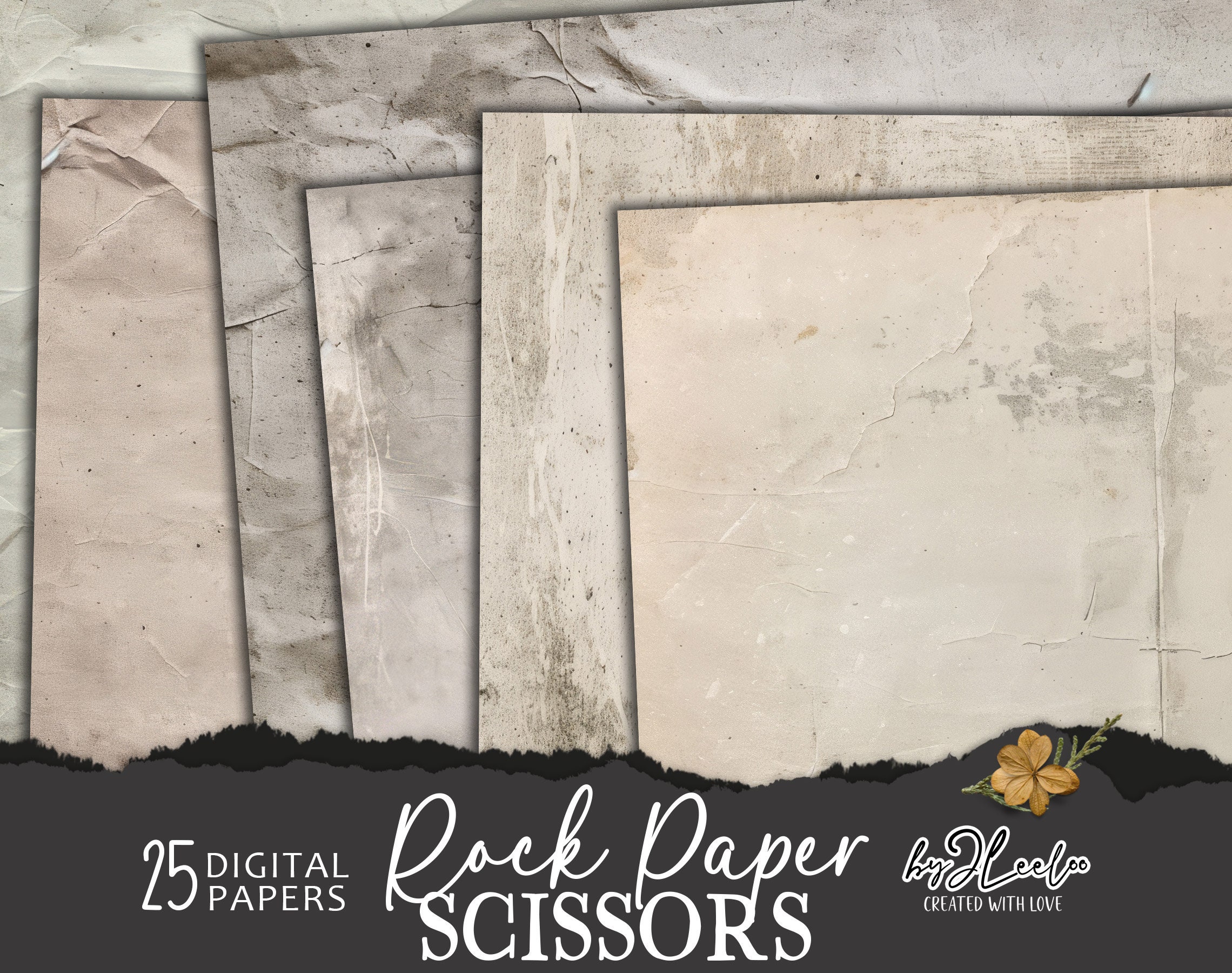 ๐๐ชจ Immerse yourself in the rustic charm of our "Rock Paper Scissors" collection, offering 25 digital sheets in neutral and natural tones! Embrace the neutral and natural shades, evoking slightly worn paper or concrete textures. These sheets, slightly crumpled and full of character, are perfect for drawings, doodles, sketches, and storytelling, as if they were pages from an old notebook. Ideal for adding a touch of vintage elegance to your projects, whether it's T-shirts, mugs, bags, invitations, wall art, websites, social media, or any other creative project you have in mind!