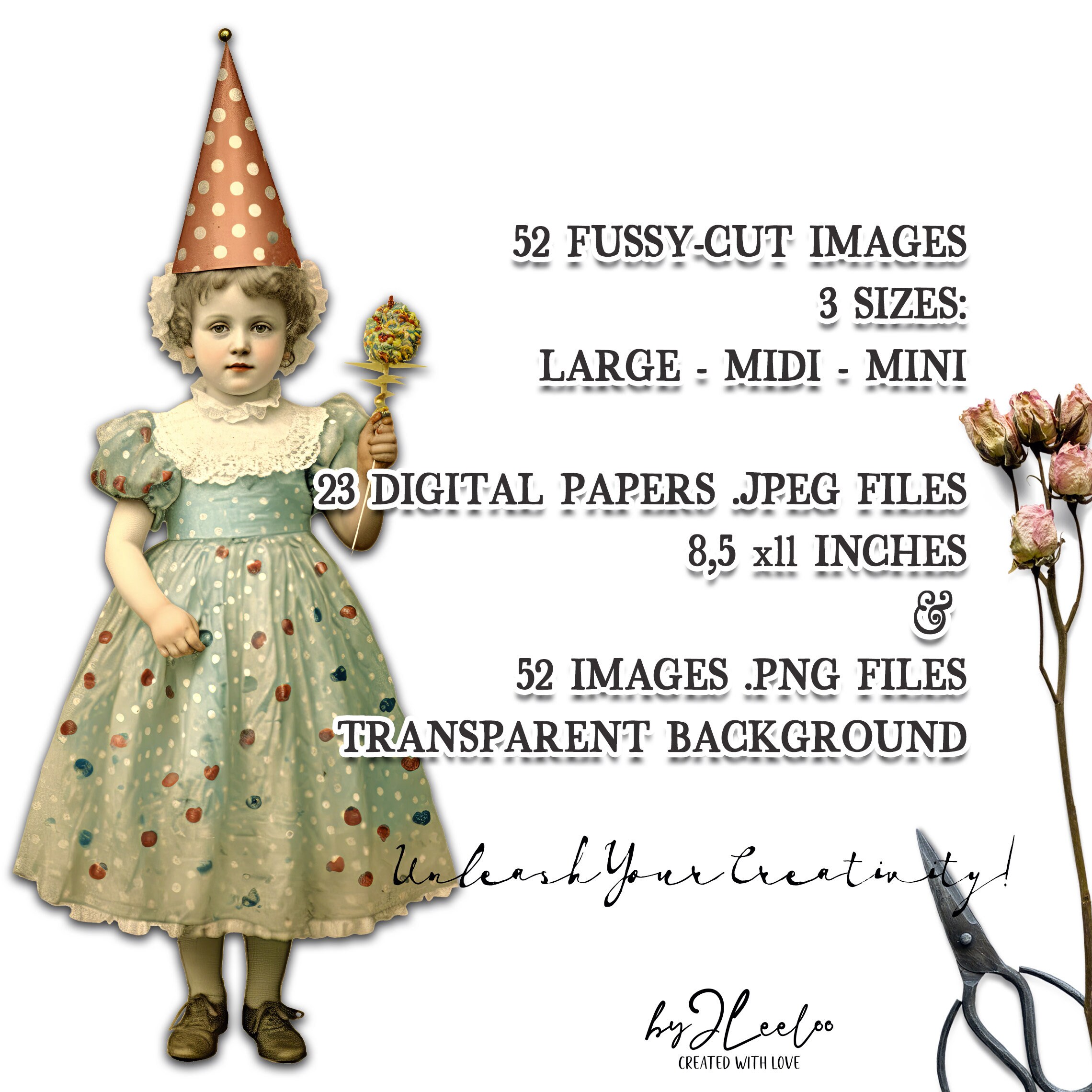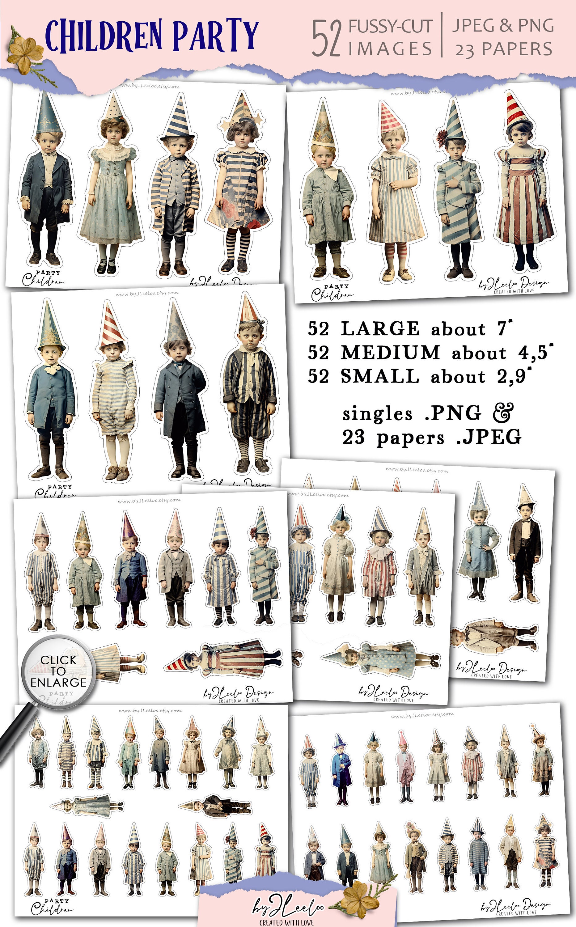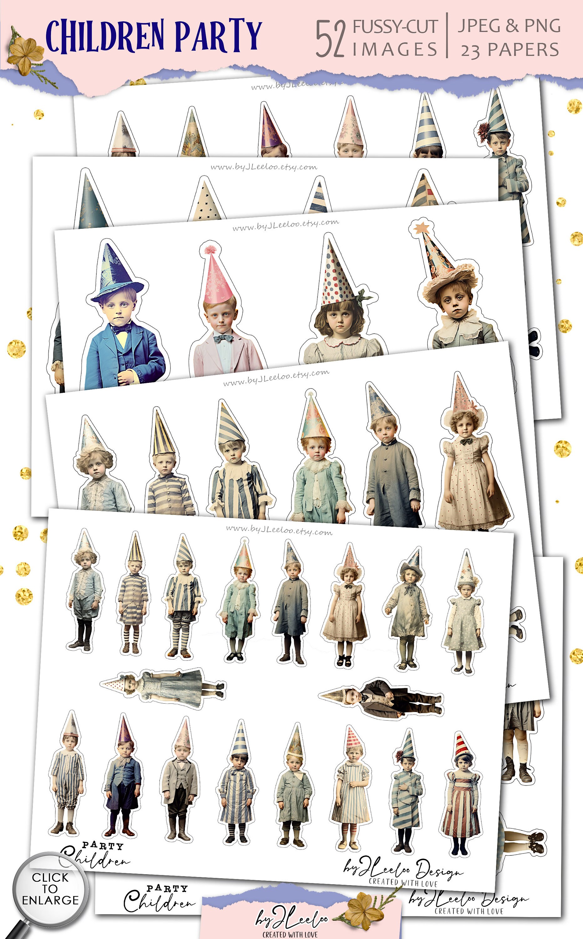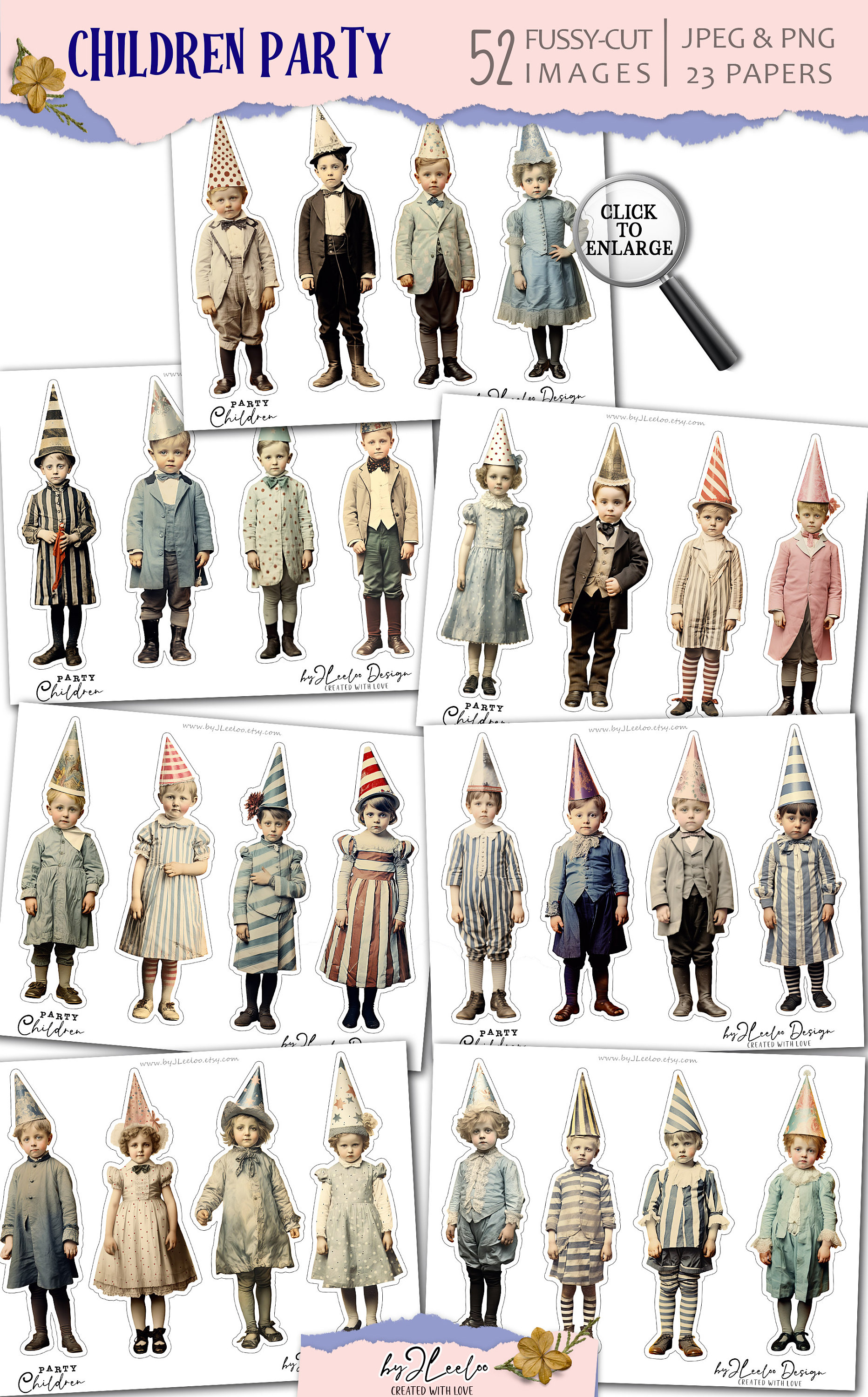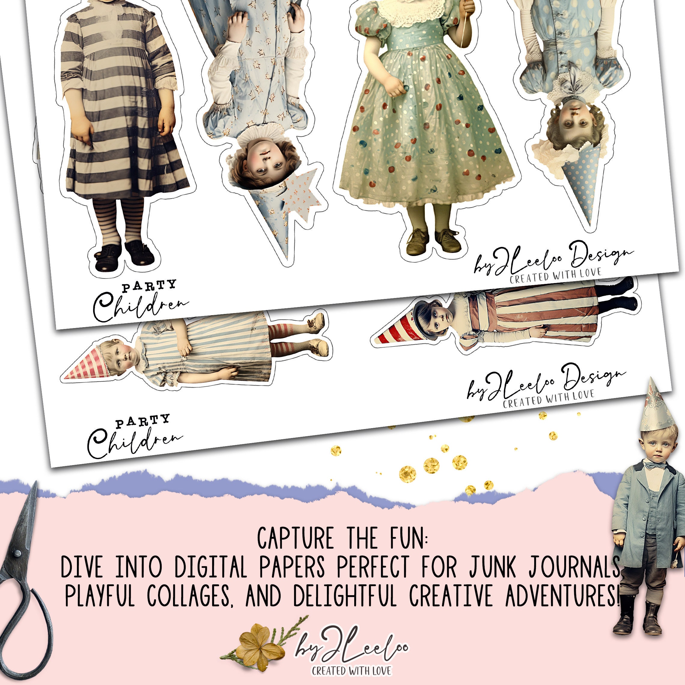 CHILDREN PARTY 52 ephemera children fussy-cut printable | Whimsical supplies mixed media junk journal | Bundle cute for crafting | cl162