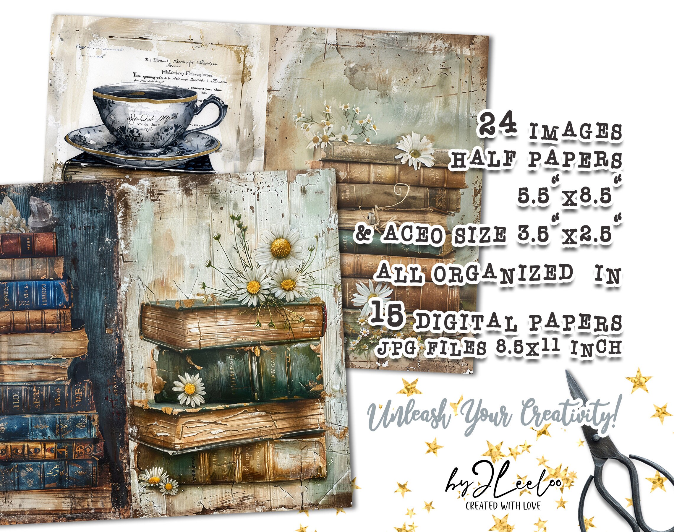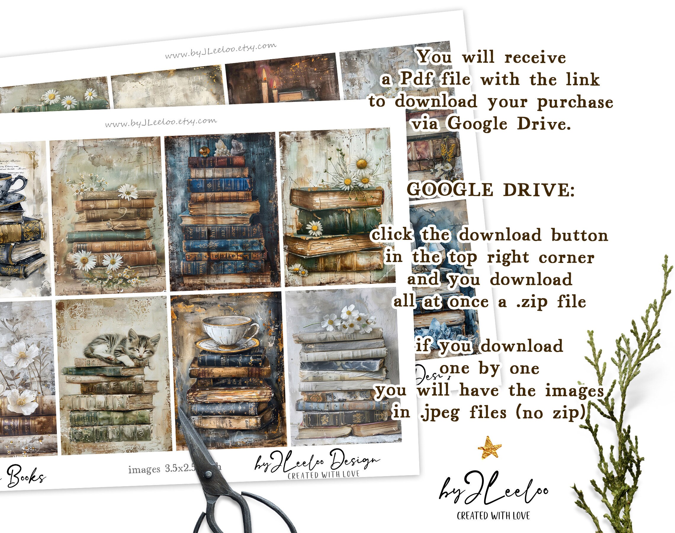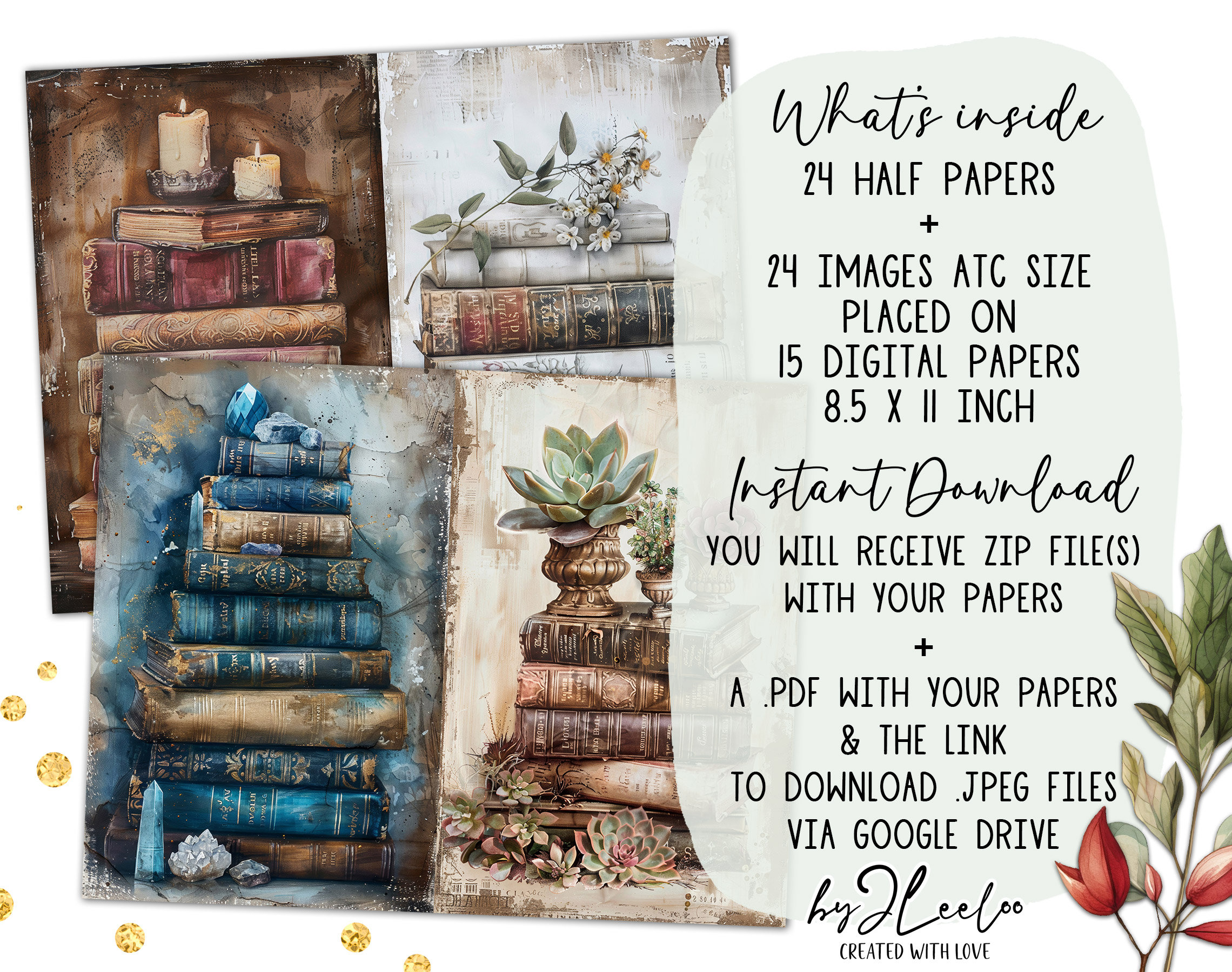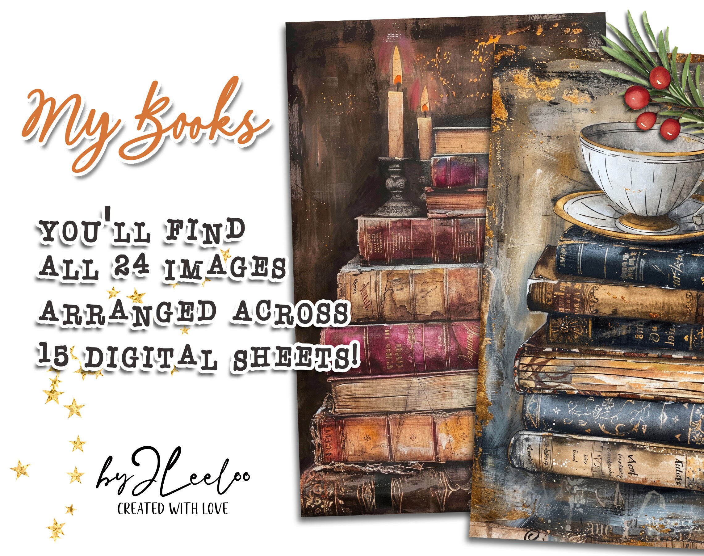 MY BOOKS half pages printable | Vintage junk journal Mixed Media supplies | Scrapbooking Aceo paper card making collage diary CU | pp769