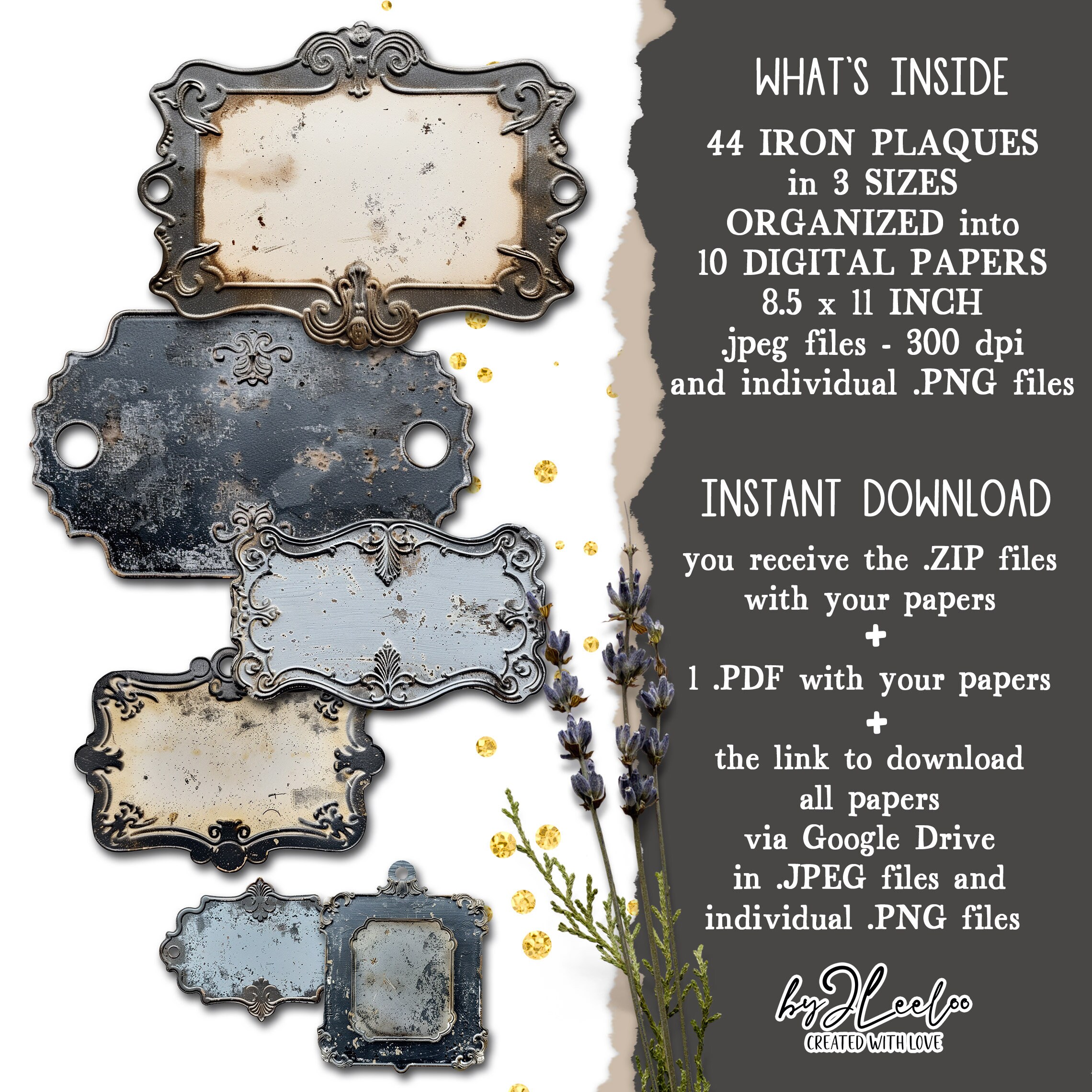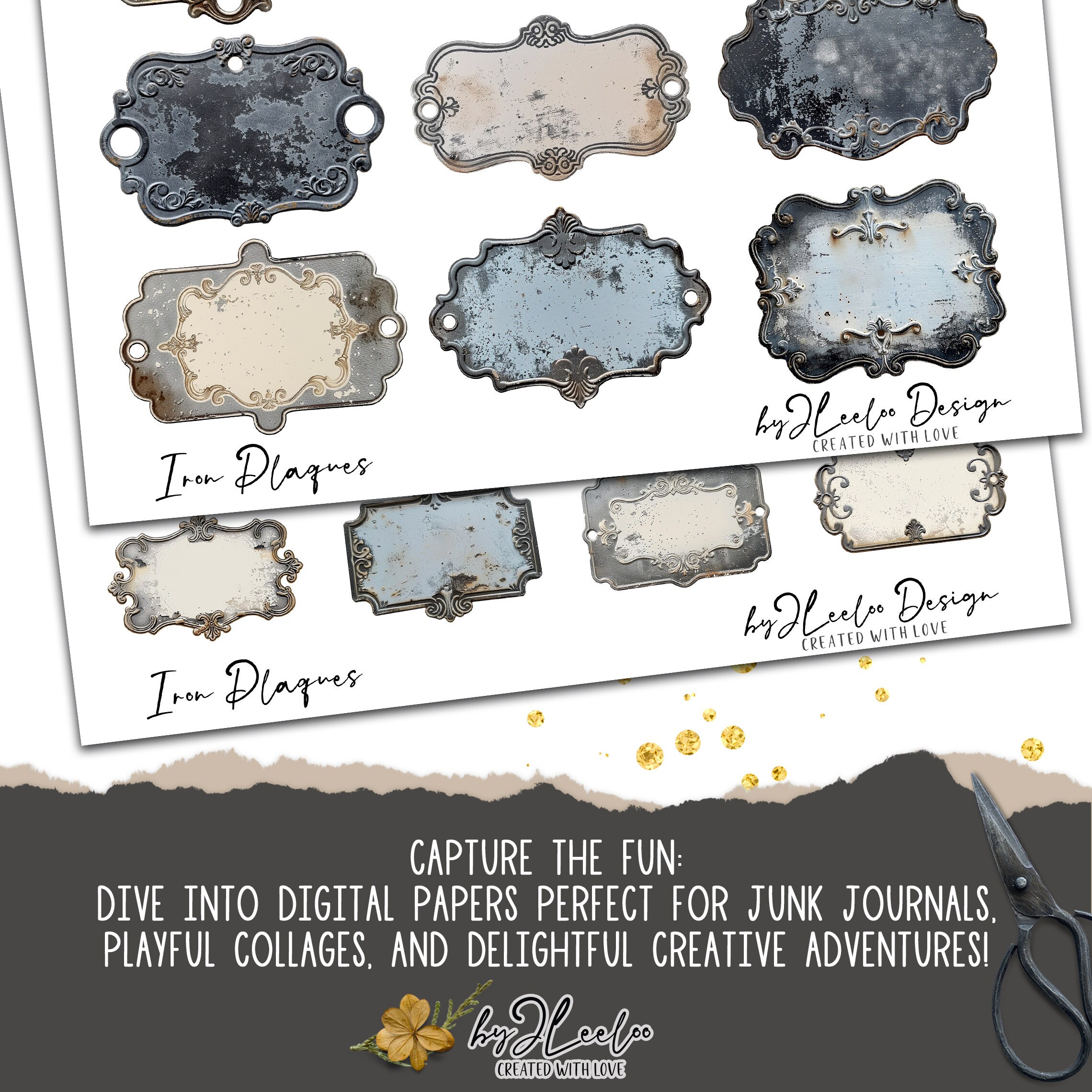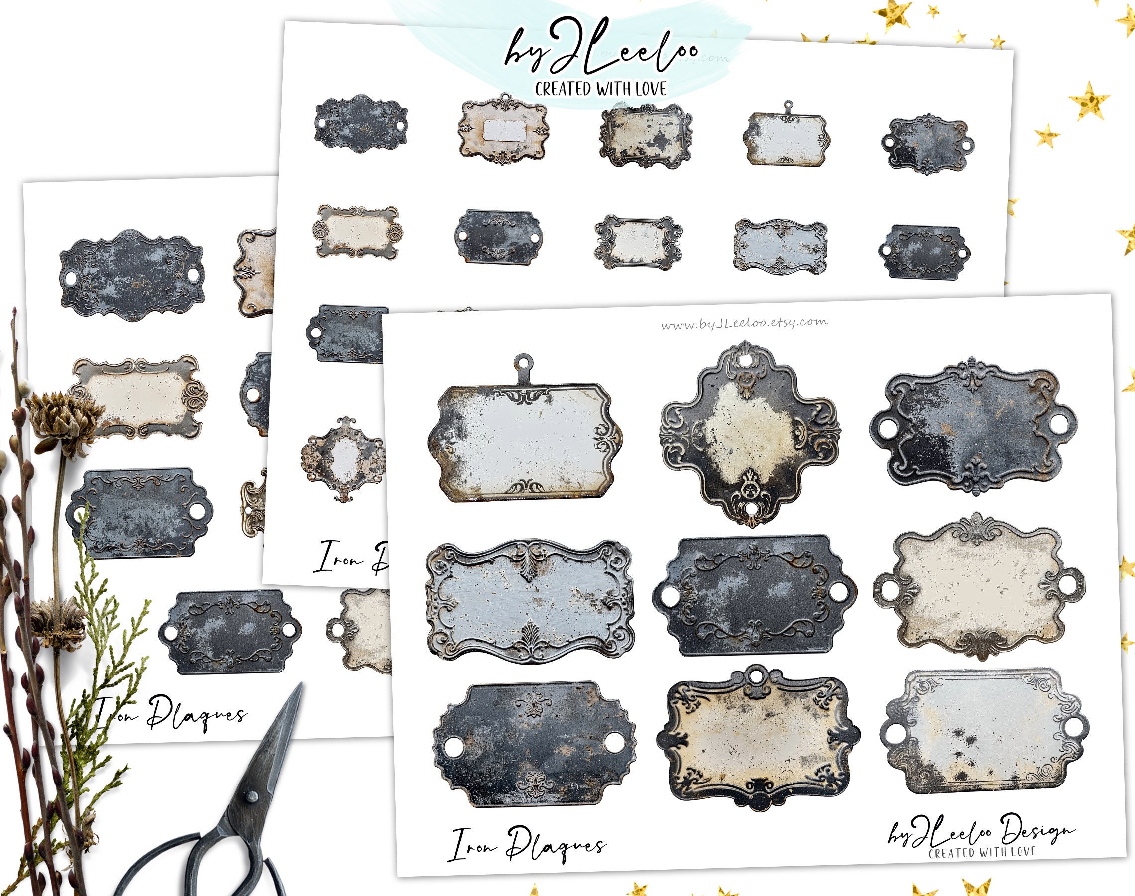 IRON PLAQUES antique vintage supplies for journal diary and paper art | Grunge ephemera Steampunk images digital collage | Writable | tl279