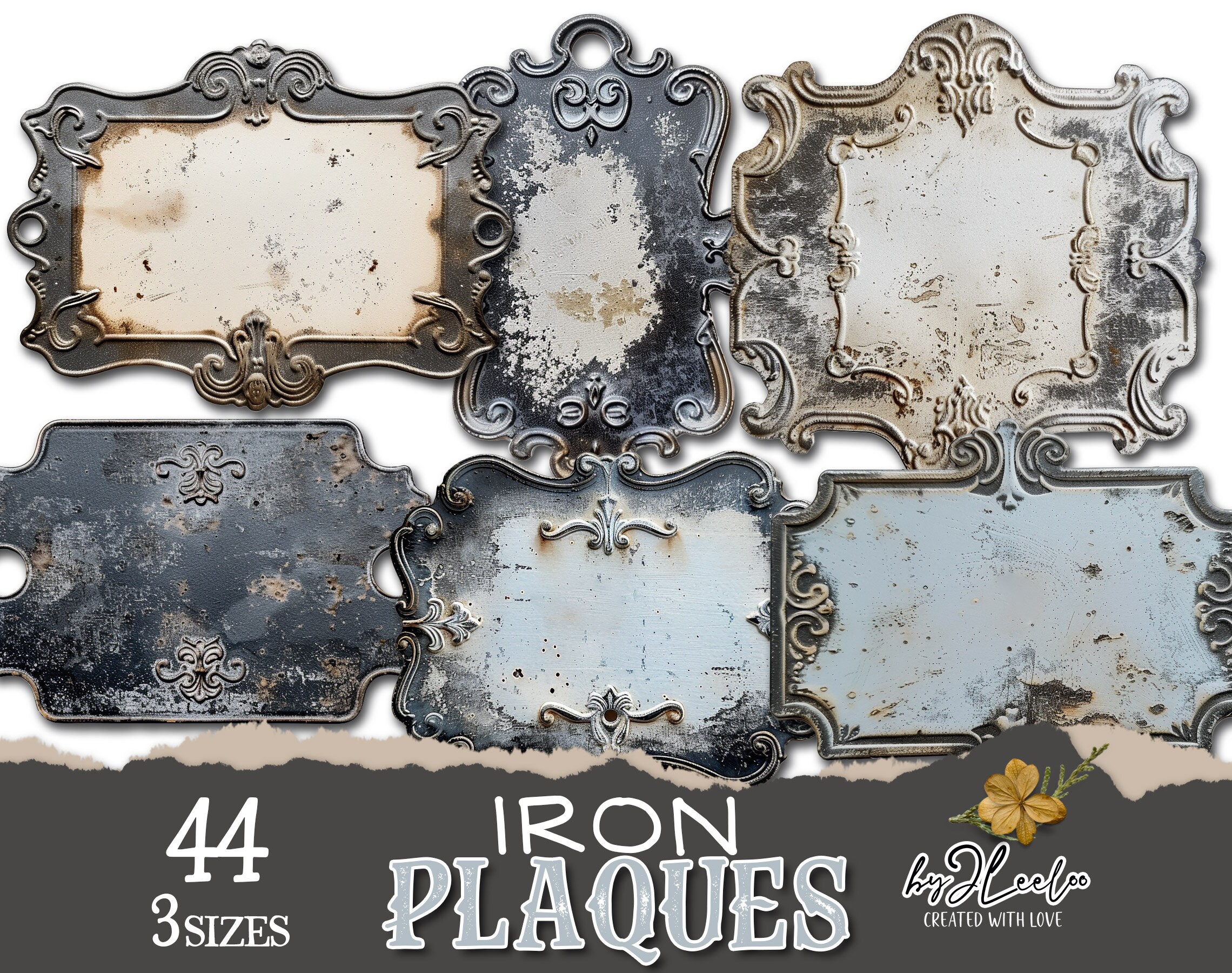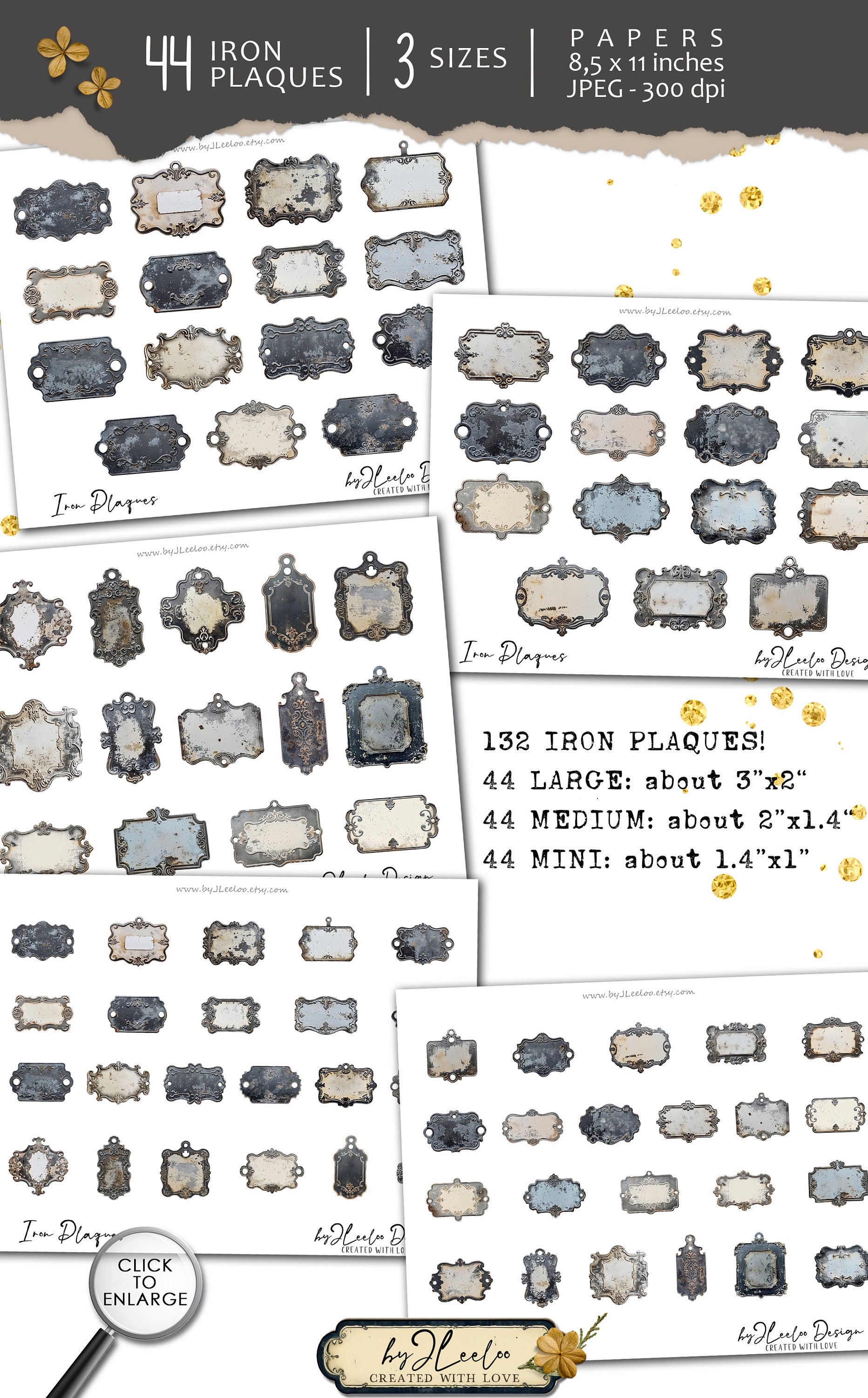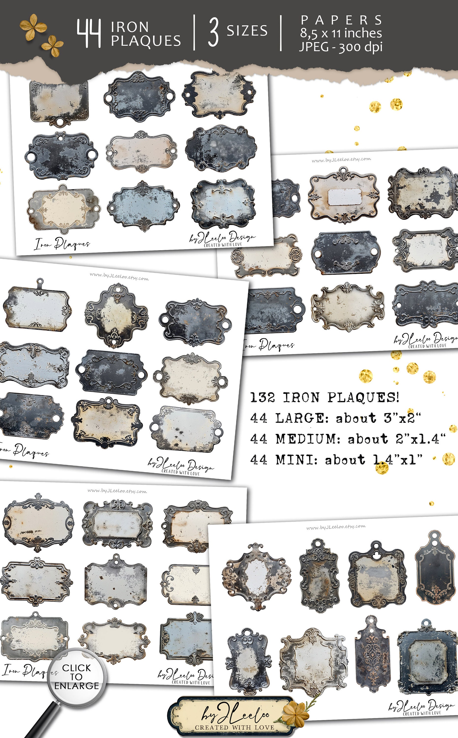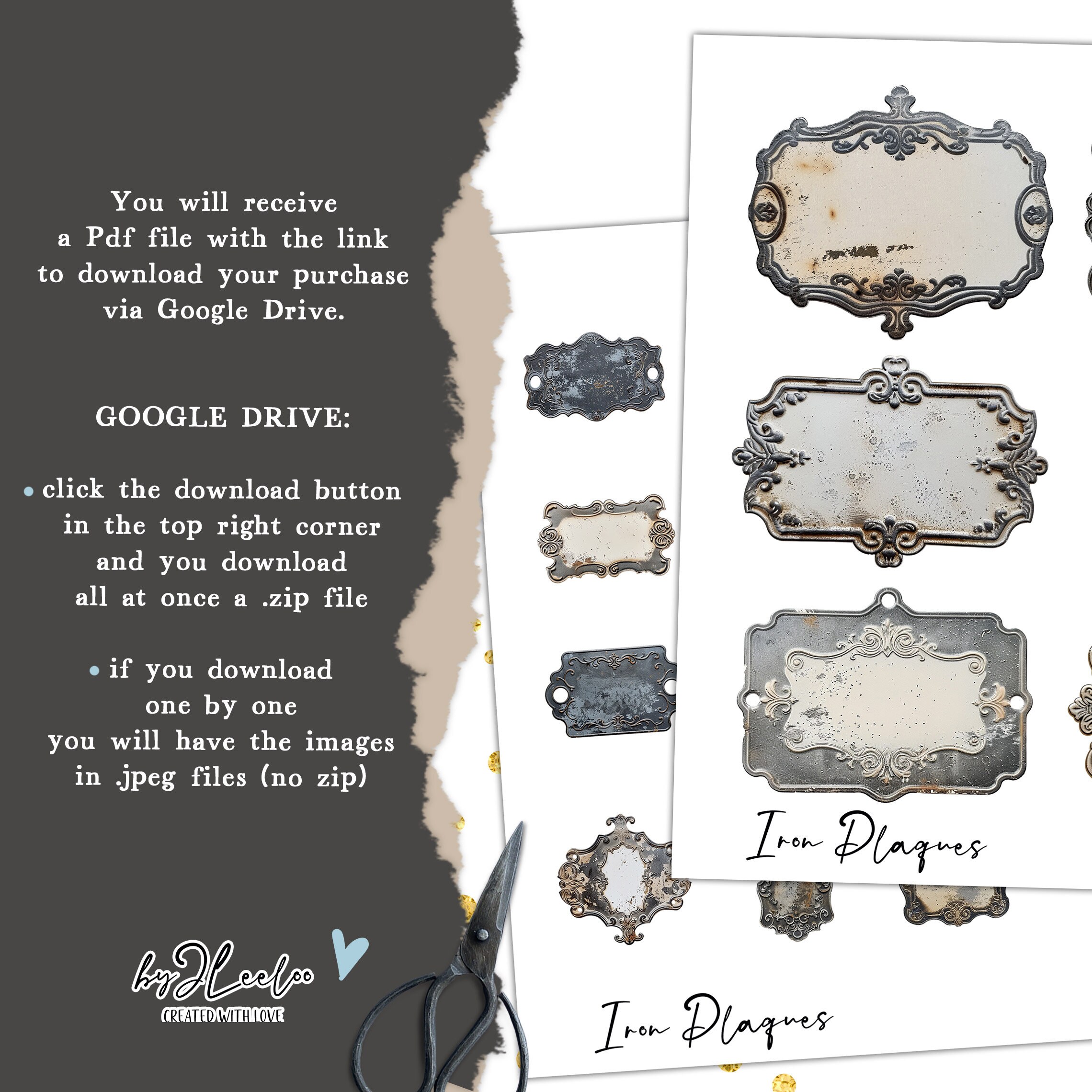 IRON PLAQUES antique vintage supplies for journal diary and paper art | Grunge ephemera Steampunk images digital collage | Writable | tl279