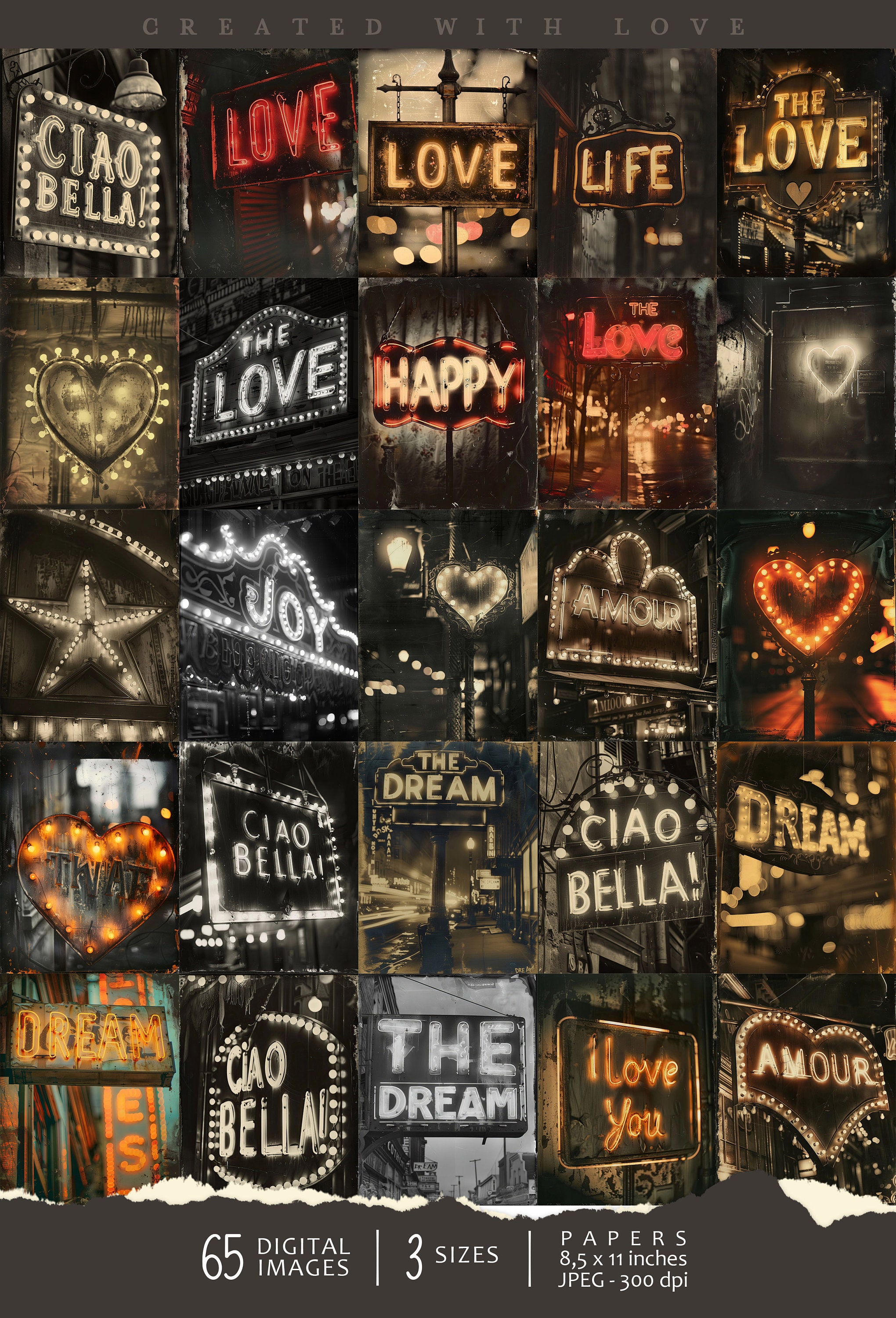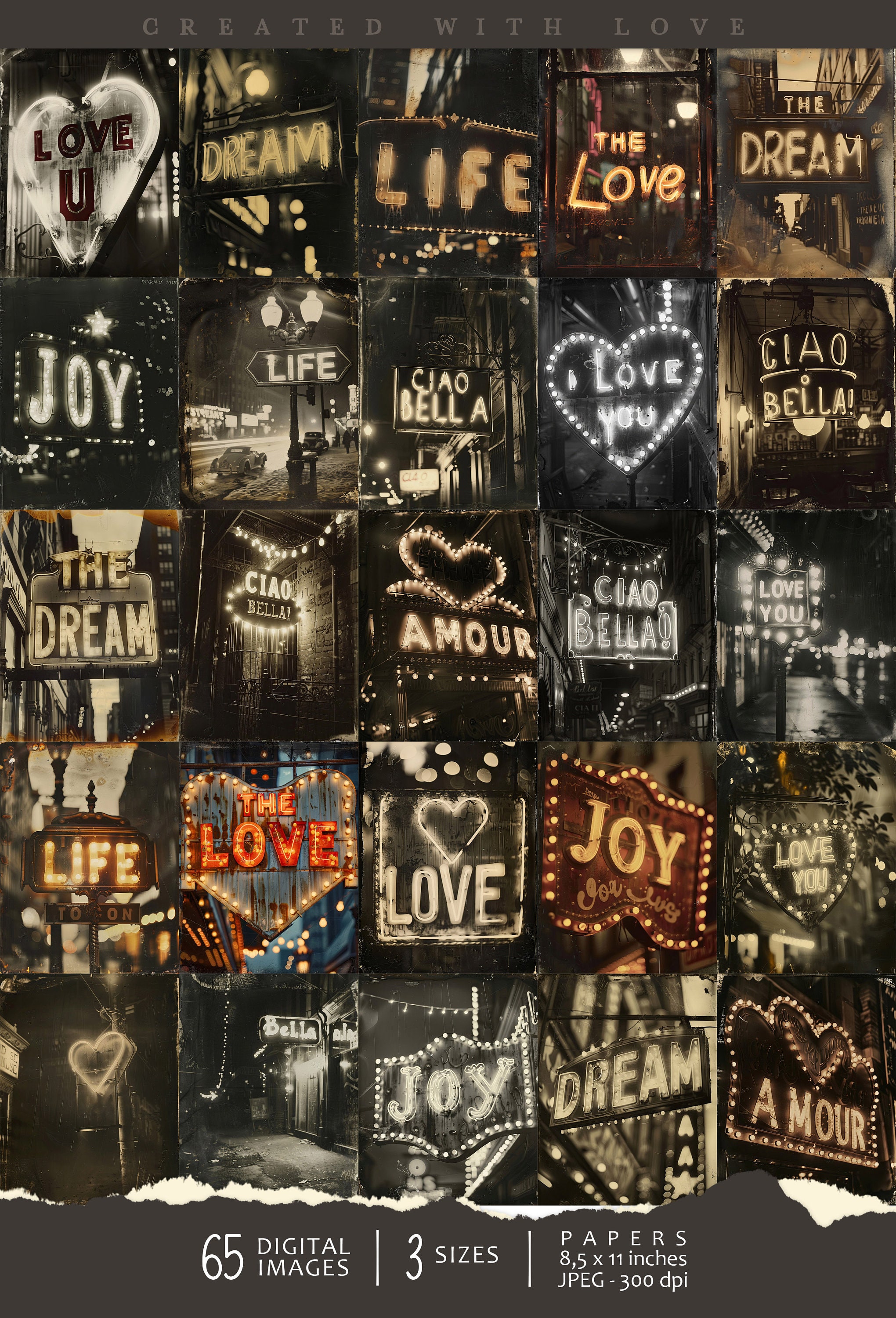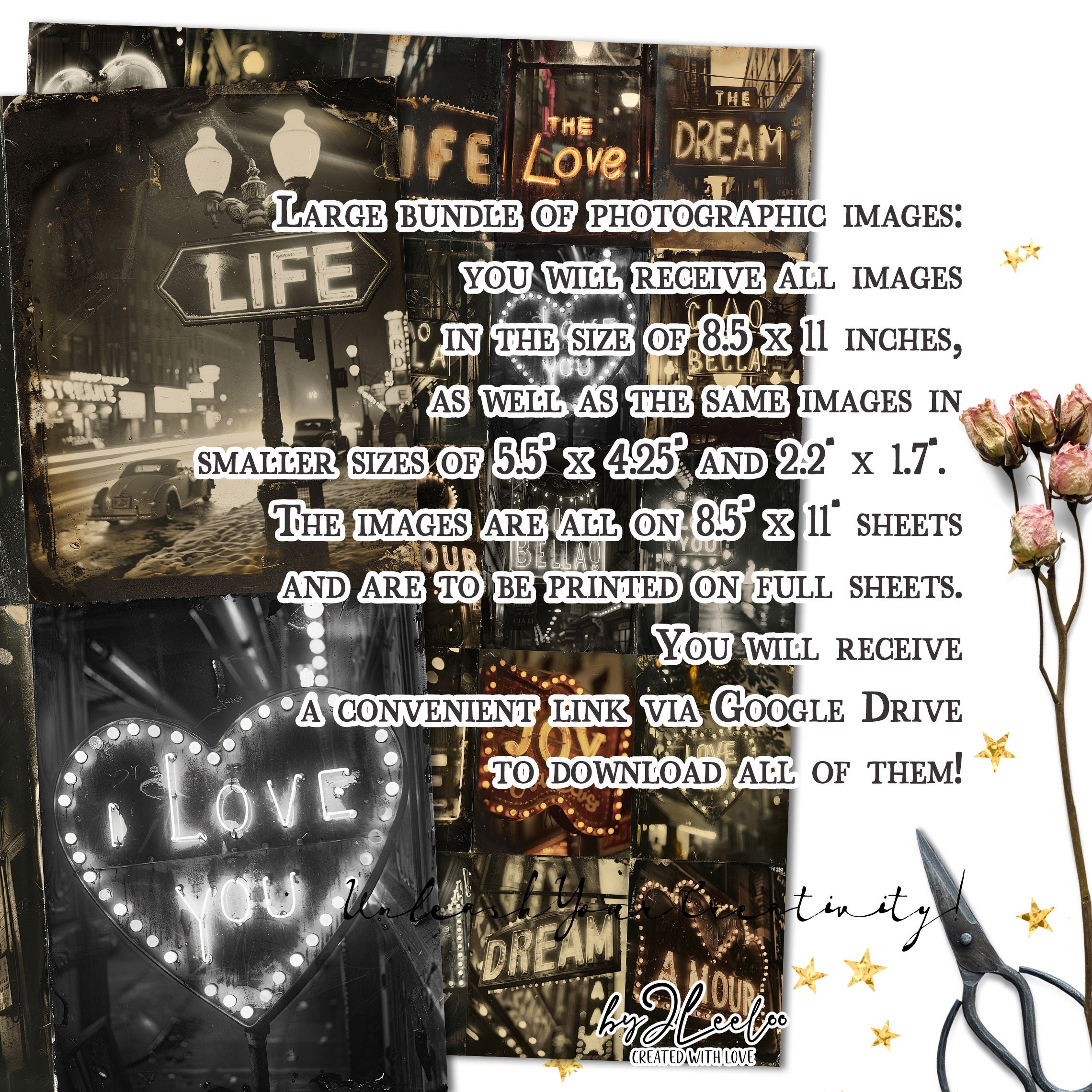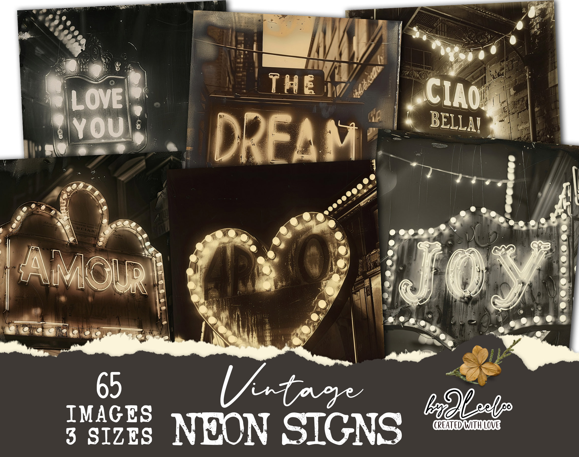VINTAGE NEON SIGNS Collection 65 large photos printable | Ephemera supplies Mixed media junk journal | Bundle cute for crafting | cp009