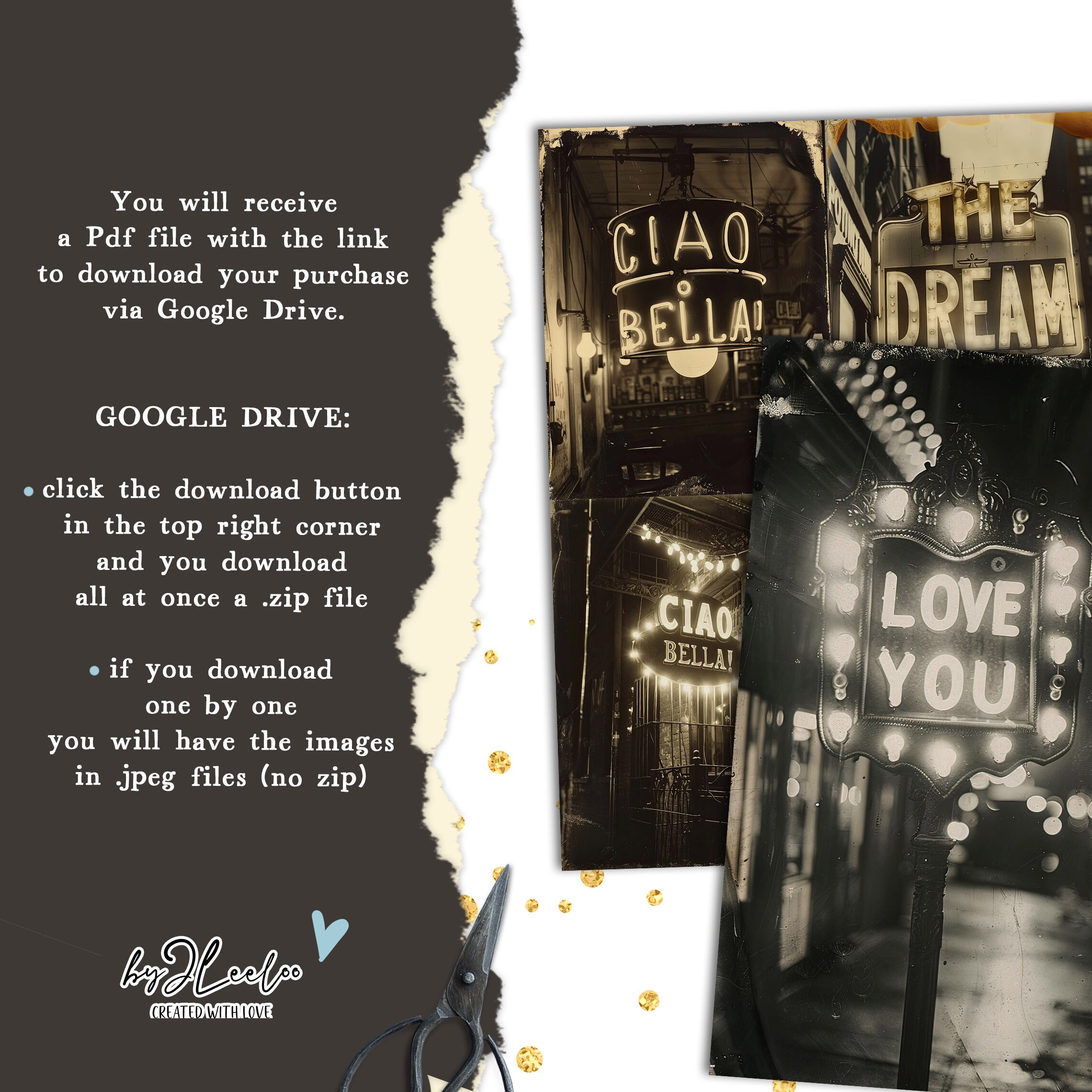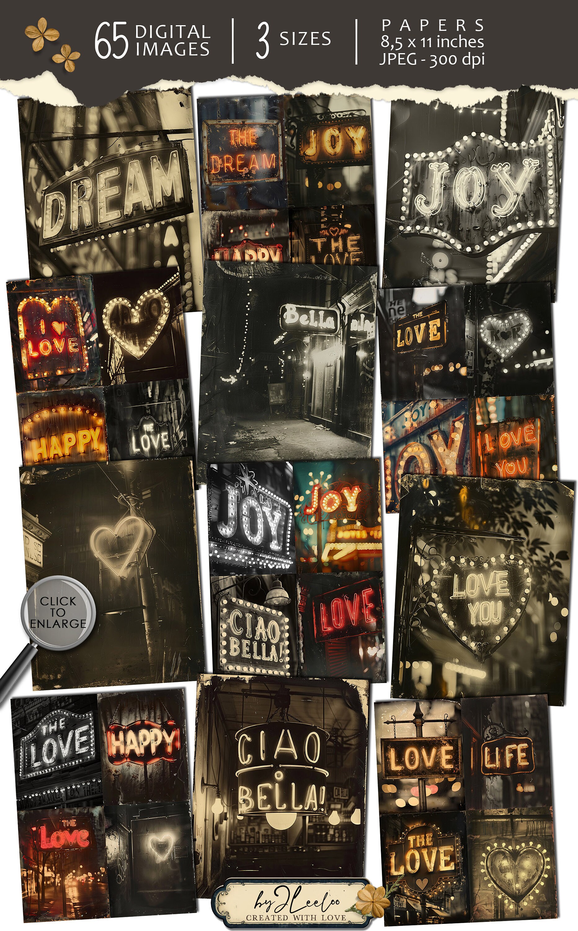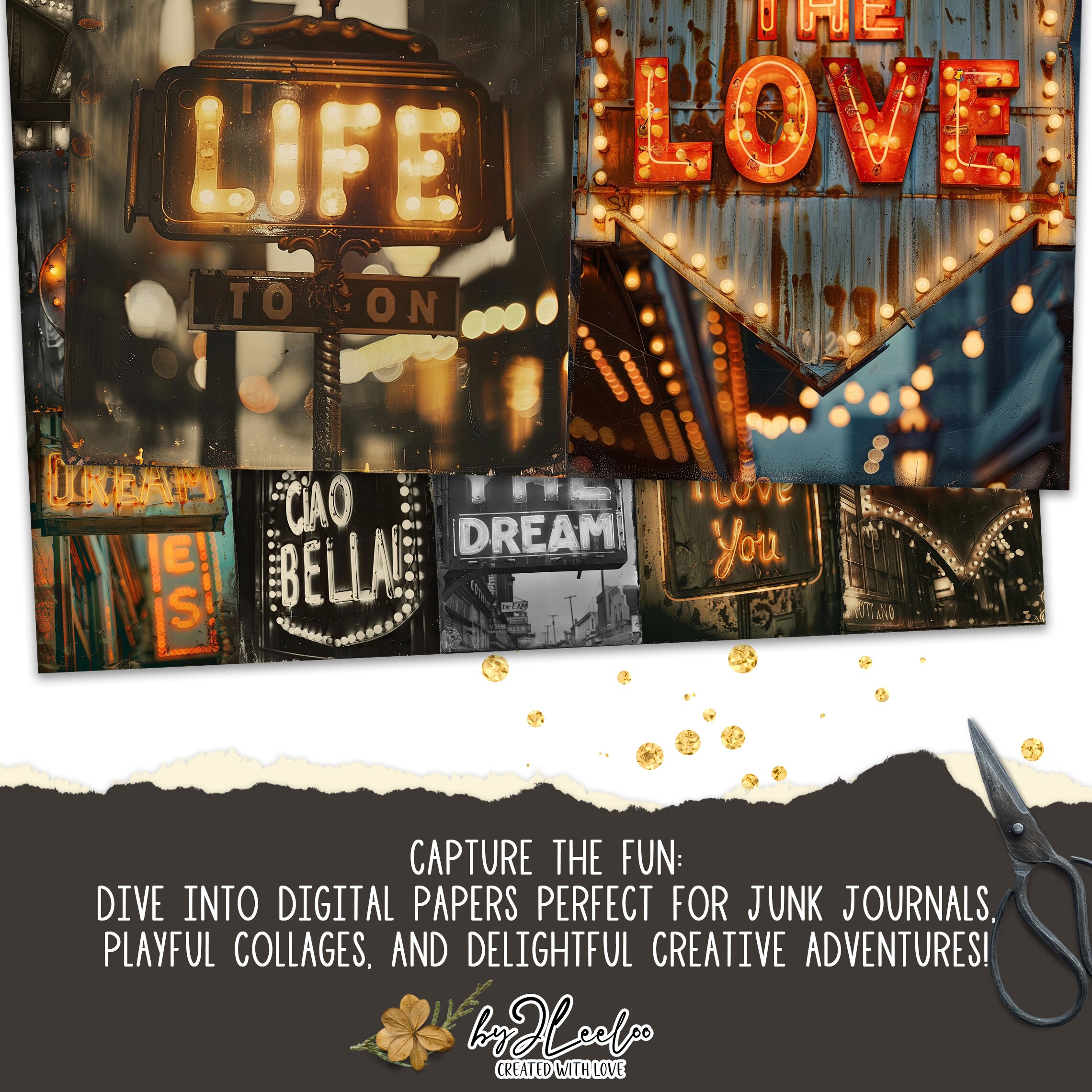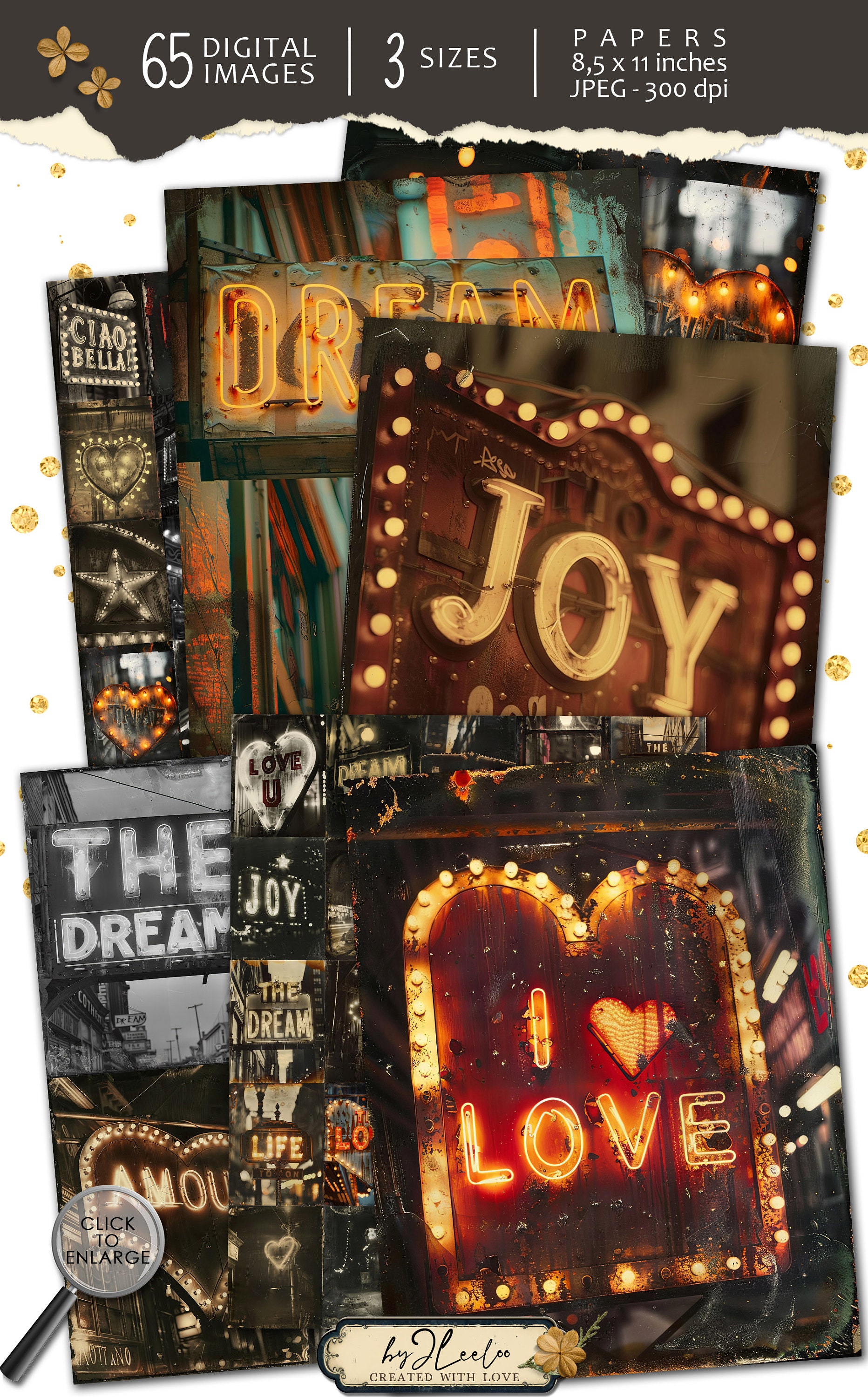 VINTAGE NEON SIGNS Collection 65 large photos printable | Ephemera supplies Mixed media junk journal | Bundle cute for crafting | cp009