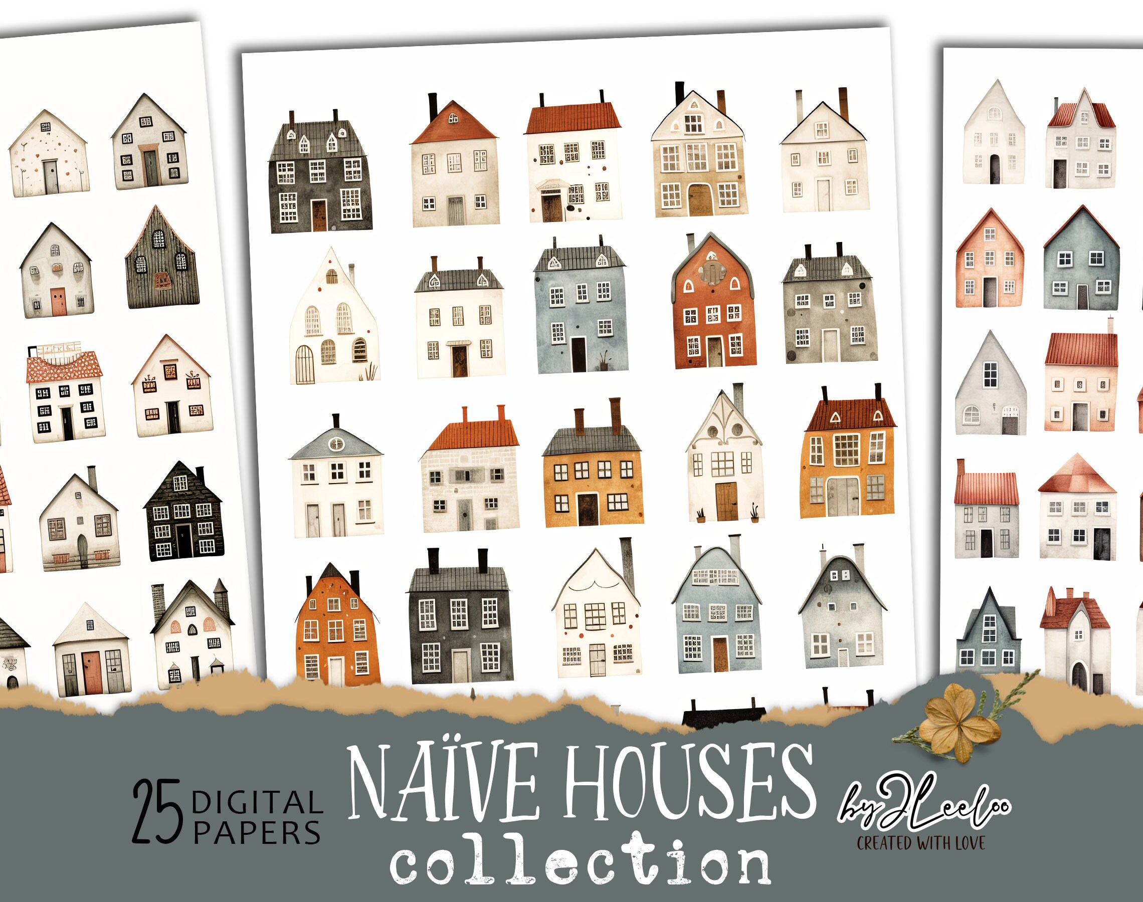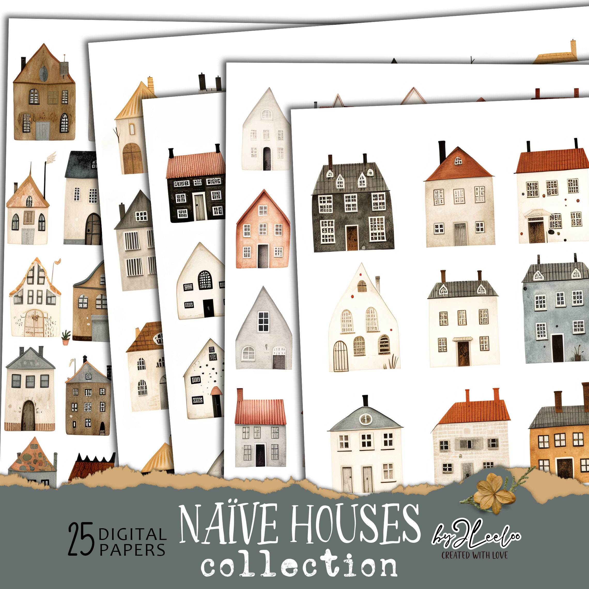 NAÏVE HOUSES COLLECTION vintage papers | printable fussy-cut children textures neutral tones | backgrounds hand-drawn journal art | pp773