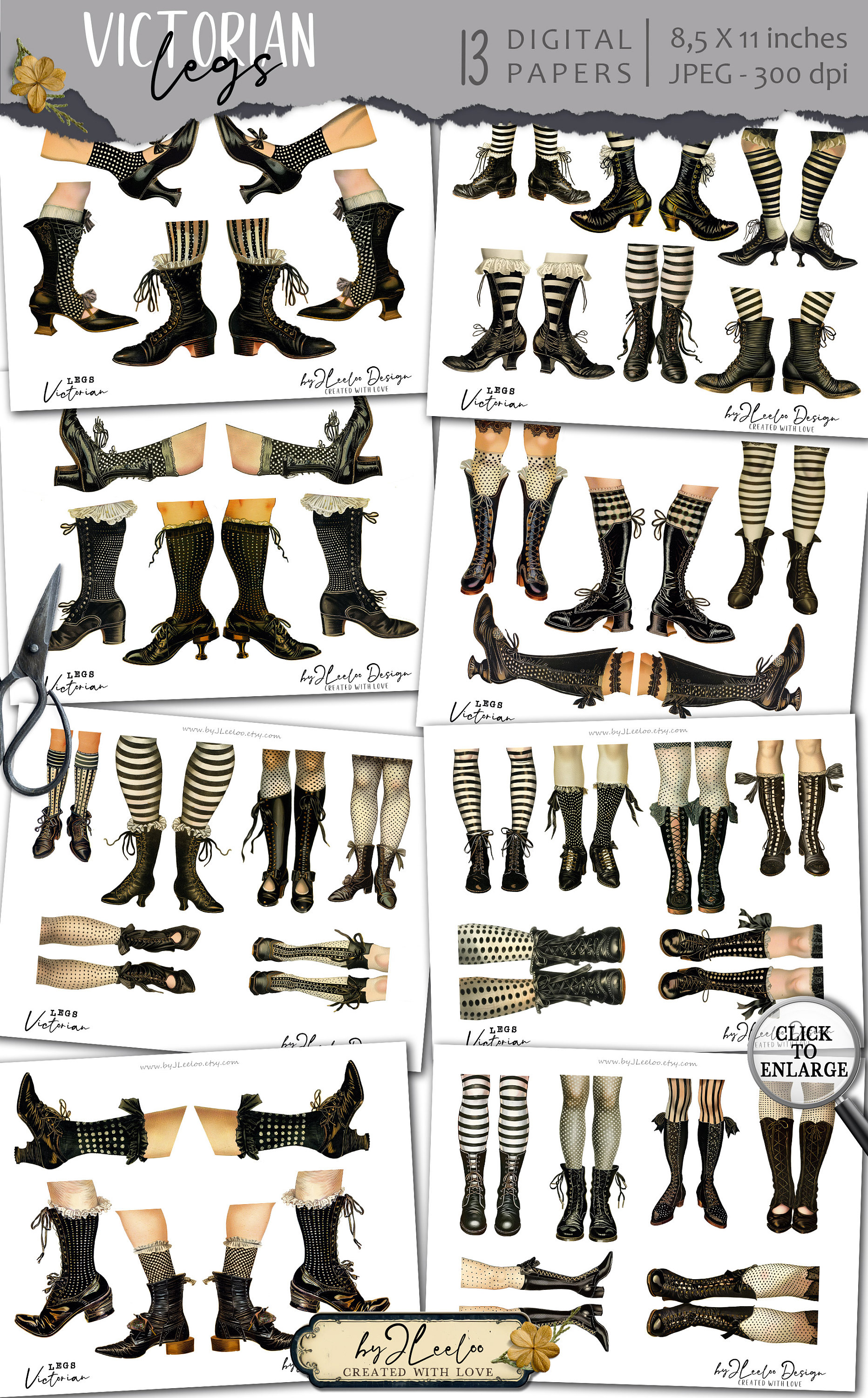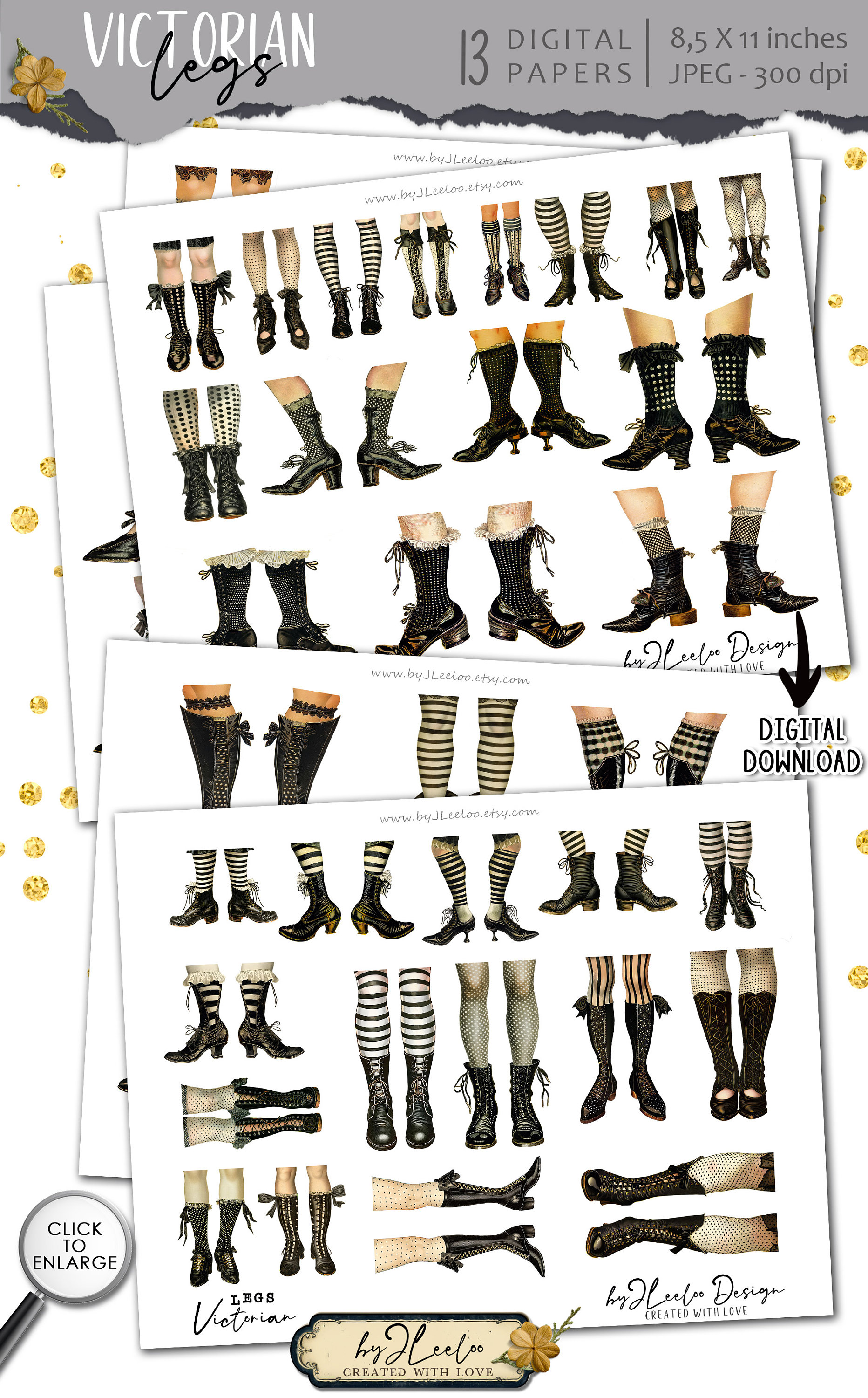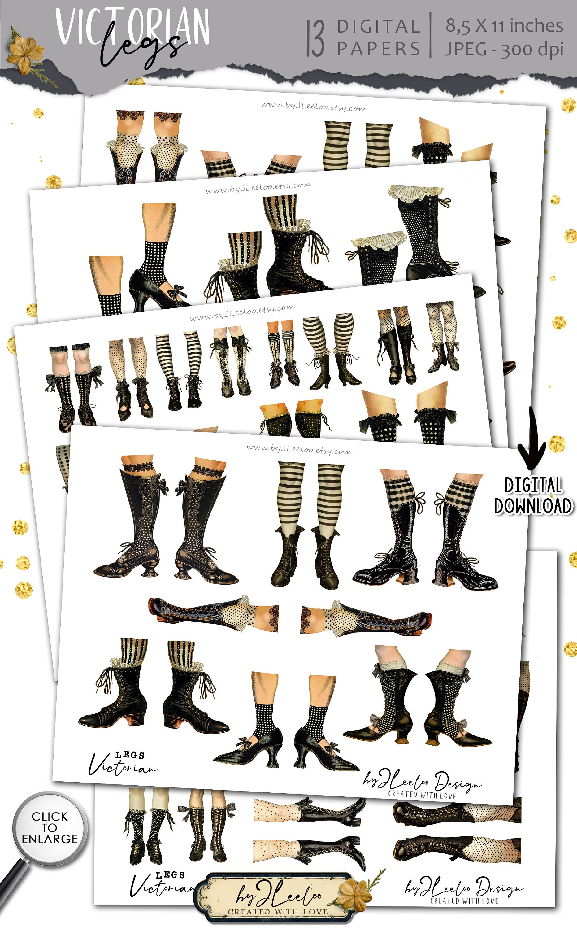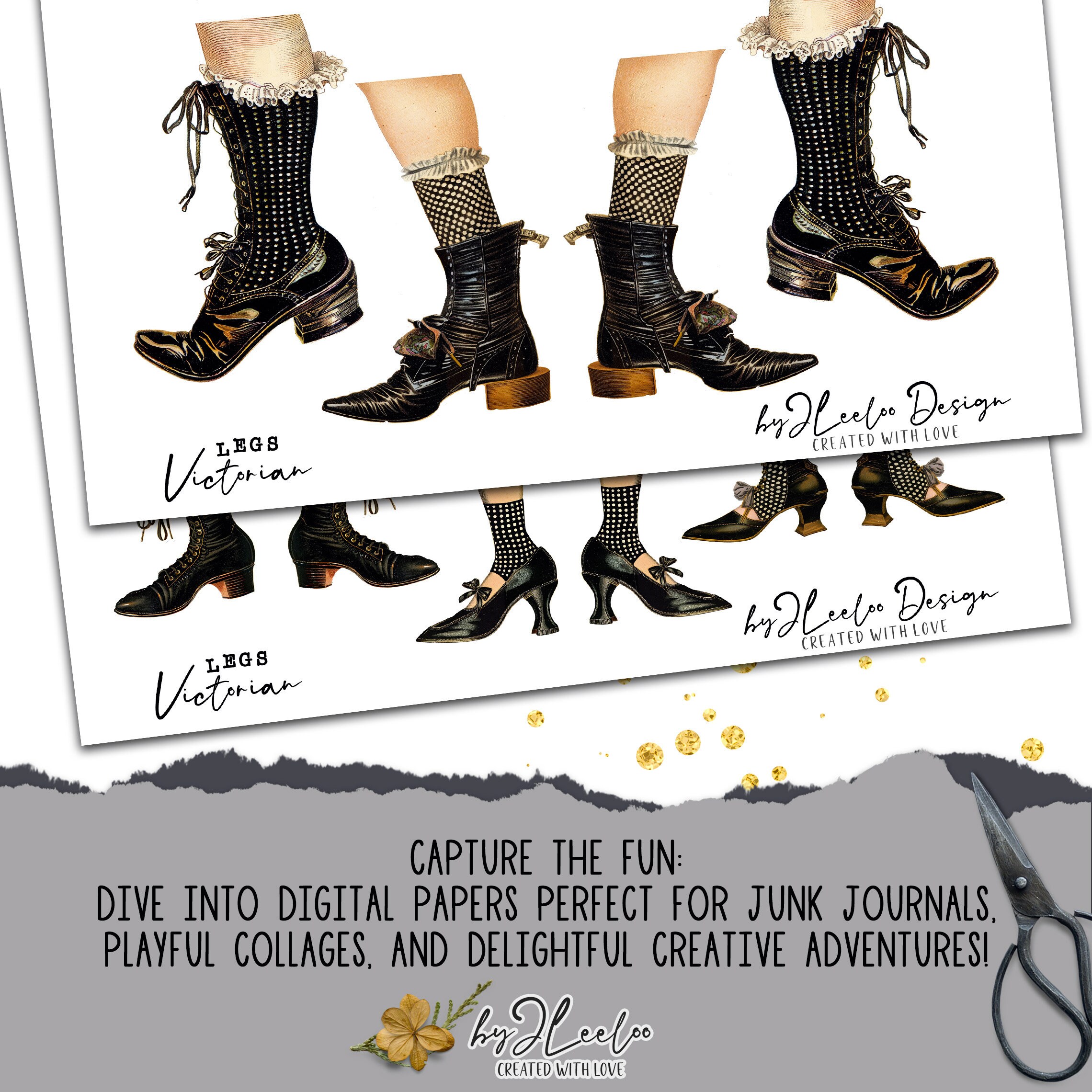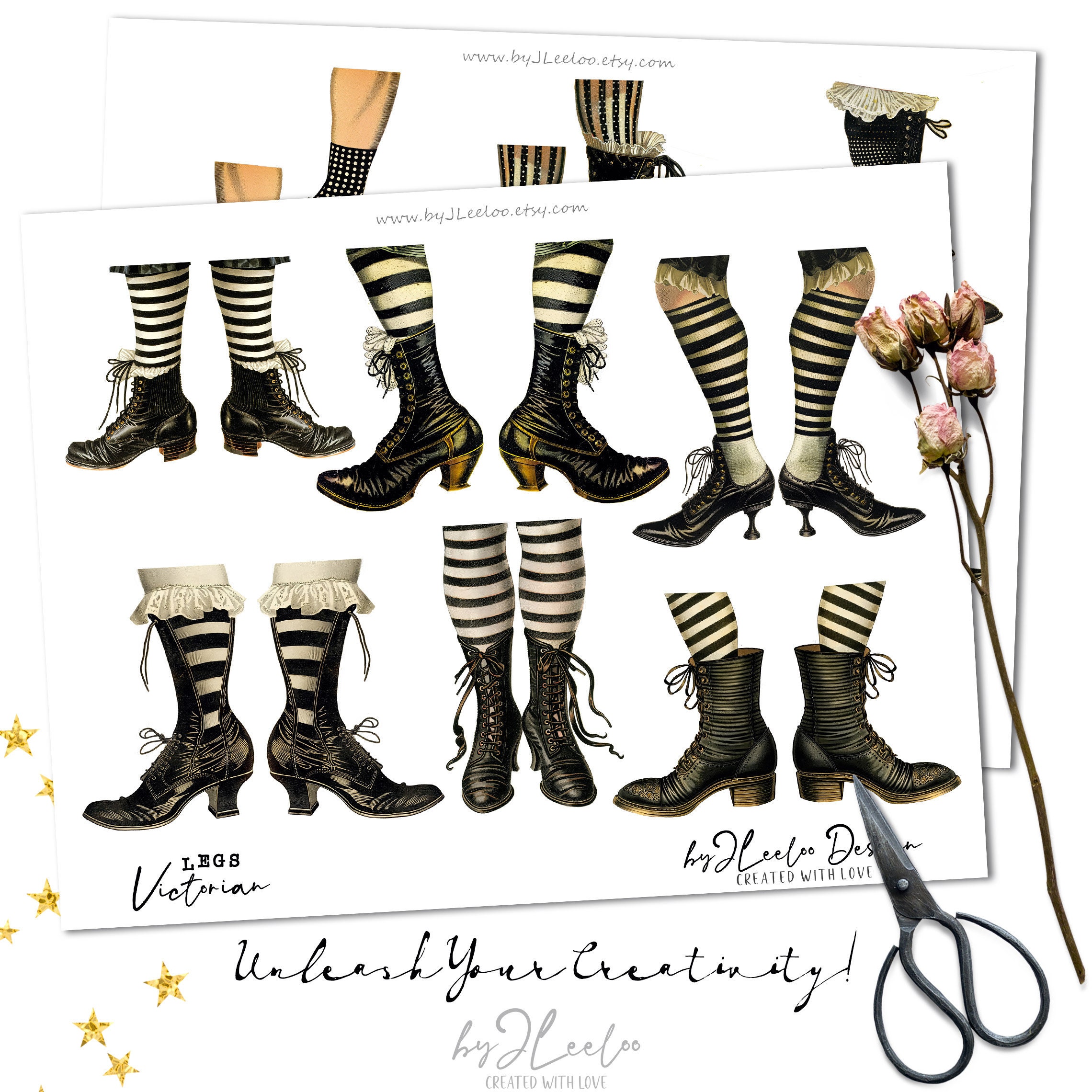 VICTORIAN LEGS fussy-cut ephemera printable | Paper doll Whimsical supplies mixed media junk journal | Bundle dolls elements collage | cl163