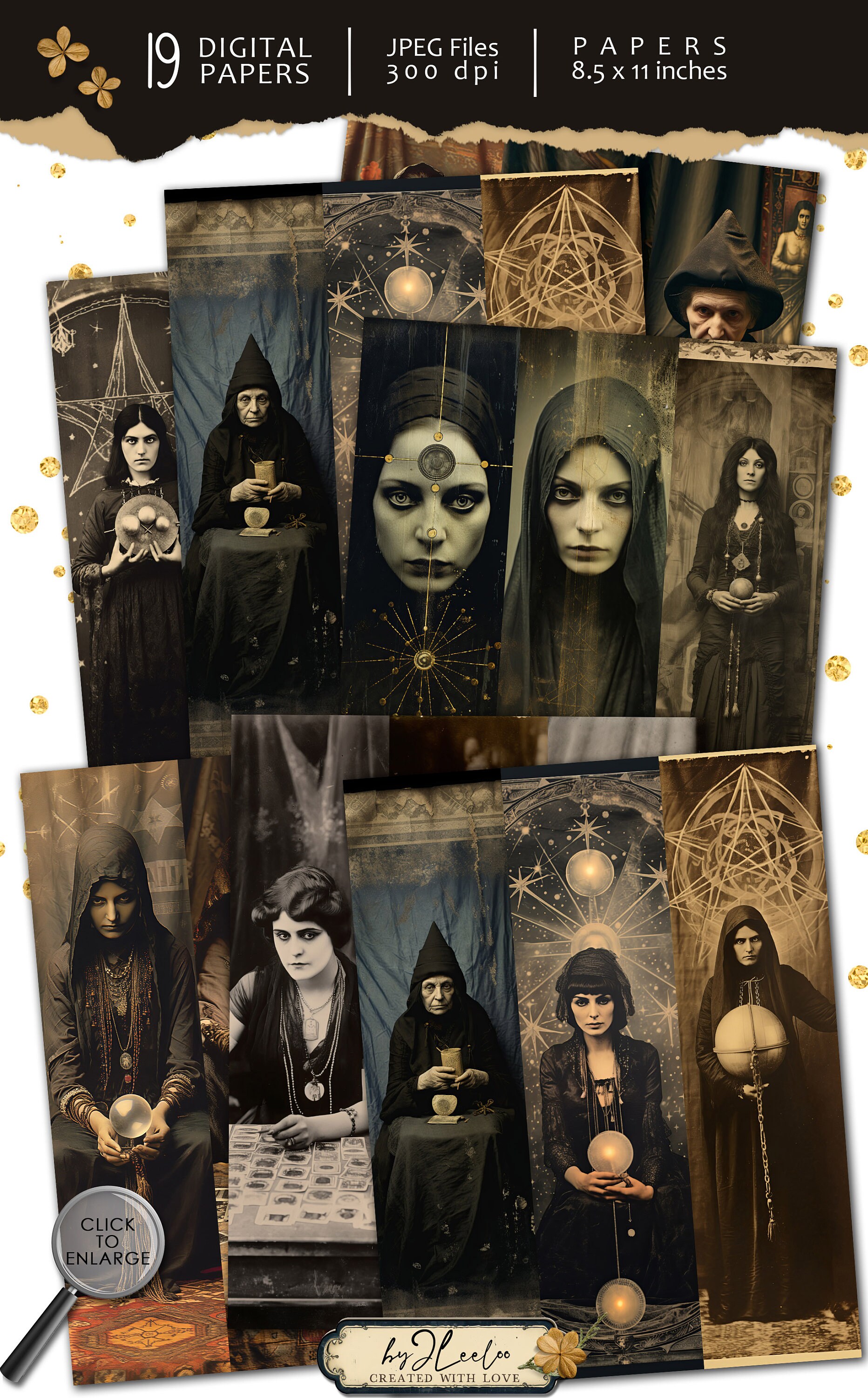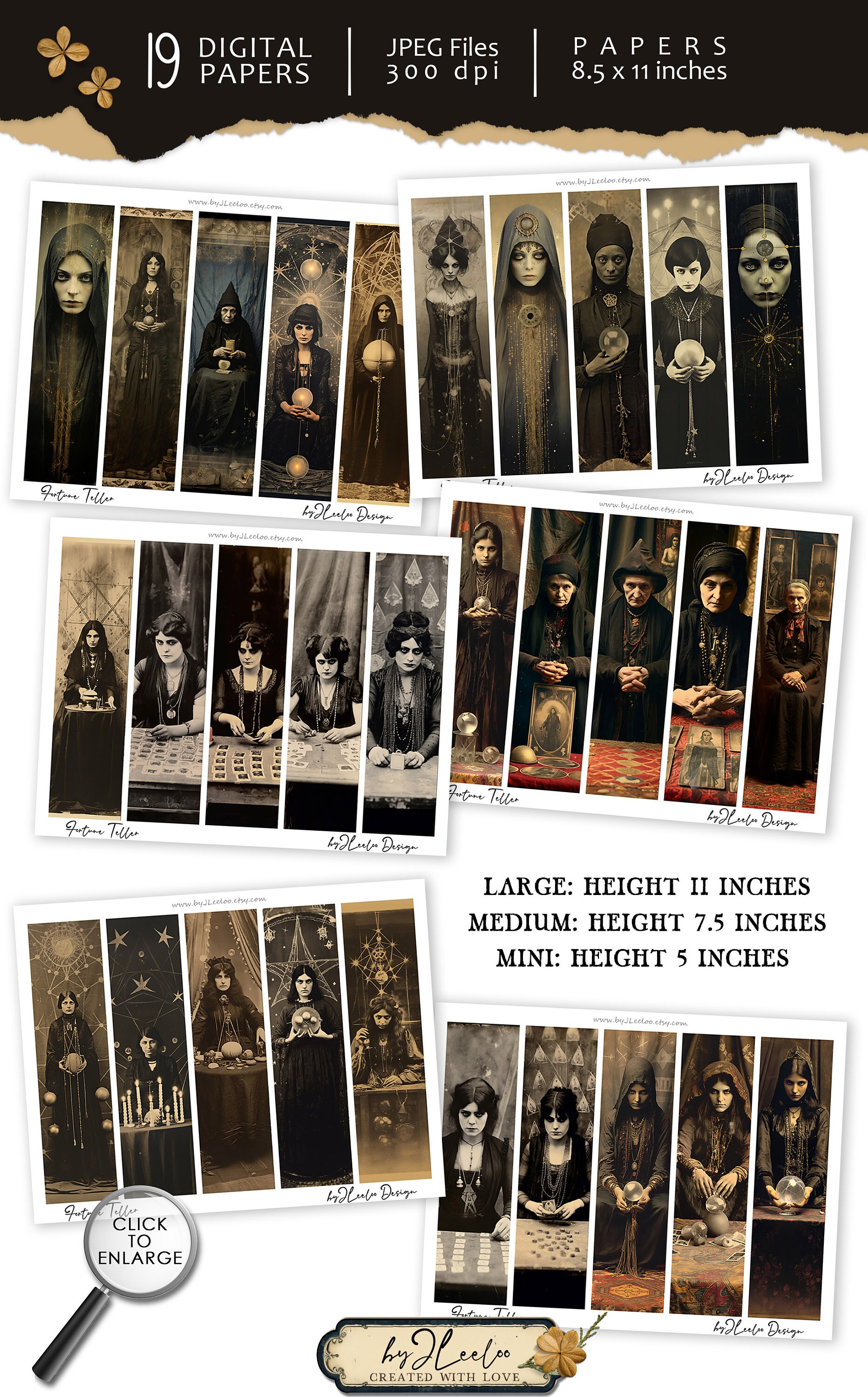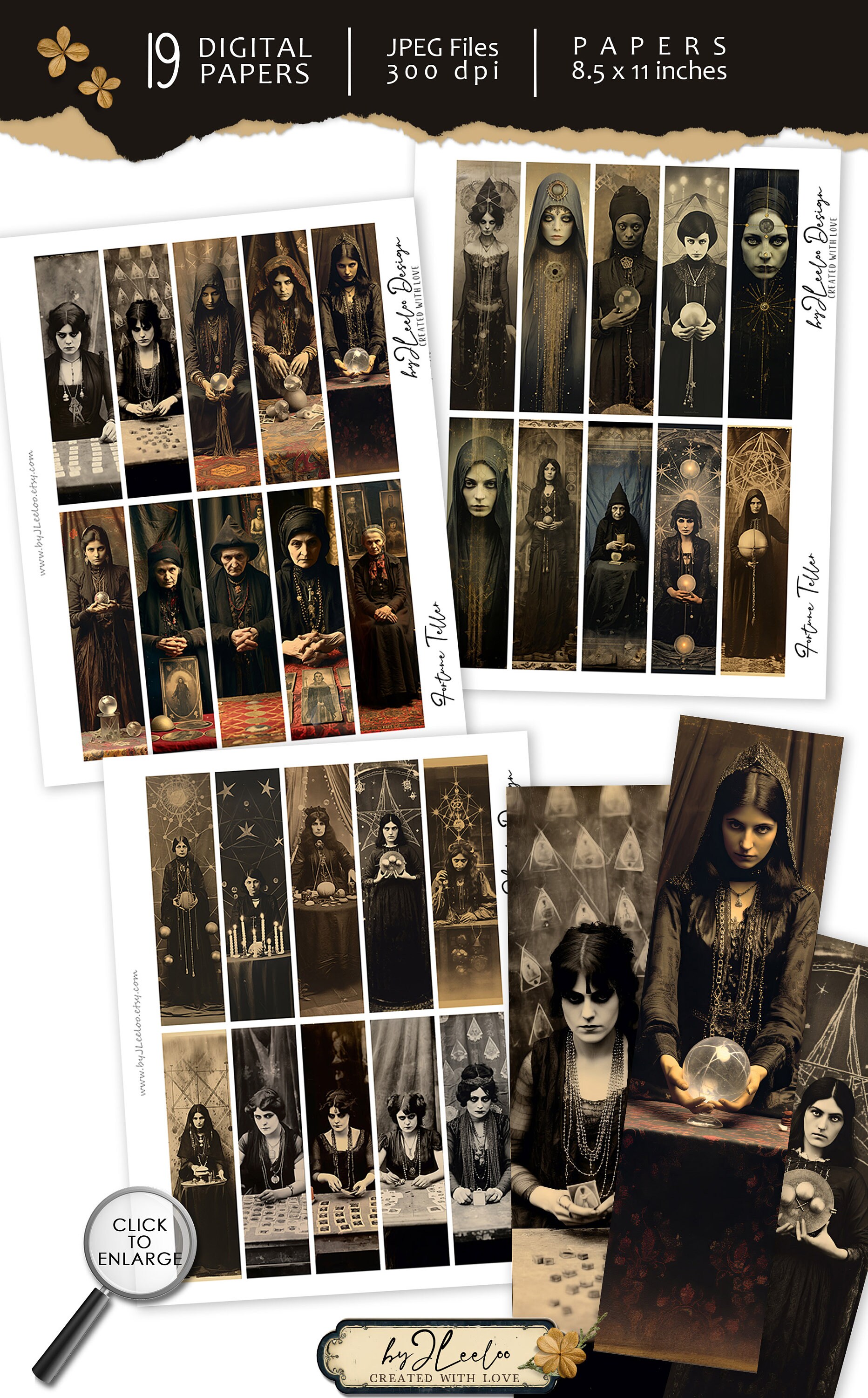 FORTUNE TELLER gothic bookmarks supplies | Antique Victorian Pictures Cards paper craft tag ephemera junk journal | Halloween Cards | pp774