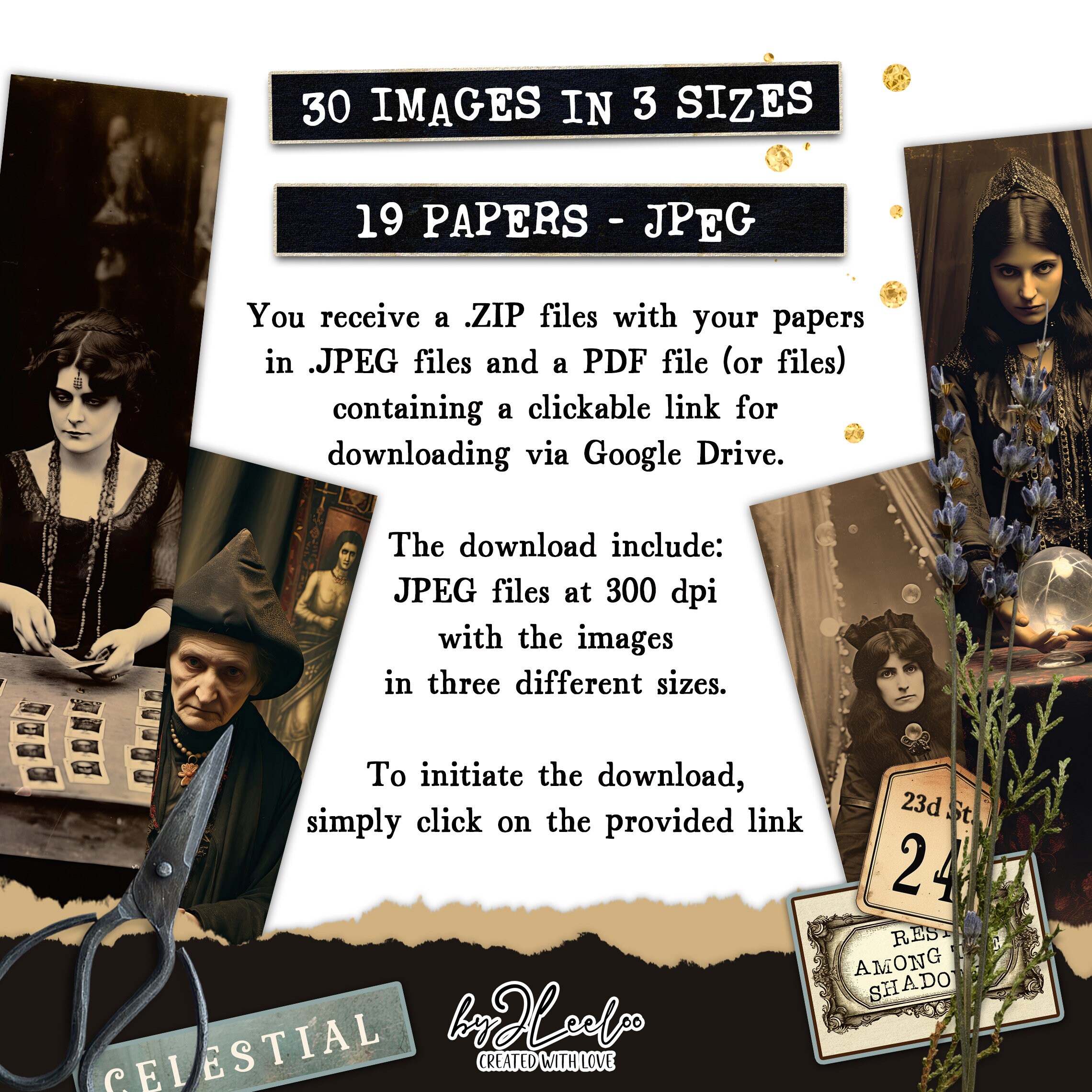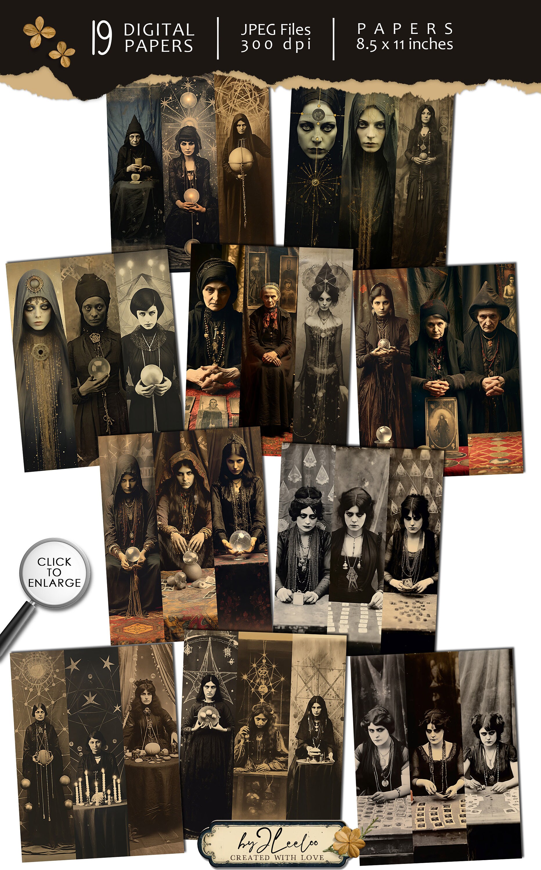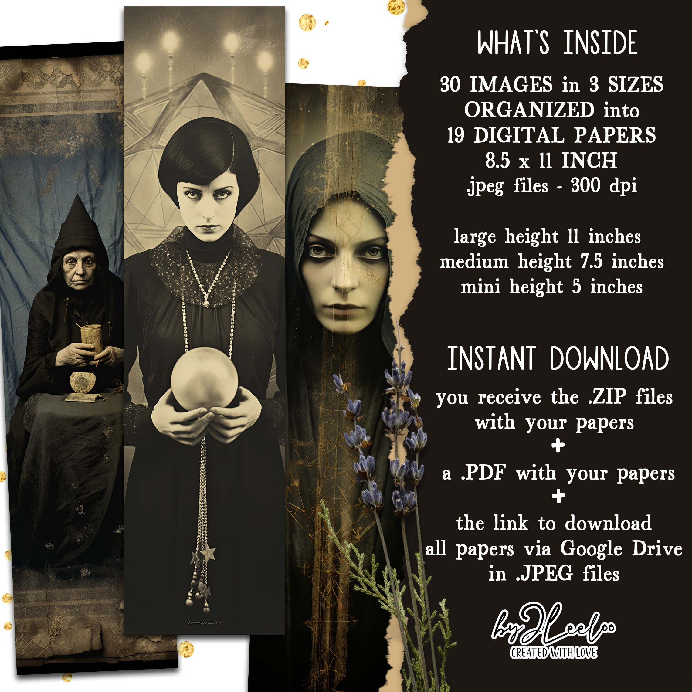 FORTUNE TELLER gothic bookmarks supplies | Antique Victorian Pictures Cards paper craft tag ephemera junk journal | Halloween Cards | pp774