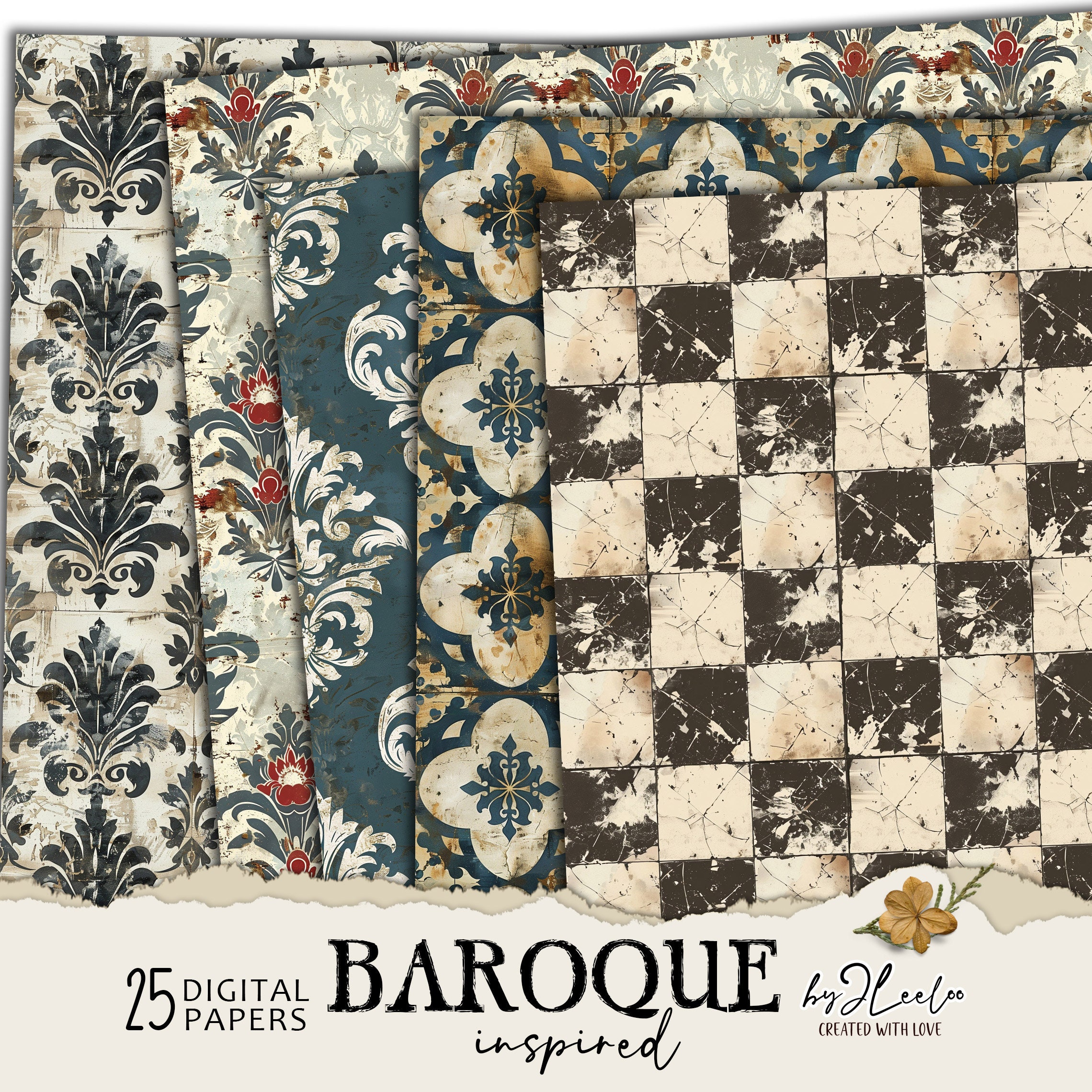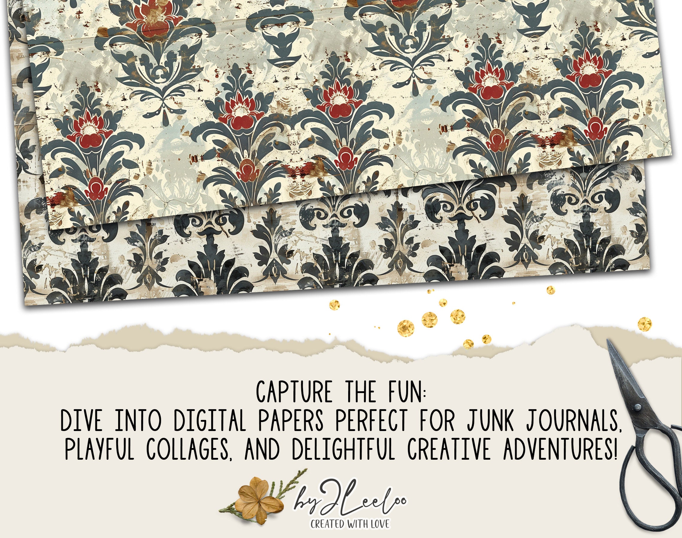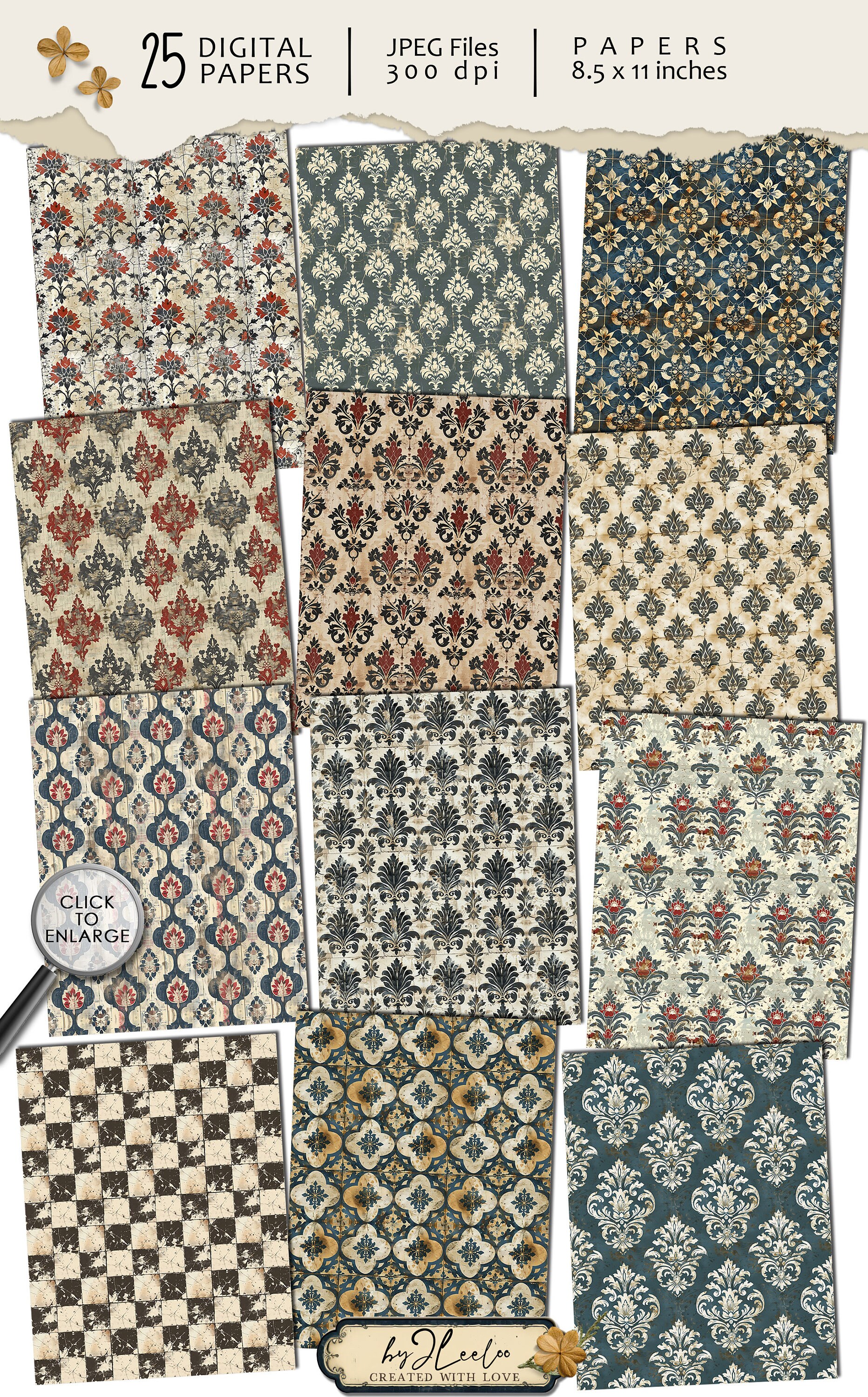 Fabulous collection of patterns great for junk journals, collage, mixed media, and even stationery.