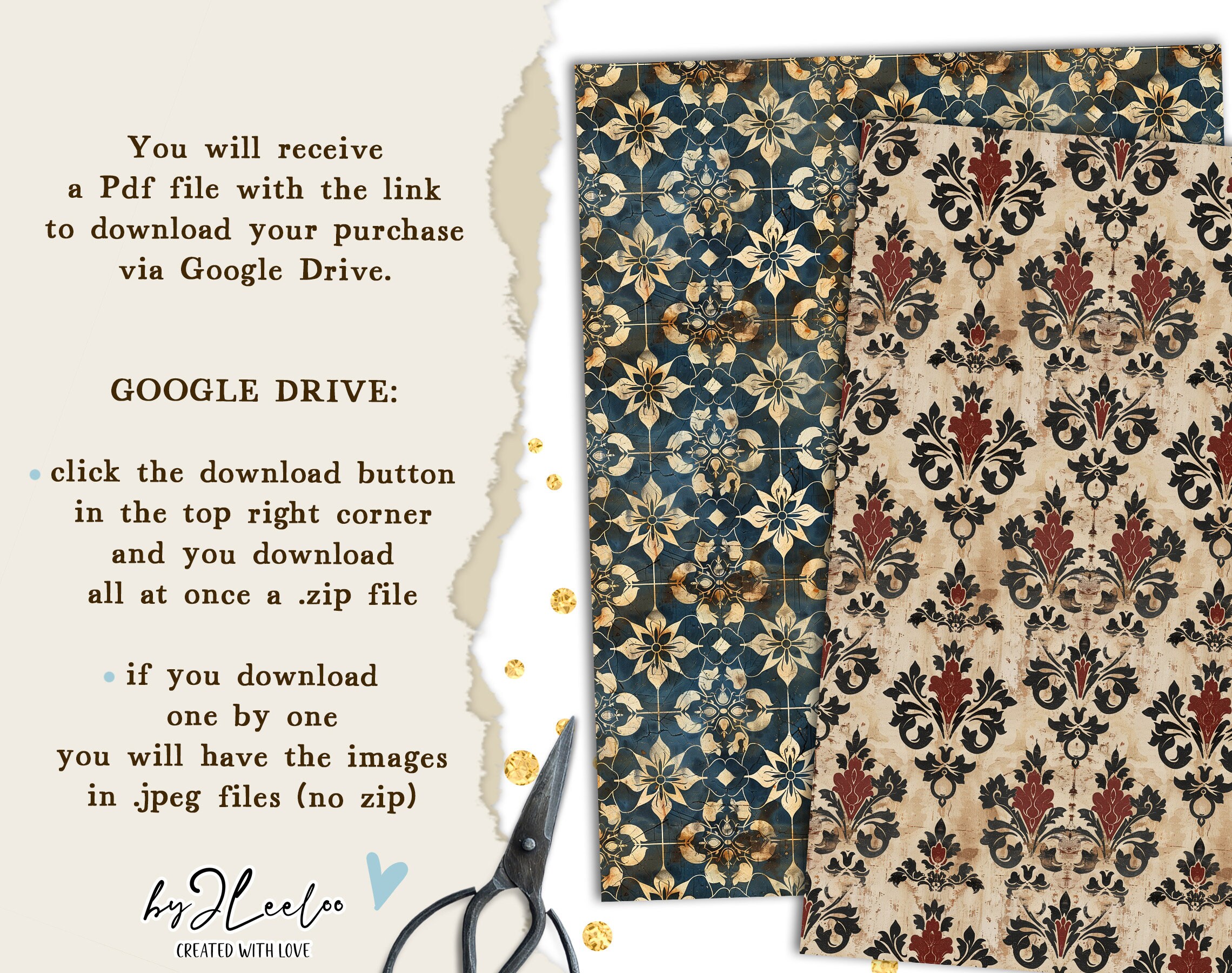 ◾ The PDF file(s) where you will find the link to download your new digital papers via Google Drive (no zip).