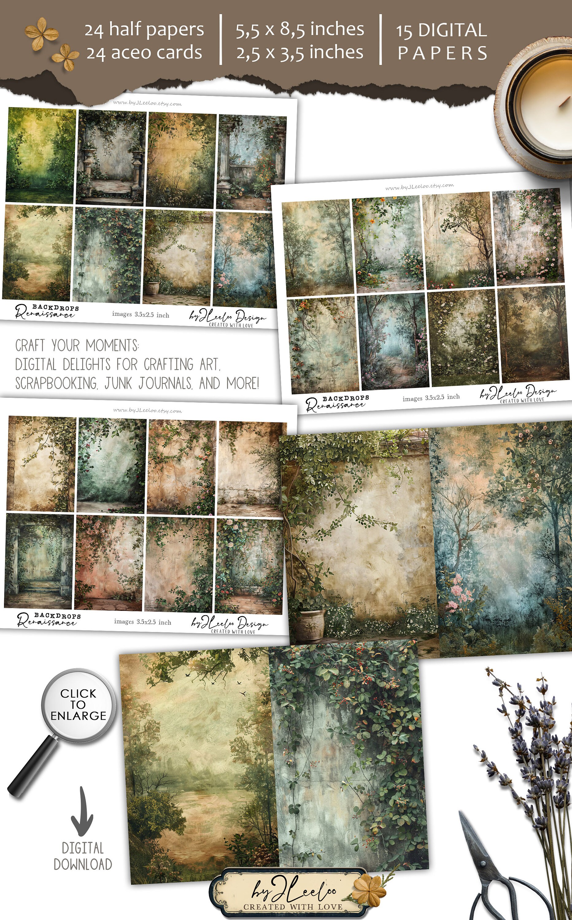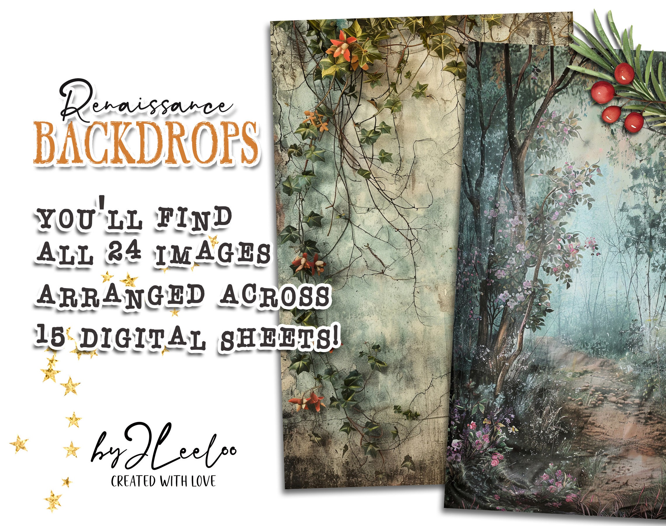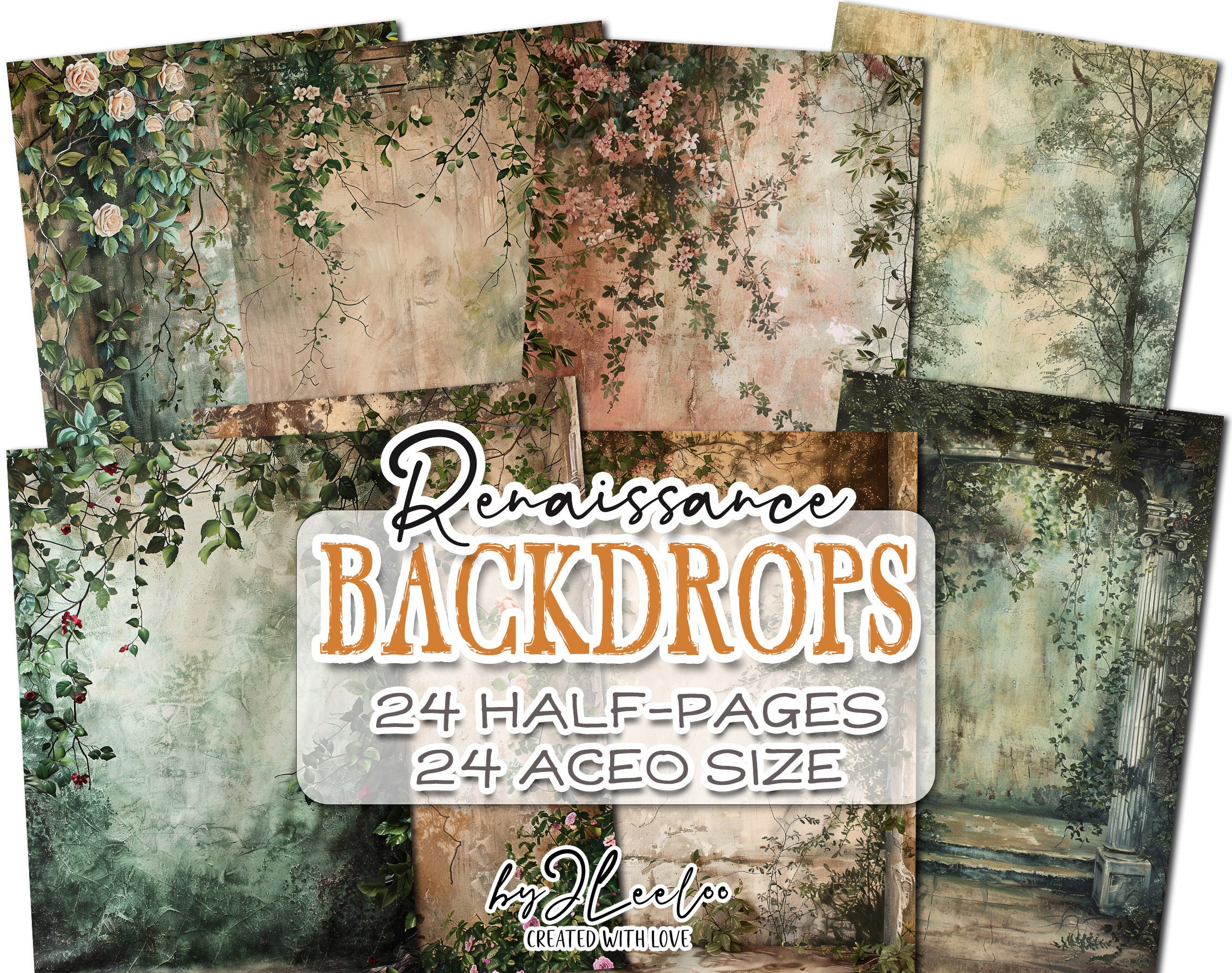 RENAISSANCE BACKDROPS half pages printable | Junk Journal Card Making supplies | Distressed grunge dirty paper crafting Collage CU | pp779