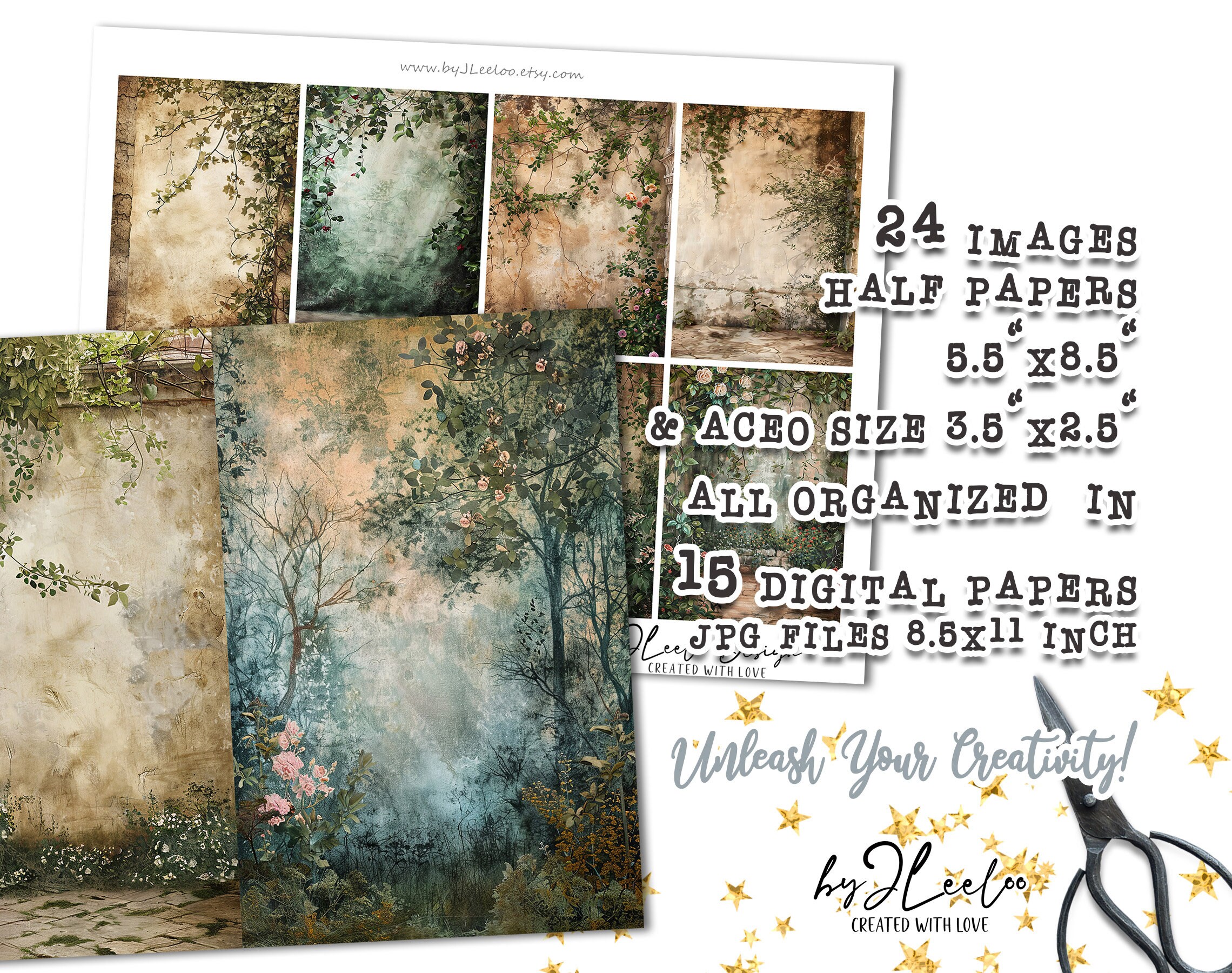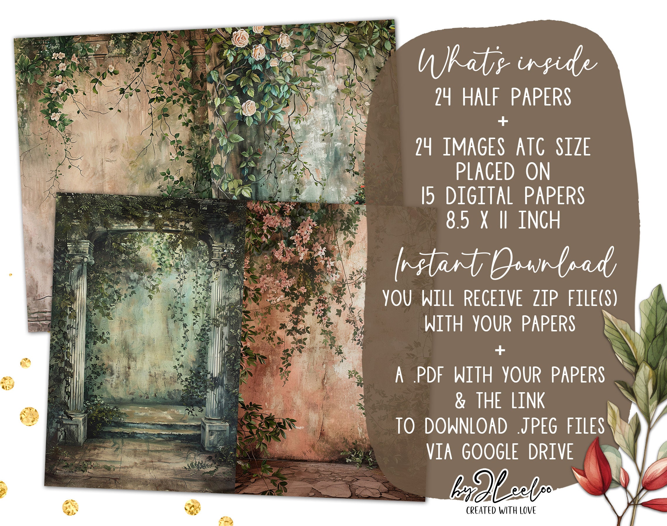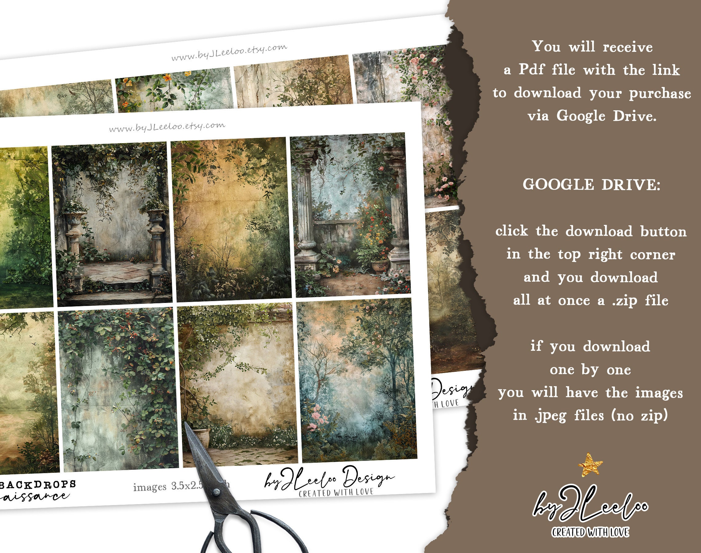 RENAISSANCE BACKDROPS half pages printable | Junk Journal Card Making supplies | Distressed grunge dirty paper crafting Collage CU | pp779