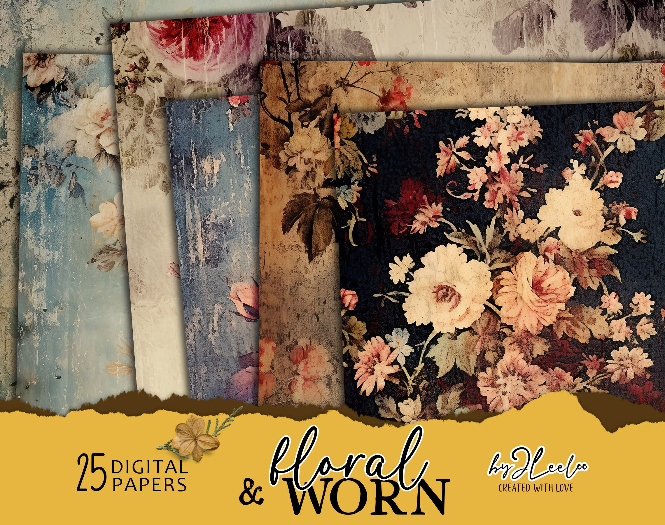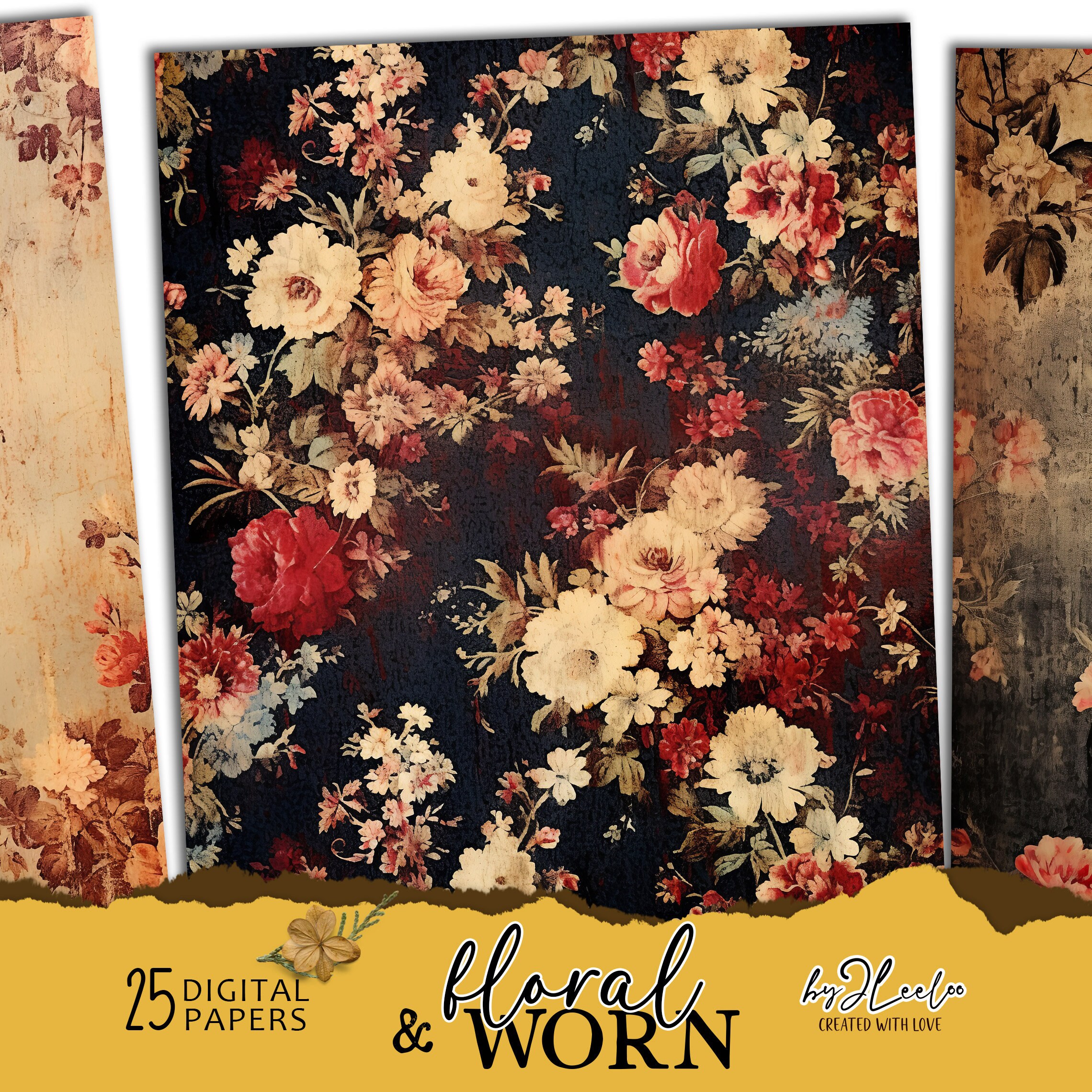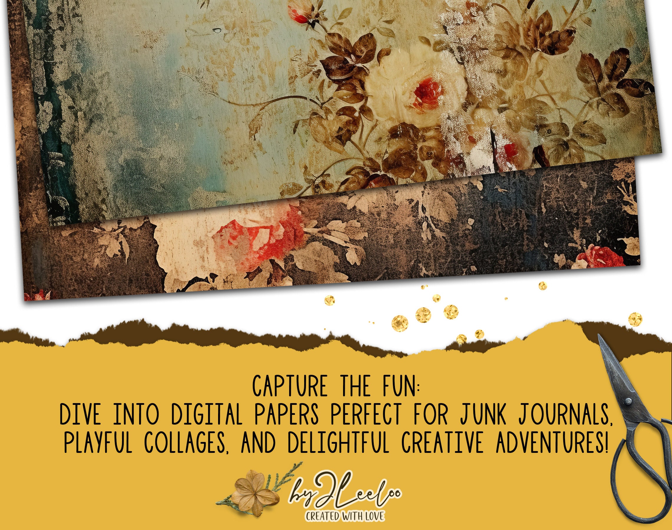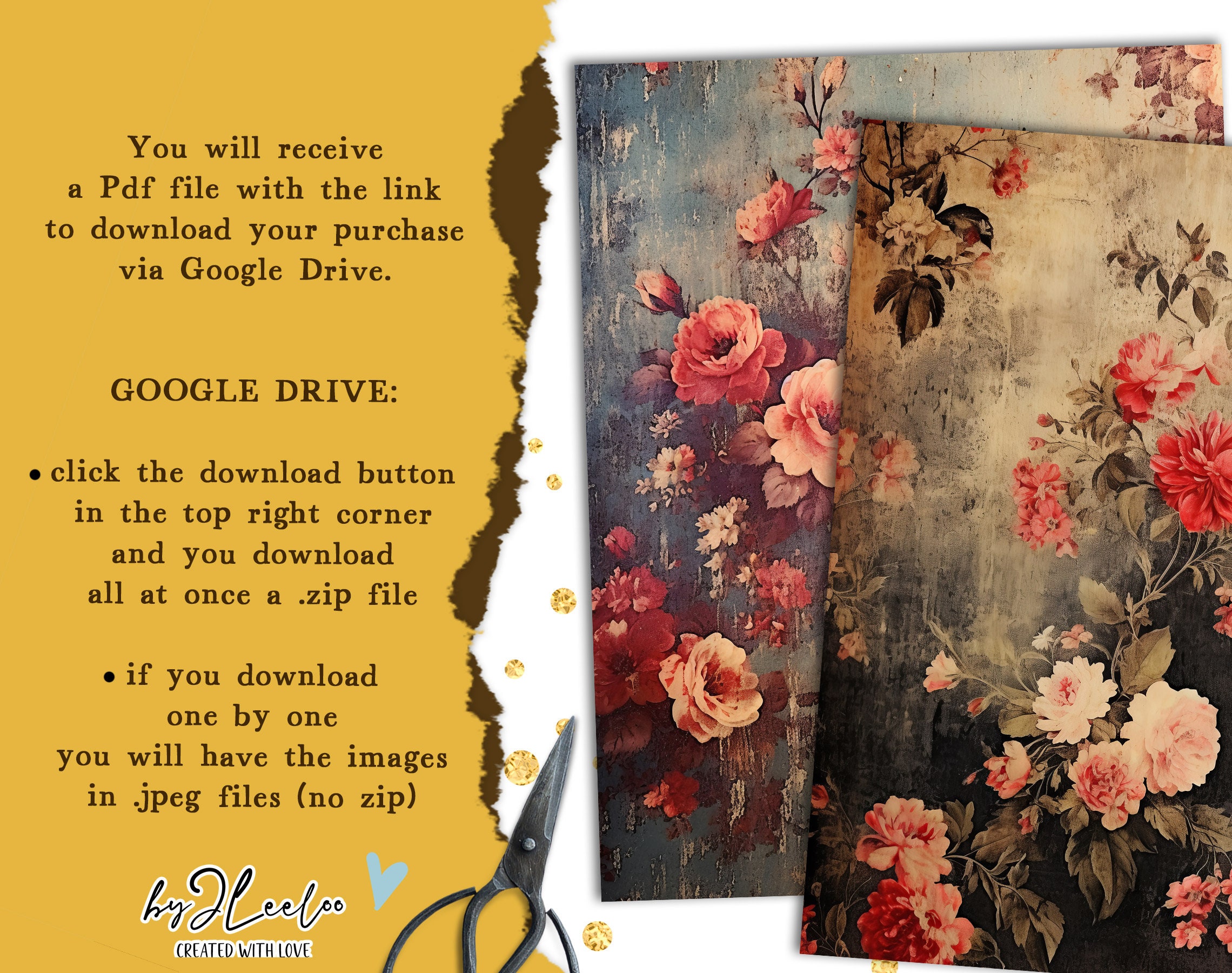 ๐ Immerse yourself in a captivating digital collection, featuring lightly distressed vintage floral patterns. Versatile for digital sheets, scrapbooking, journaling, backgrounds, or sublimation... let your creativity soar! ๐