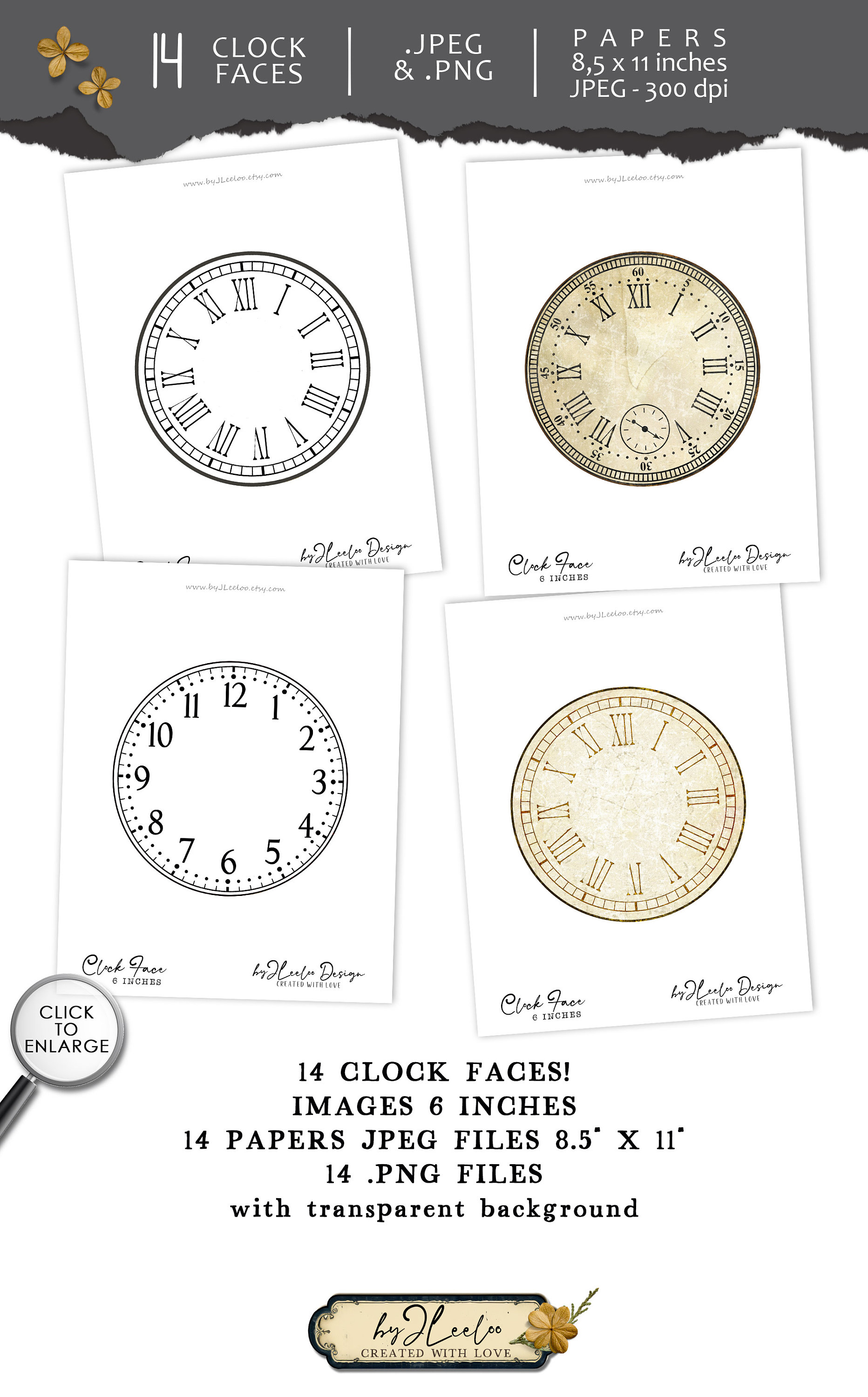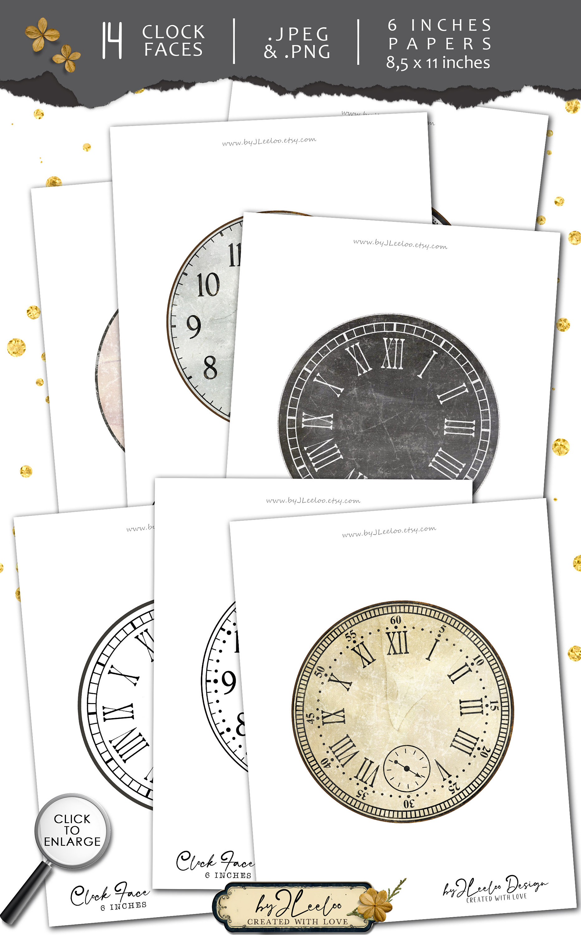 FACE CLOCK 6 inch circle printable | Vintage jpeg clock clipart vintage home decor diy | paper crafting download digital collage | tn789