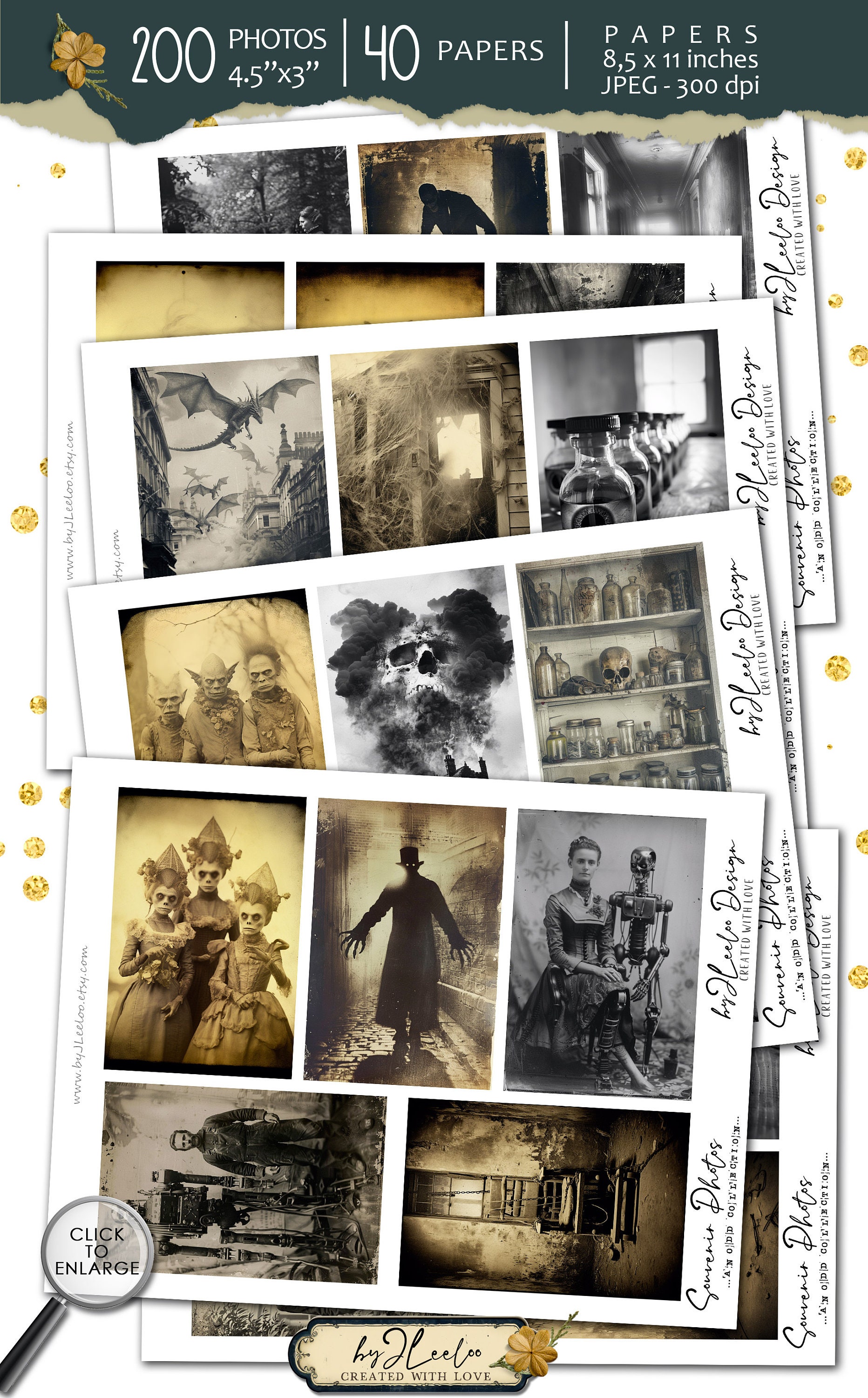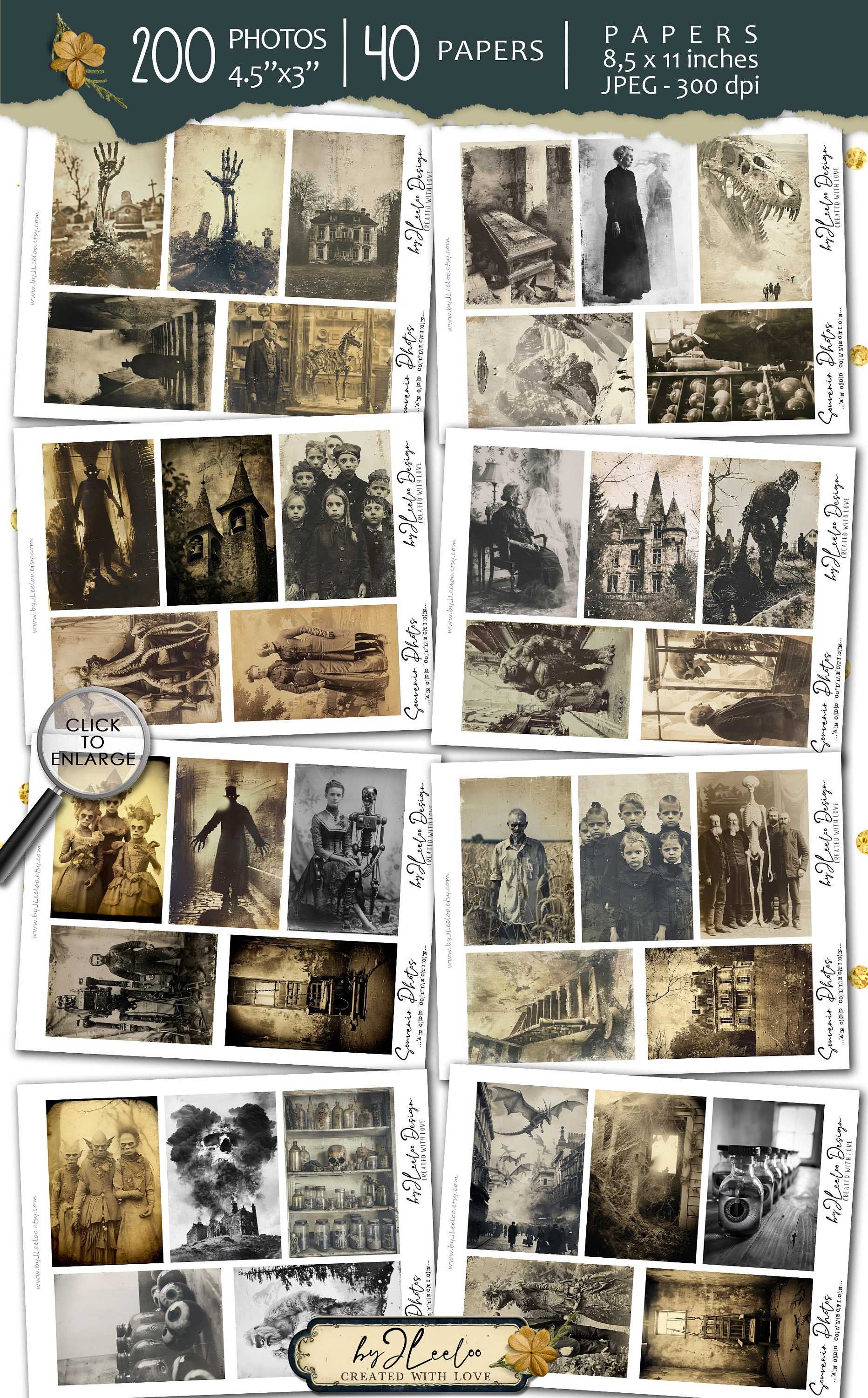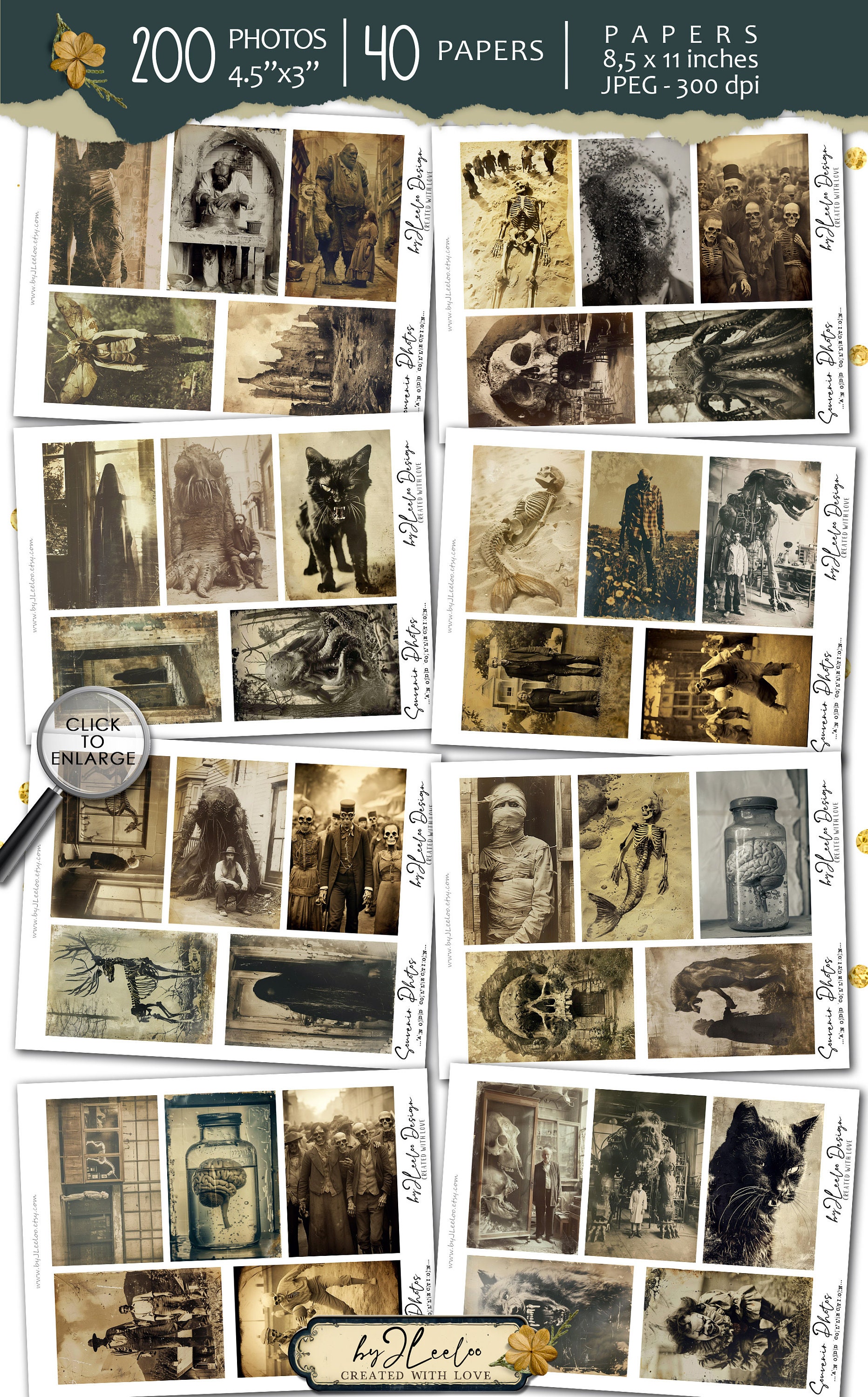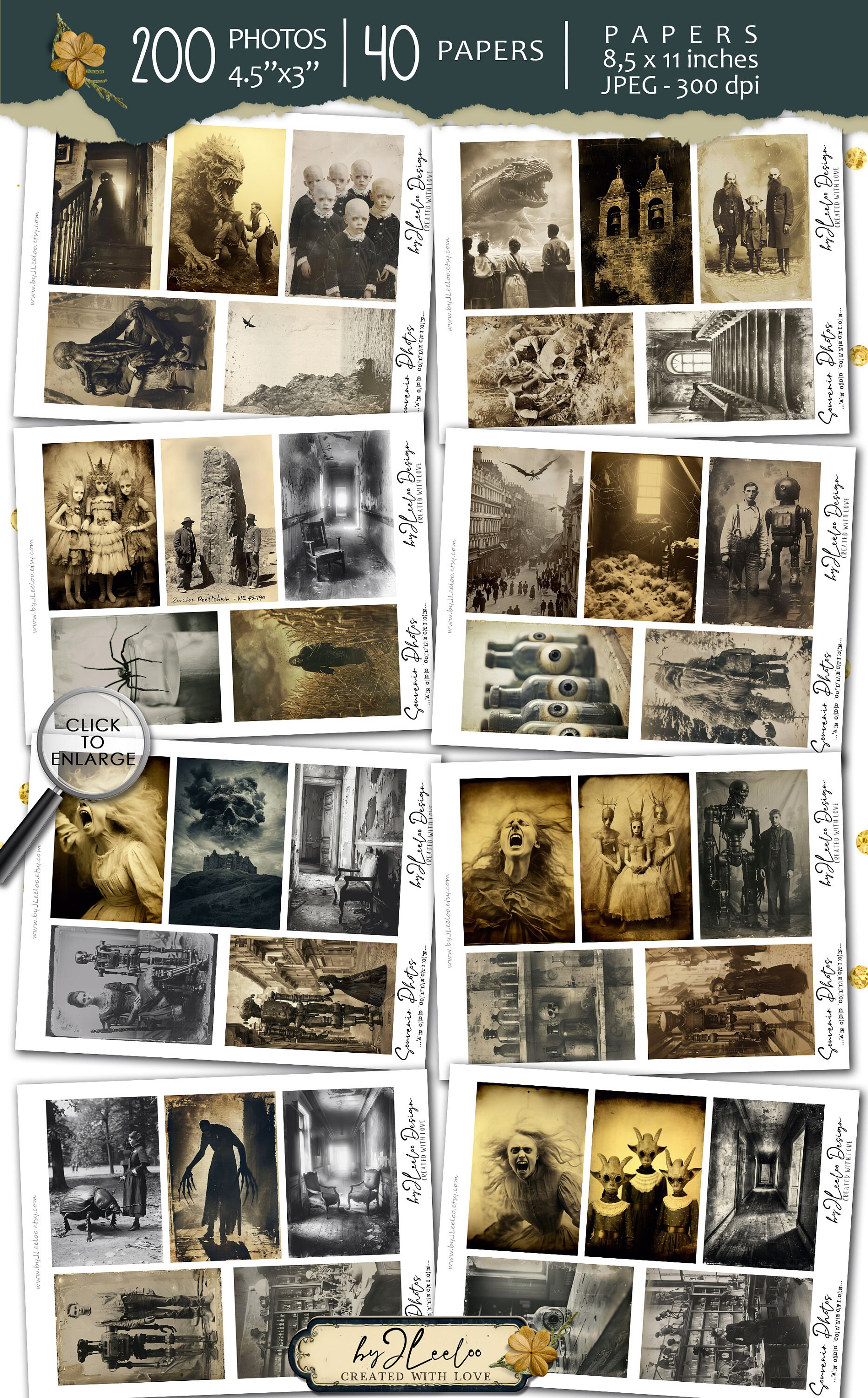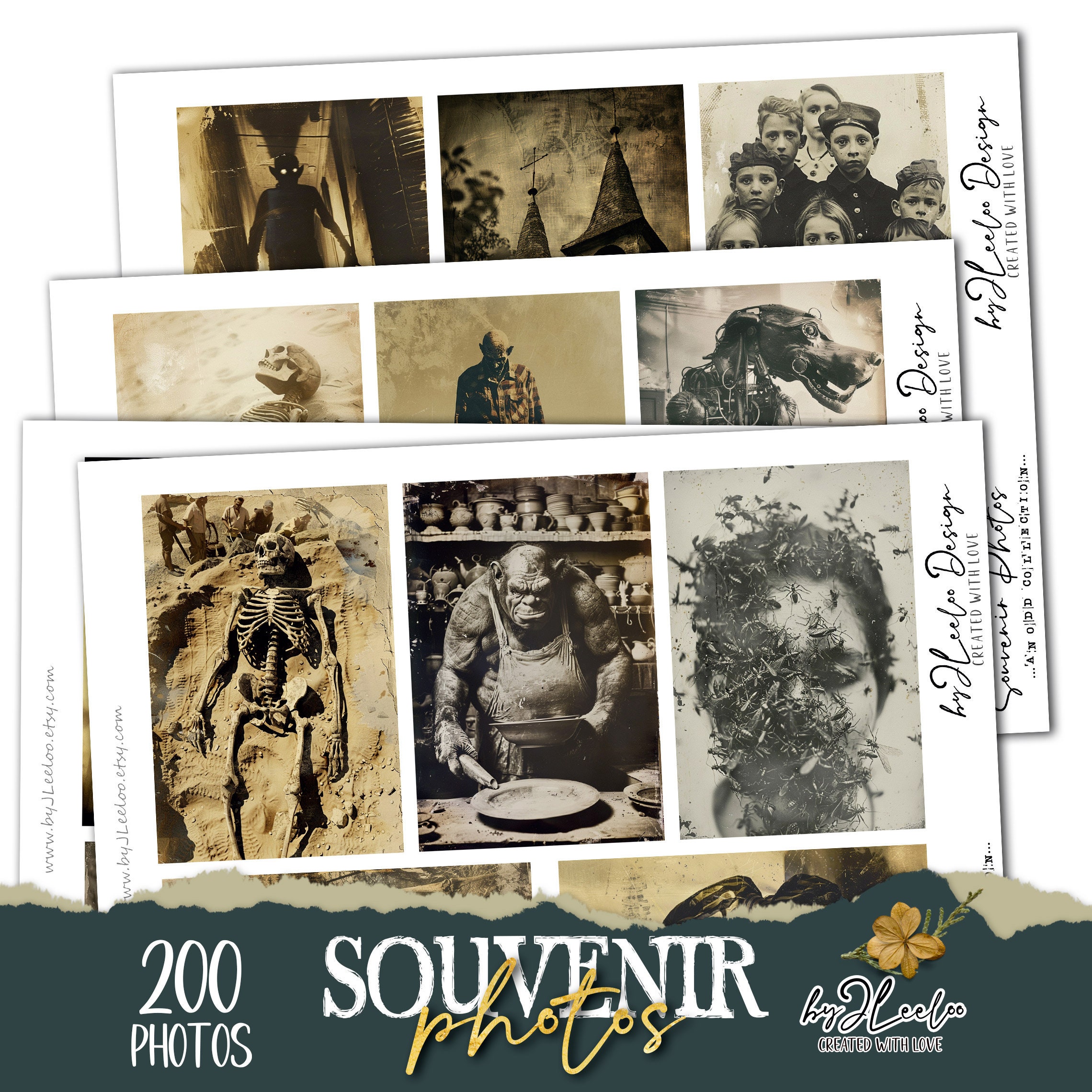 SOUVENIR PHOTOS Collection 200 Odd photos | creepy junk journal digital ephemera supplies | victorian photo cards halloween Bundle | cp010