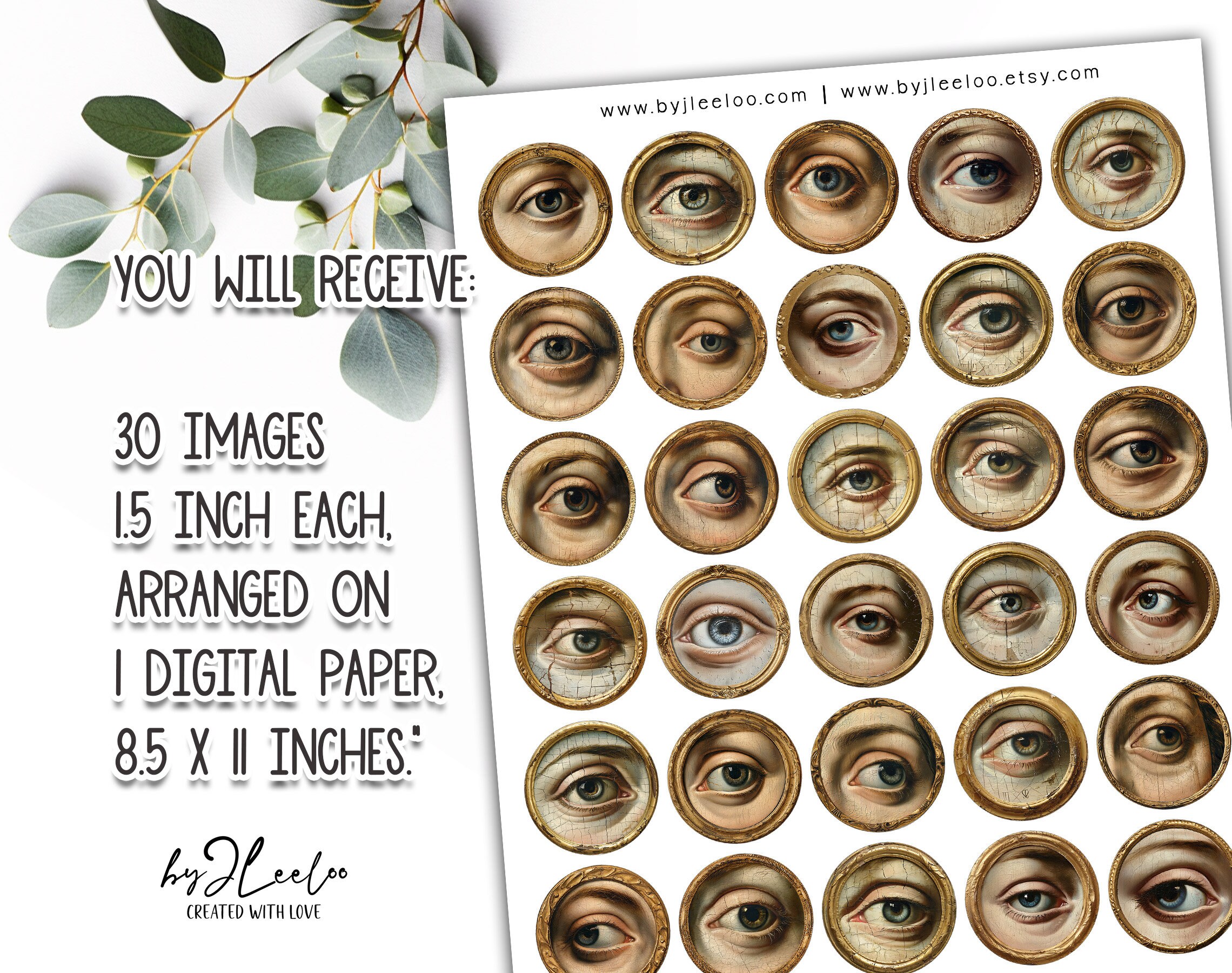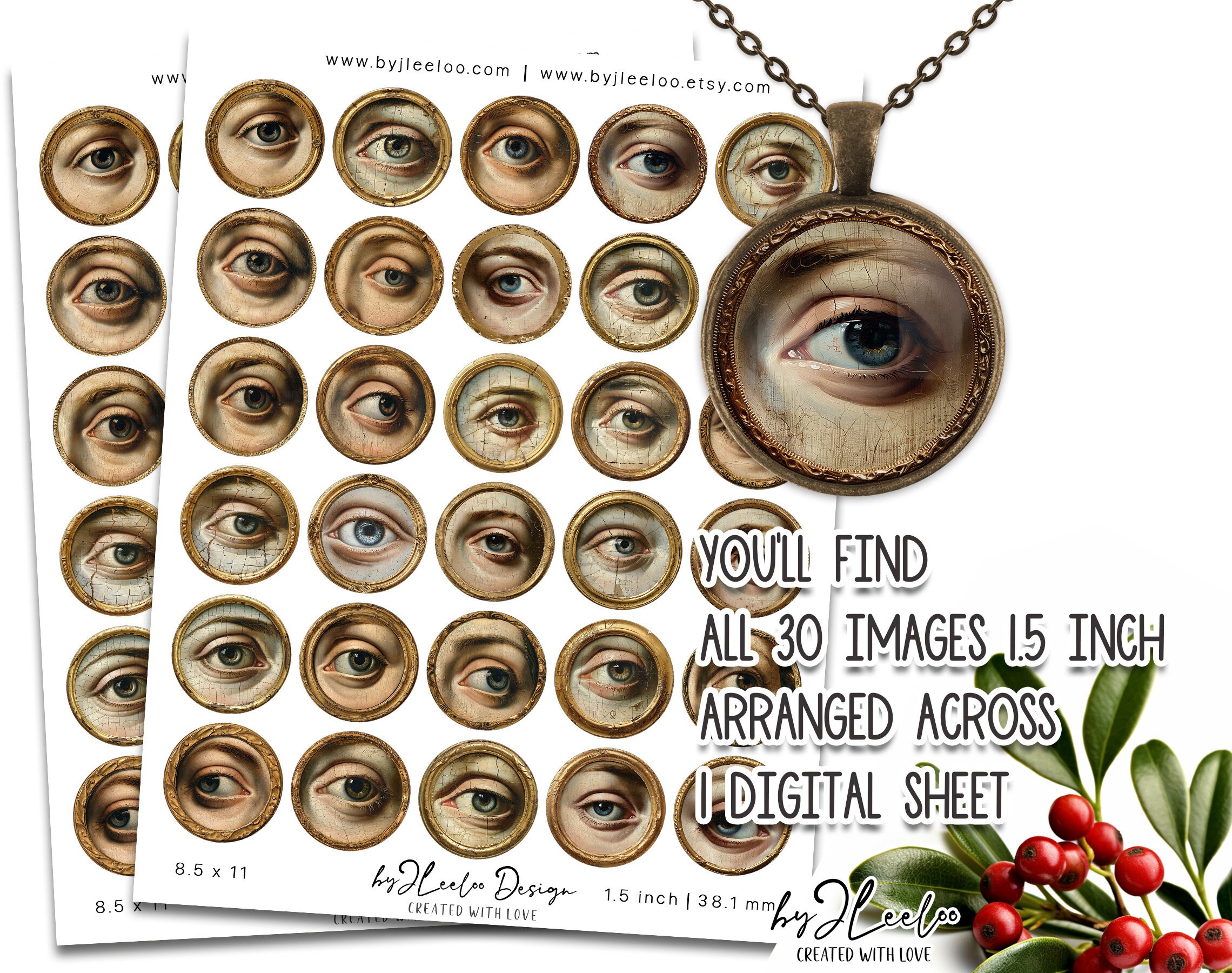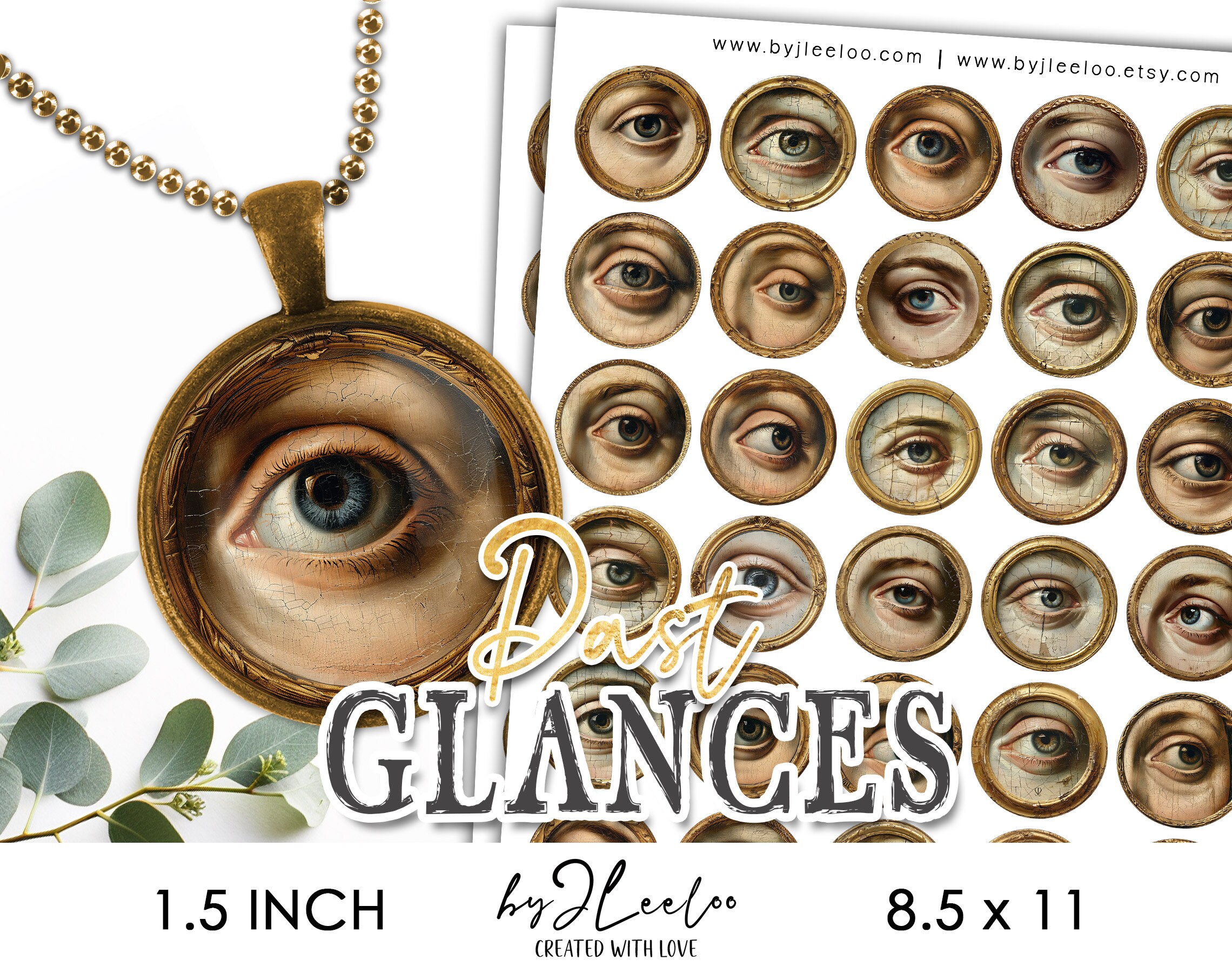 PAST GLANCES 1.5 inch printable illustration | supplies round pendants charm glass cabochon mountings cameo settings | Lover's Eye | tn792