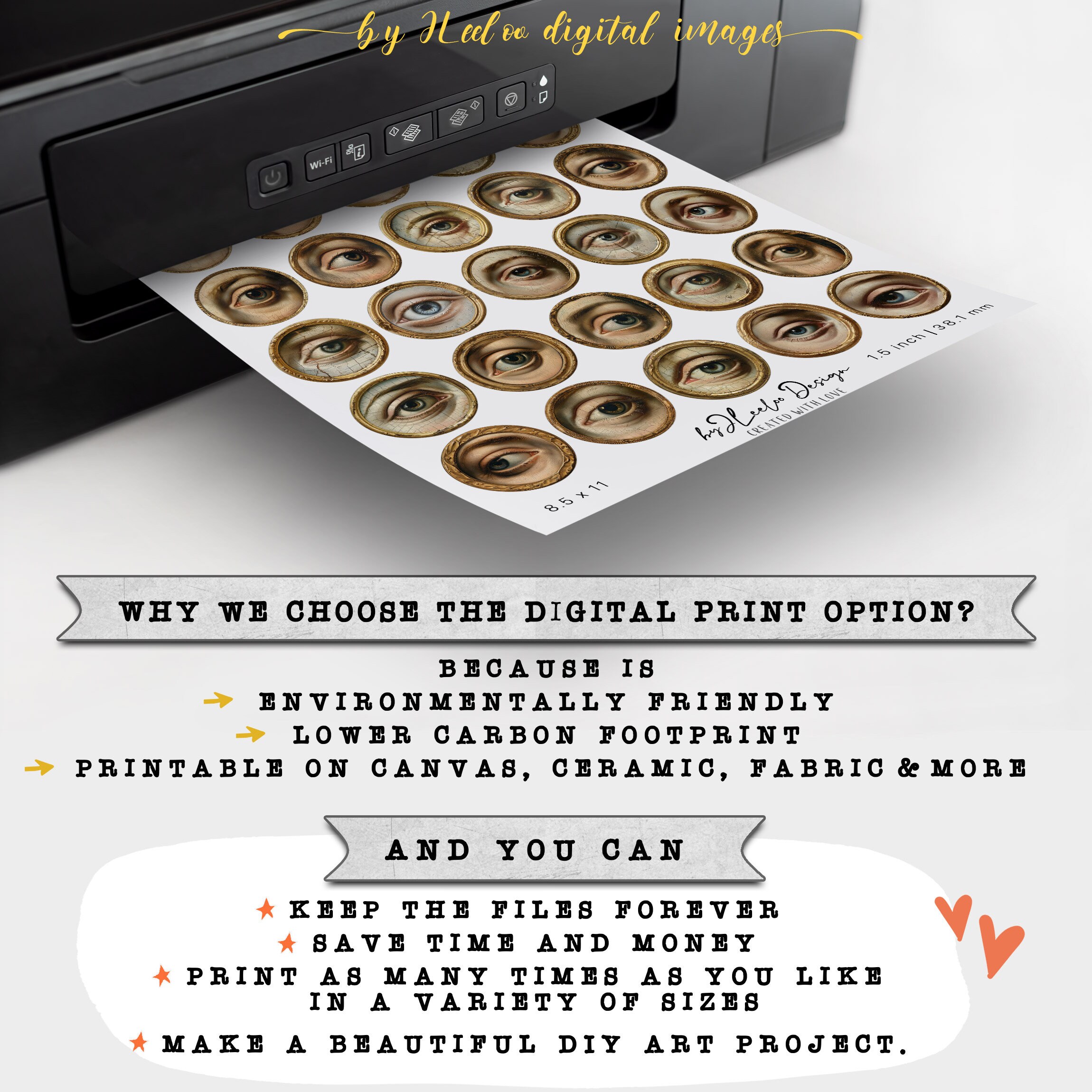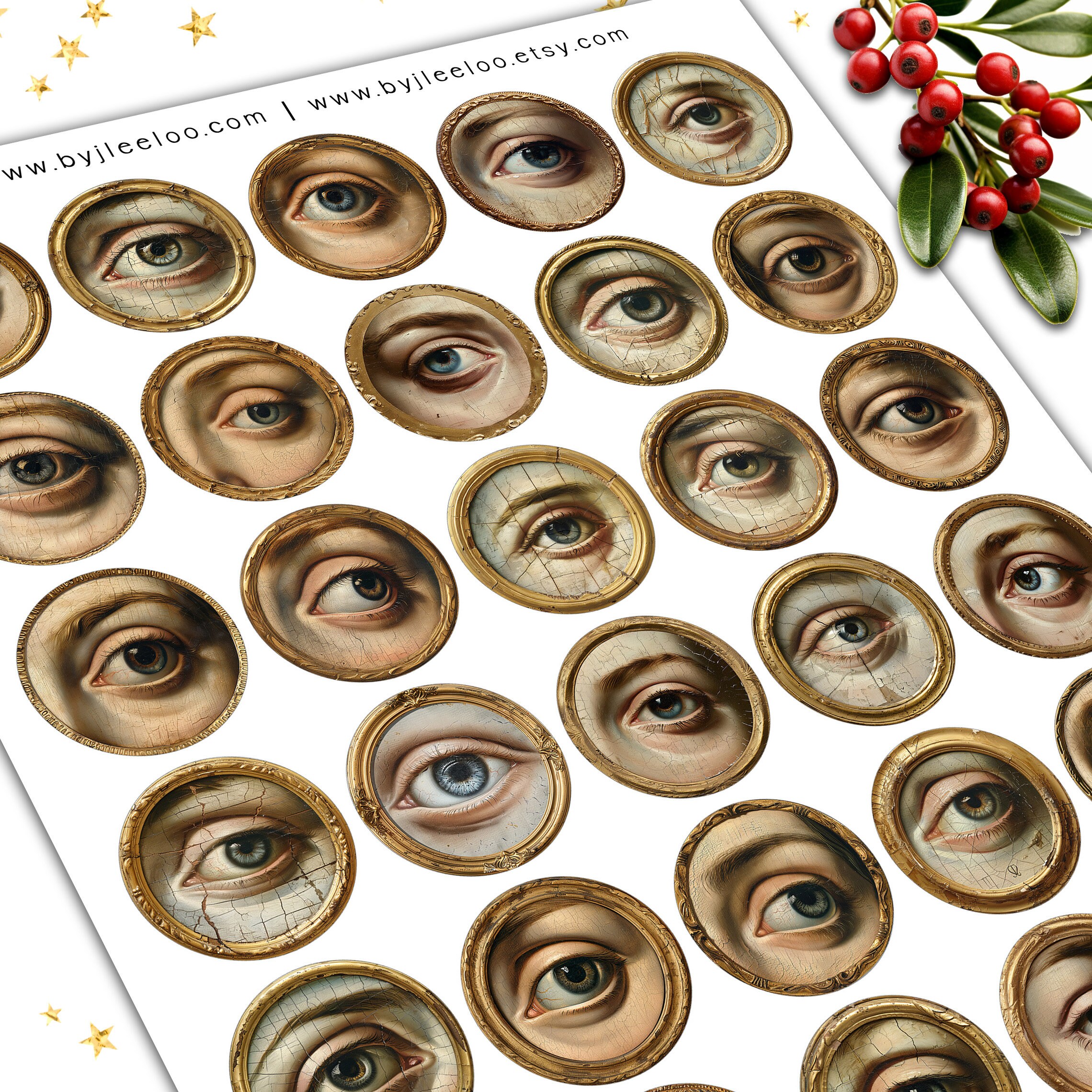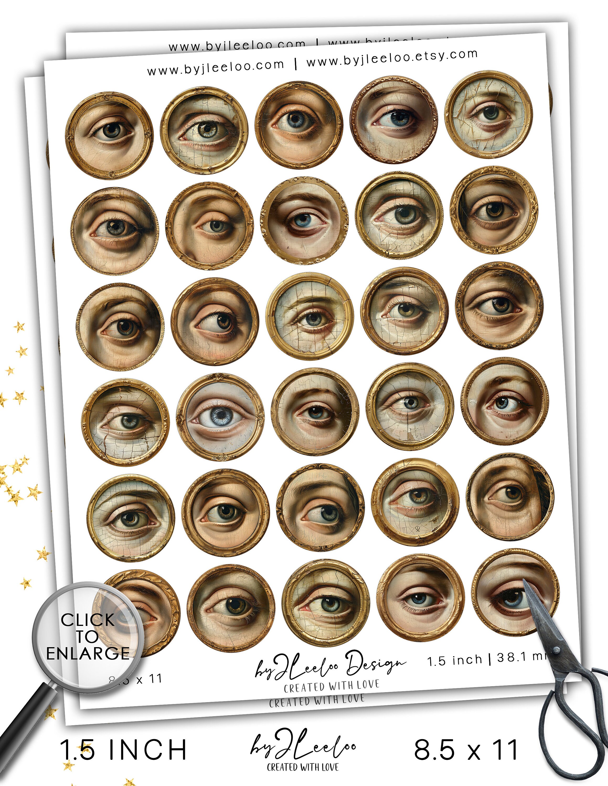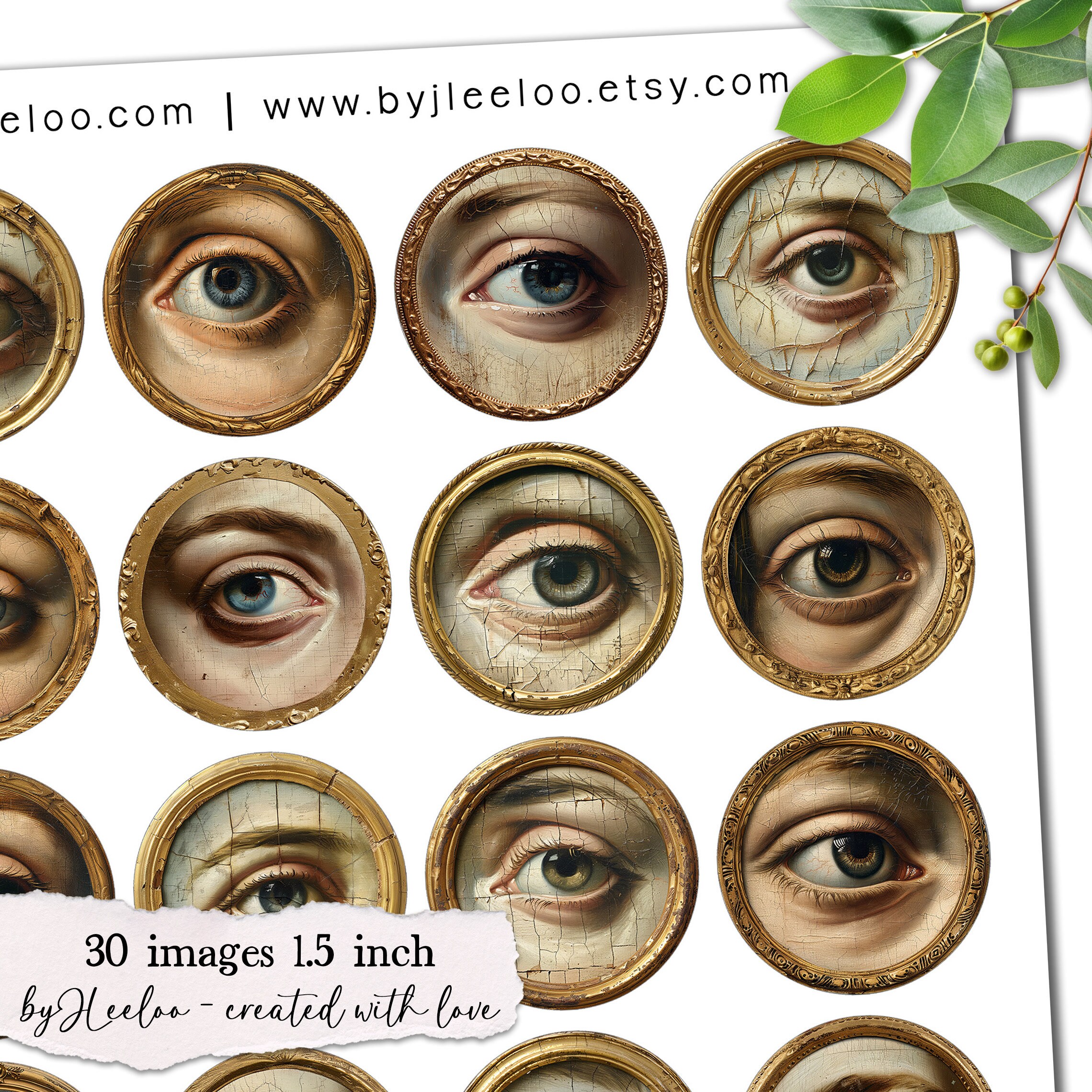 PAST GLANCES 1.5 inch printable illustration | supplies round pendants charm glass cabochon mountings cameo settings | Lover's Eye | tn792