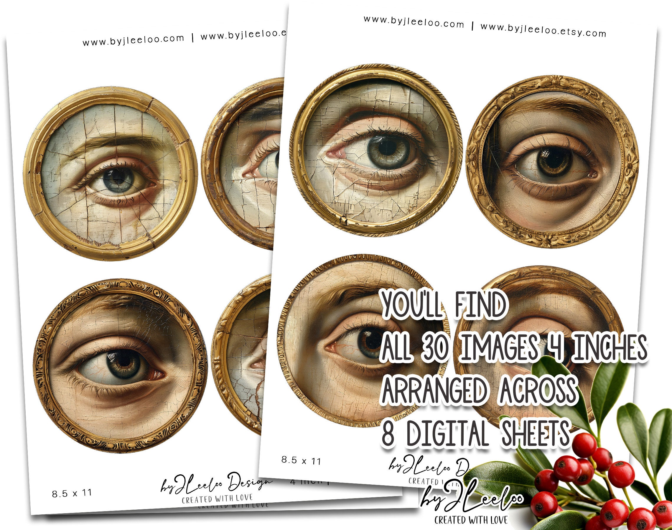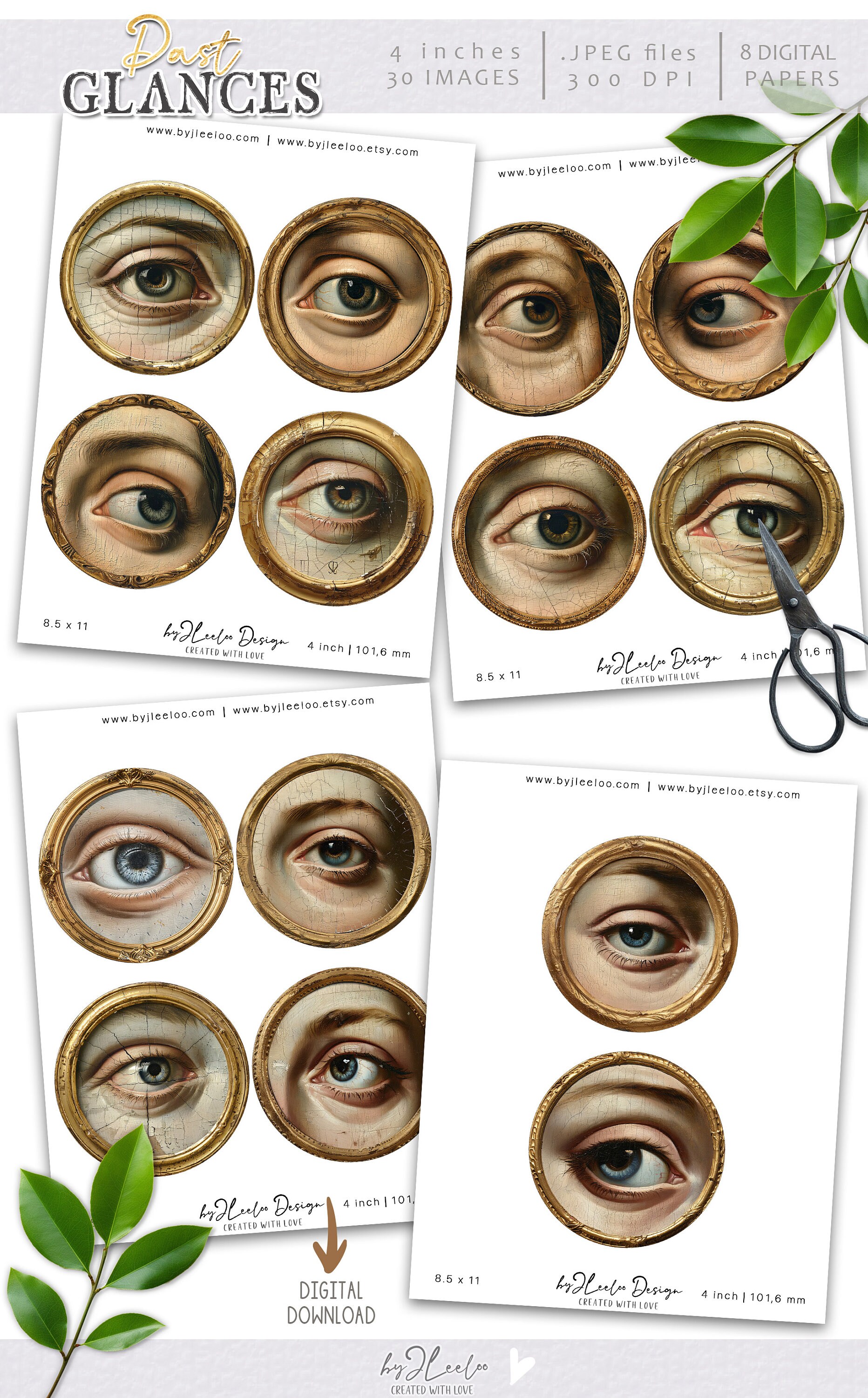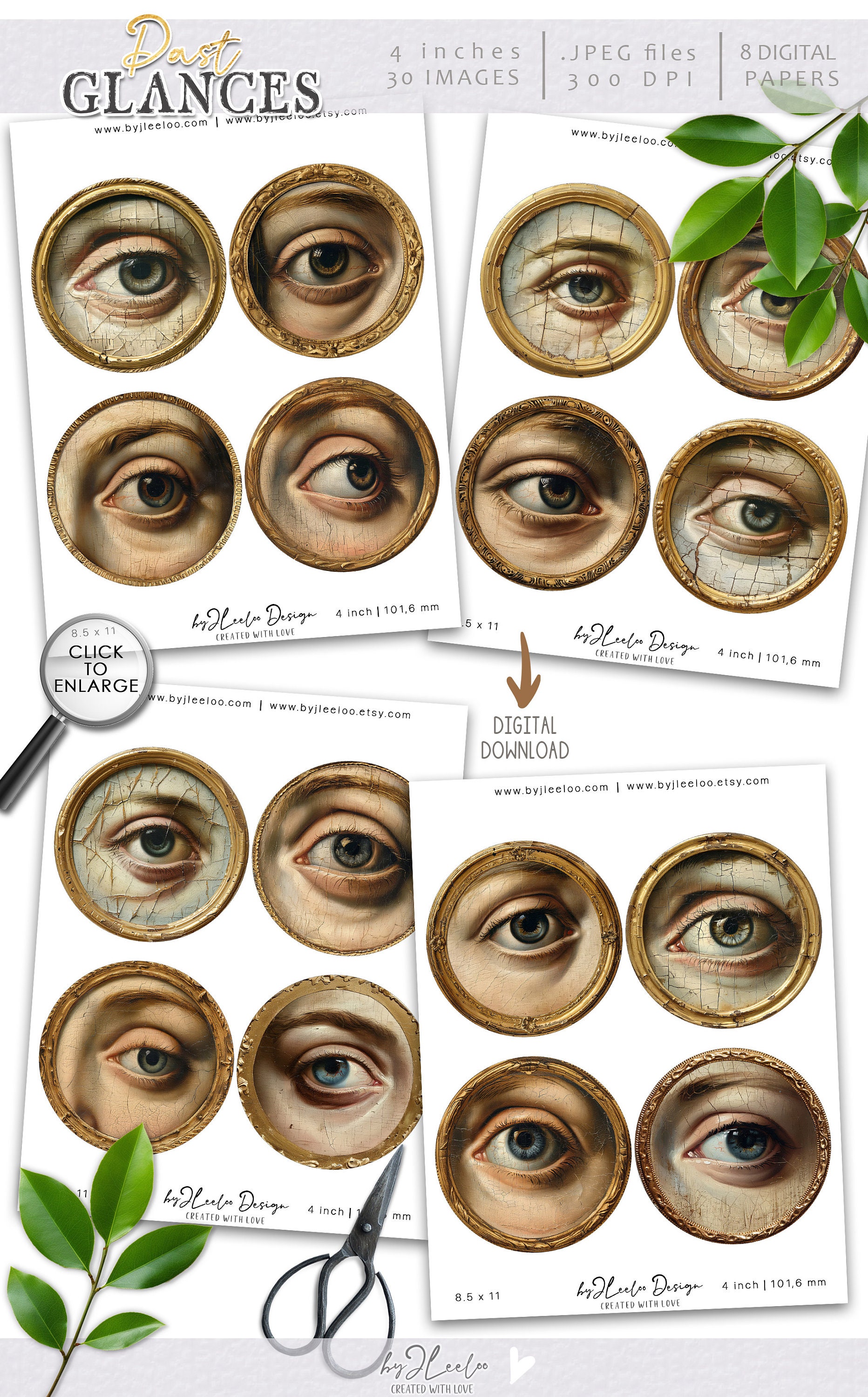 PAST GLANCES 4 inch circle printable | Lover's eye round supplies | Download for coaster decoration mirror magnet and craft labels | tn796