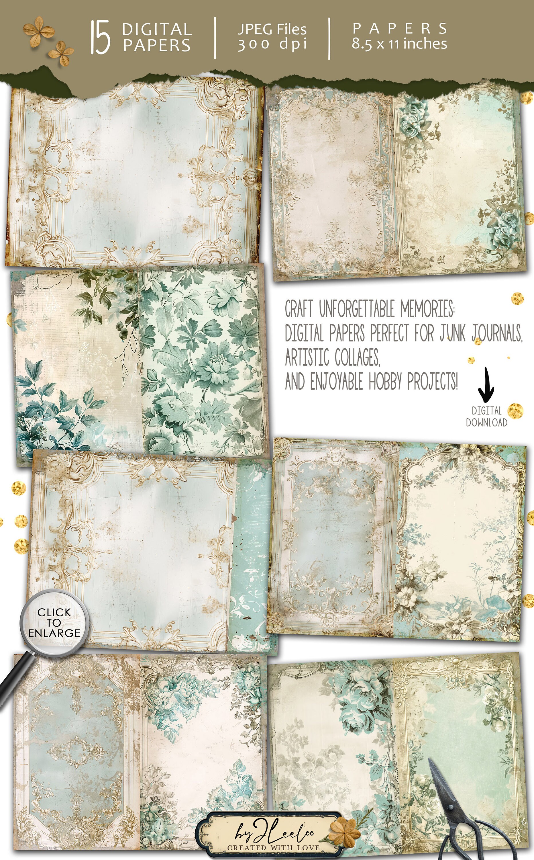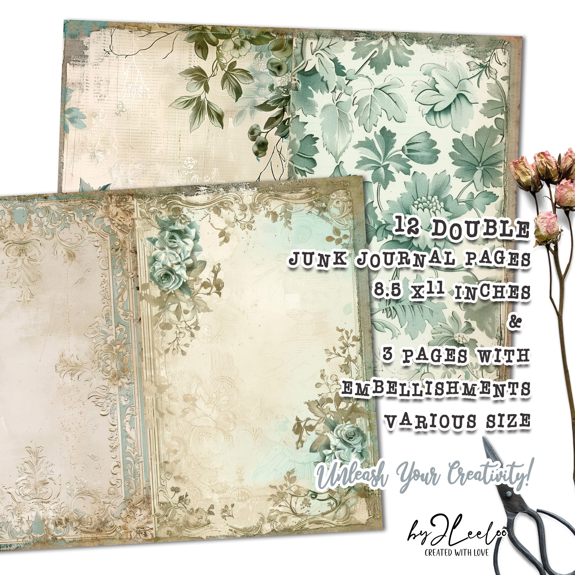 12 junk journal pages | double pages in 8,5 x 11 inch paper