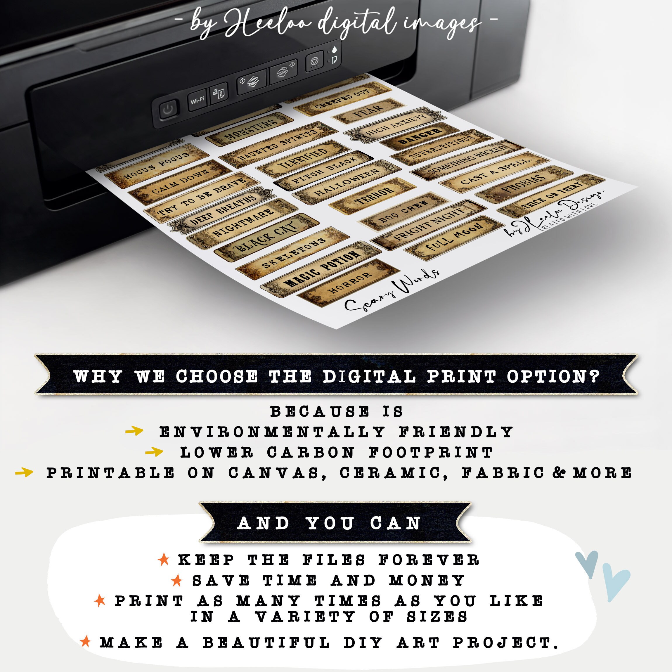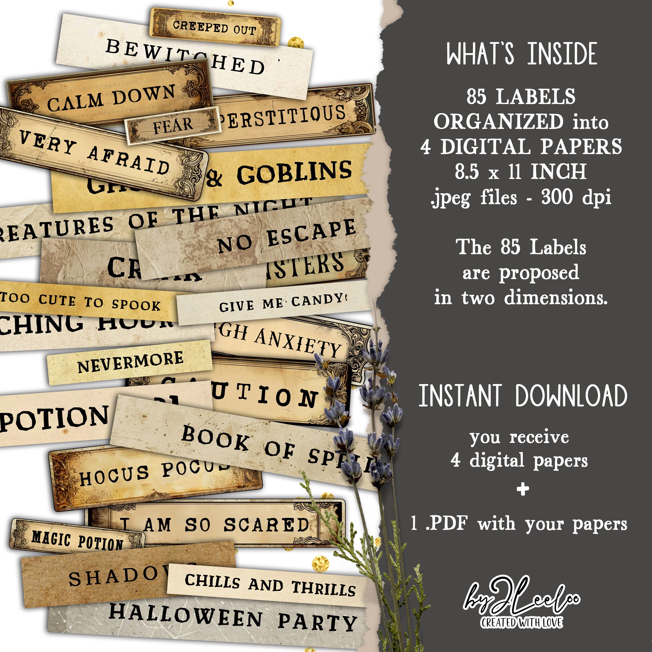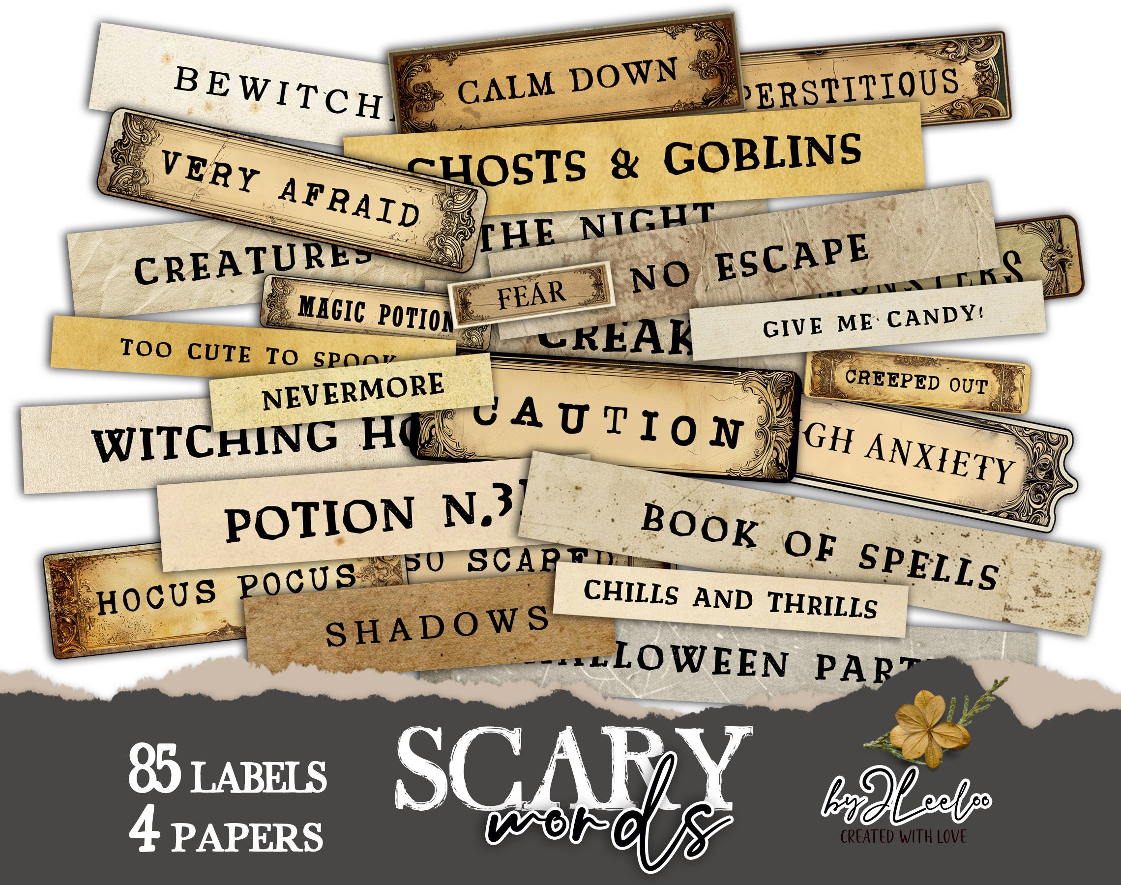SCARY WORDS labels printable halloween | Junk journal gothic Embellishment Ephemera | digital scrapbooking small tags inspirational | tl282
