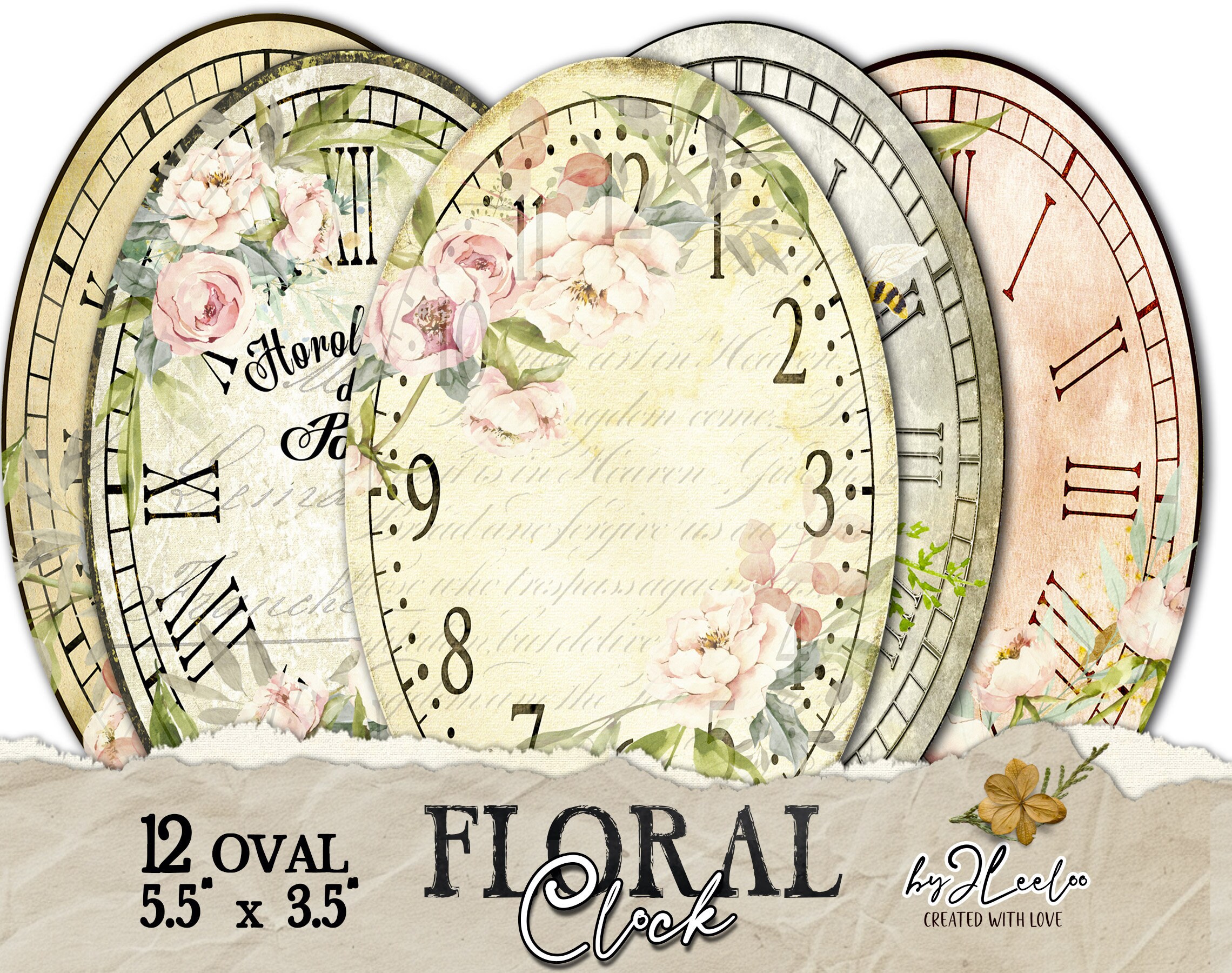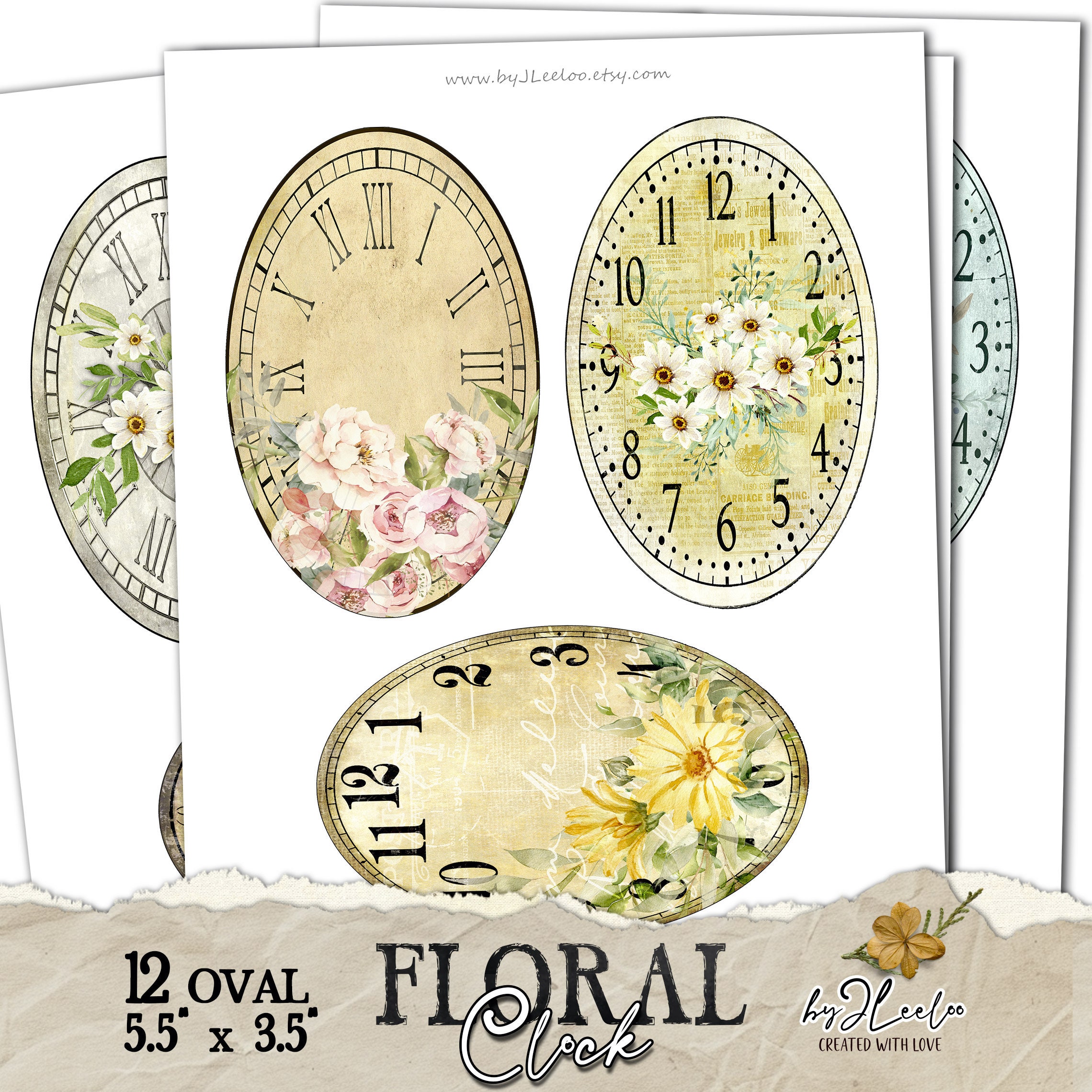 FLORAL CLOCK oval without handles | singles PNG clock faces journal scrapbooking instant download printable | ov146