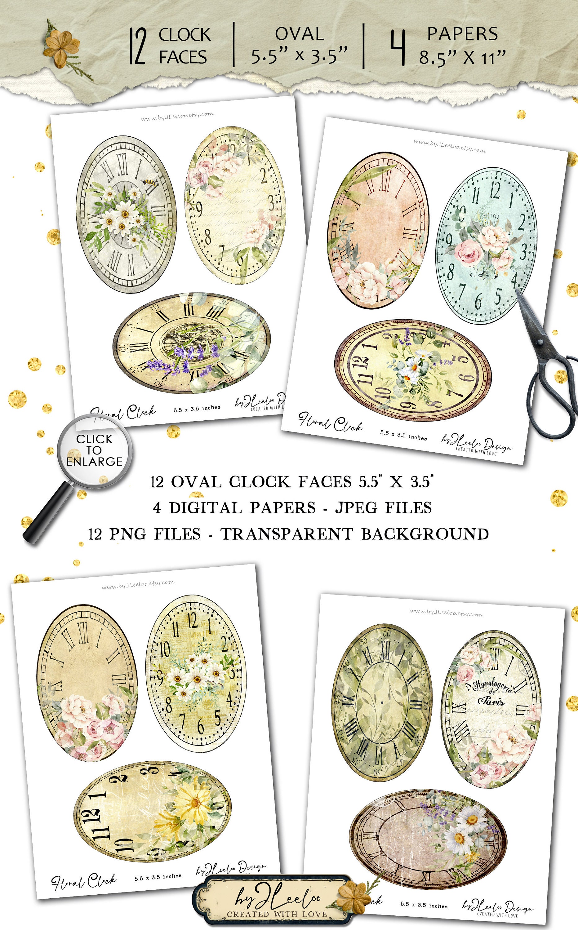 ◾ 12 oval clock faces images in 5.5 x 3.5 inch size without handles so composed: