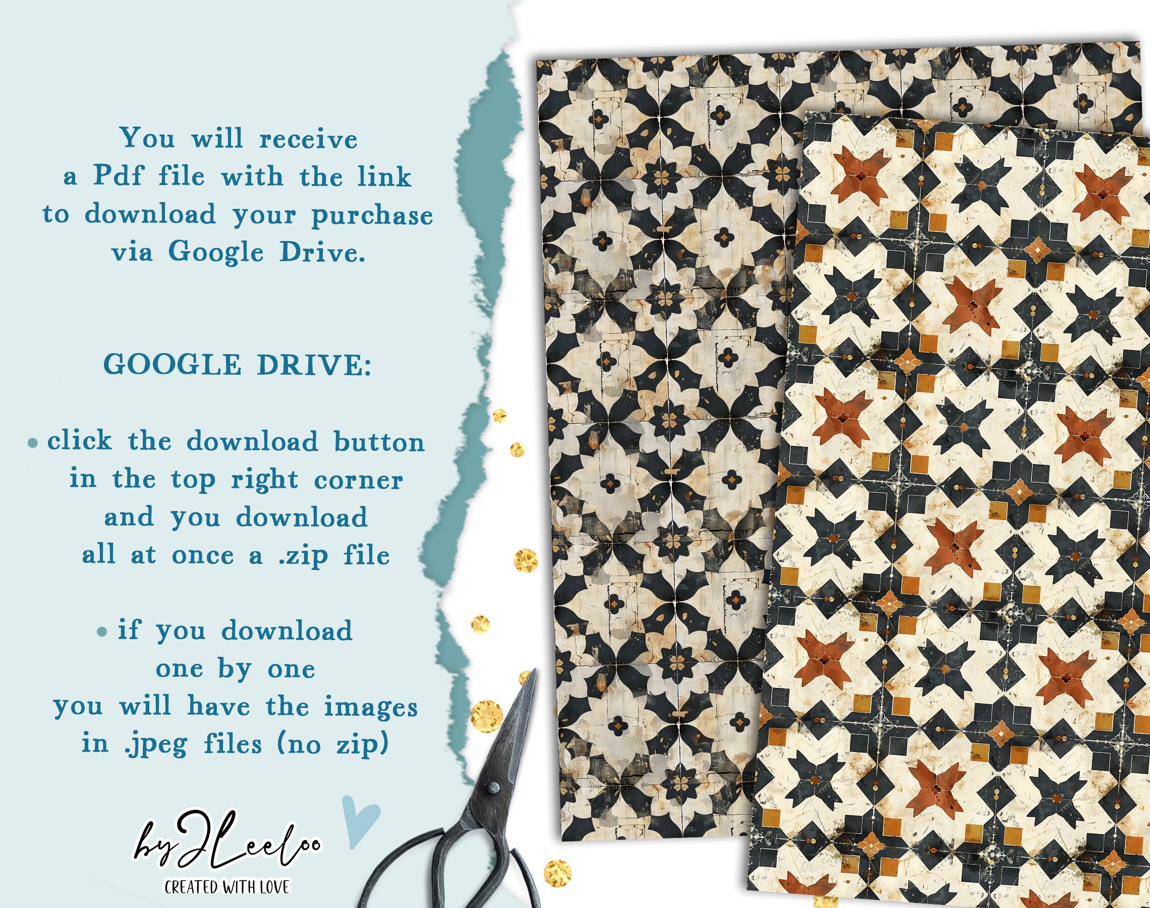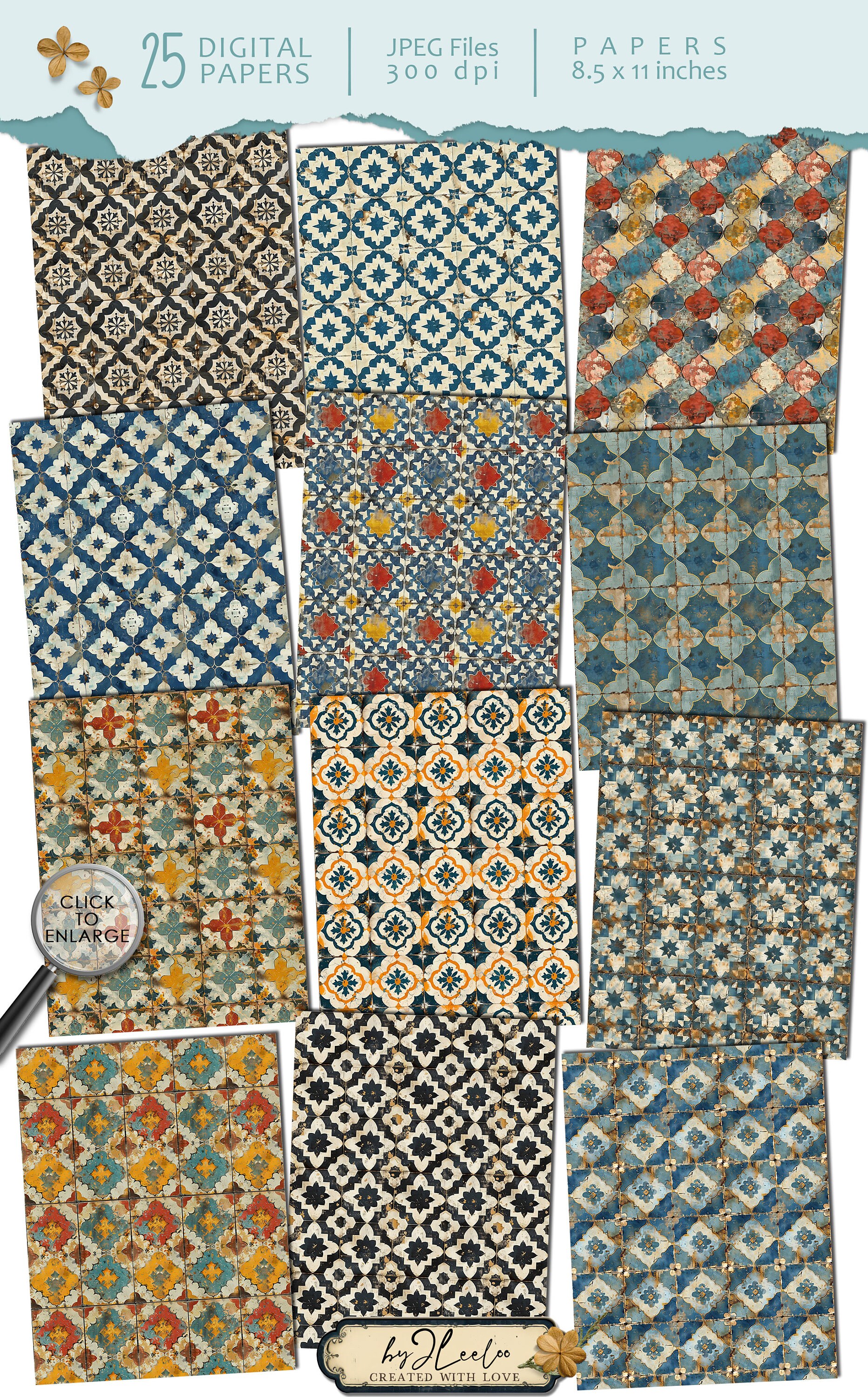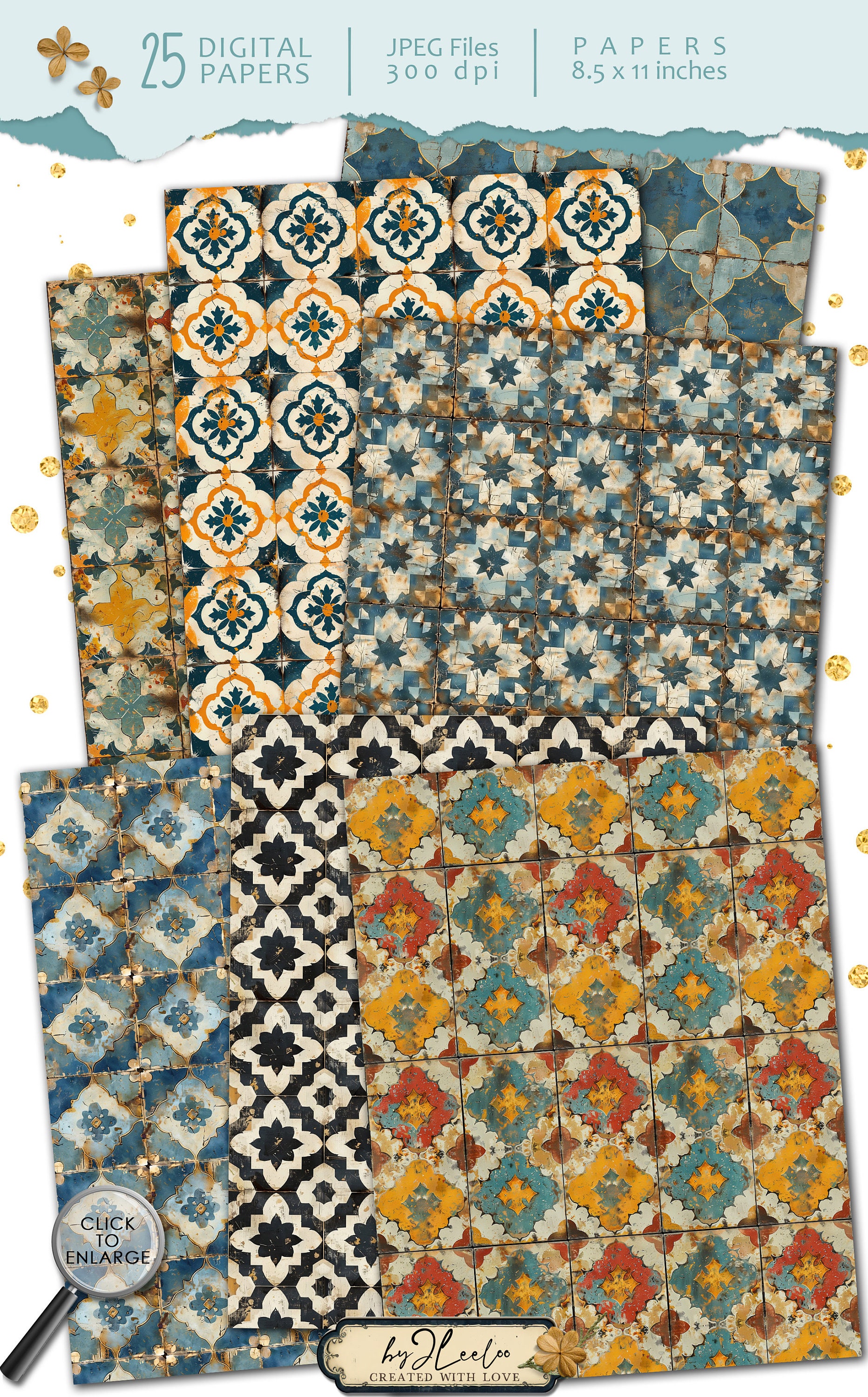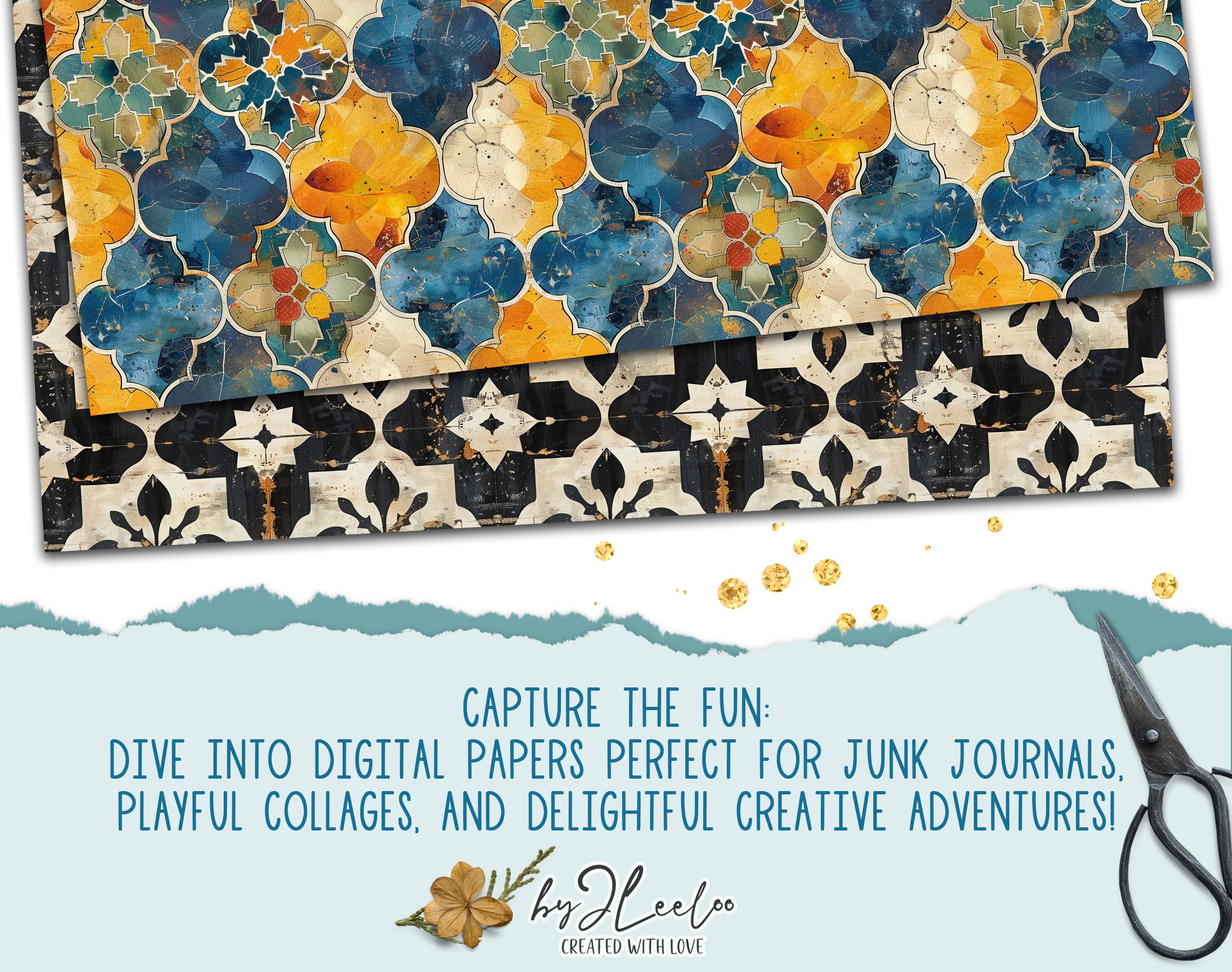 โจ Step into a world of timeless charm with our 'Moroccan Inspired' papers pack, featuring a mesmerizing array of digital papers in vintage-inspired patterns and hues! Dive into 25 captivating designs, each exuding the allure of aged textures and vibrant colors. Let yourself be transported by the intricate patterns and soft, muted tones, evoking the essence of Moroccan heritage and culture. Perfect for adding a touch of elegance to your T-shirts, Mugs, Bags, Cushions, Wall Art, Websites, Social Media, Invitations, Journalling, Business and Greeting Cards, Sublimation, Heat Transfer, Phone Cases, or any other creative endeavor that speaks to your heart! ๐ซ