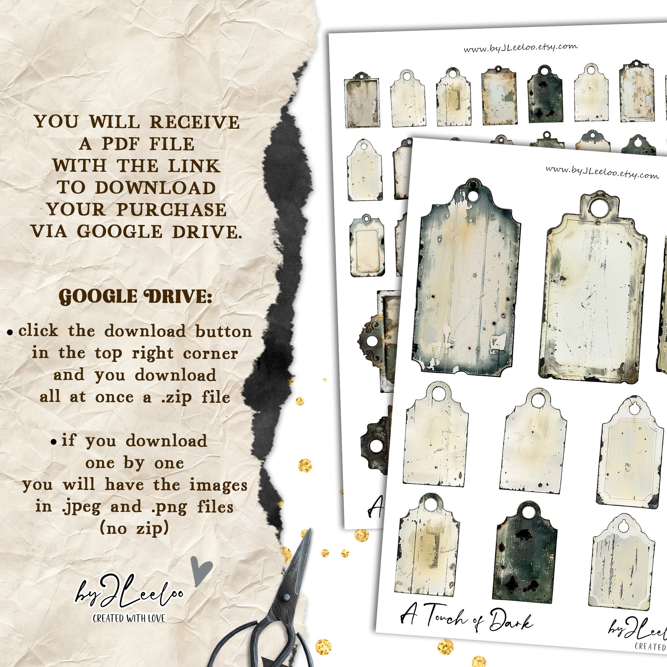 A TOUCH of DARK vintage blank tags 110 PNG | 10 papers victorian supplies grunge labels ephemera junk journal digital rusticcore | tl286