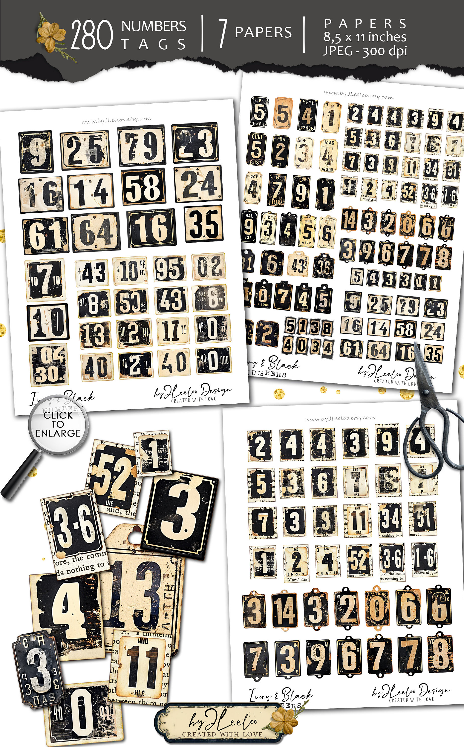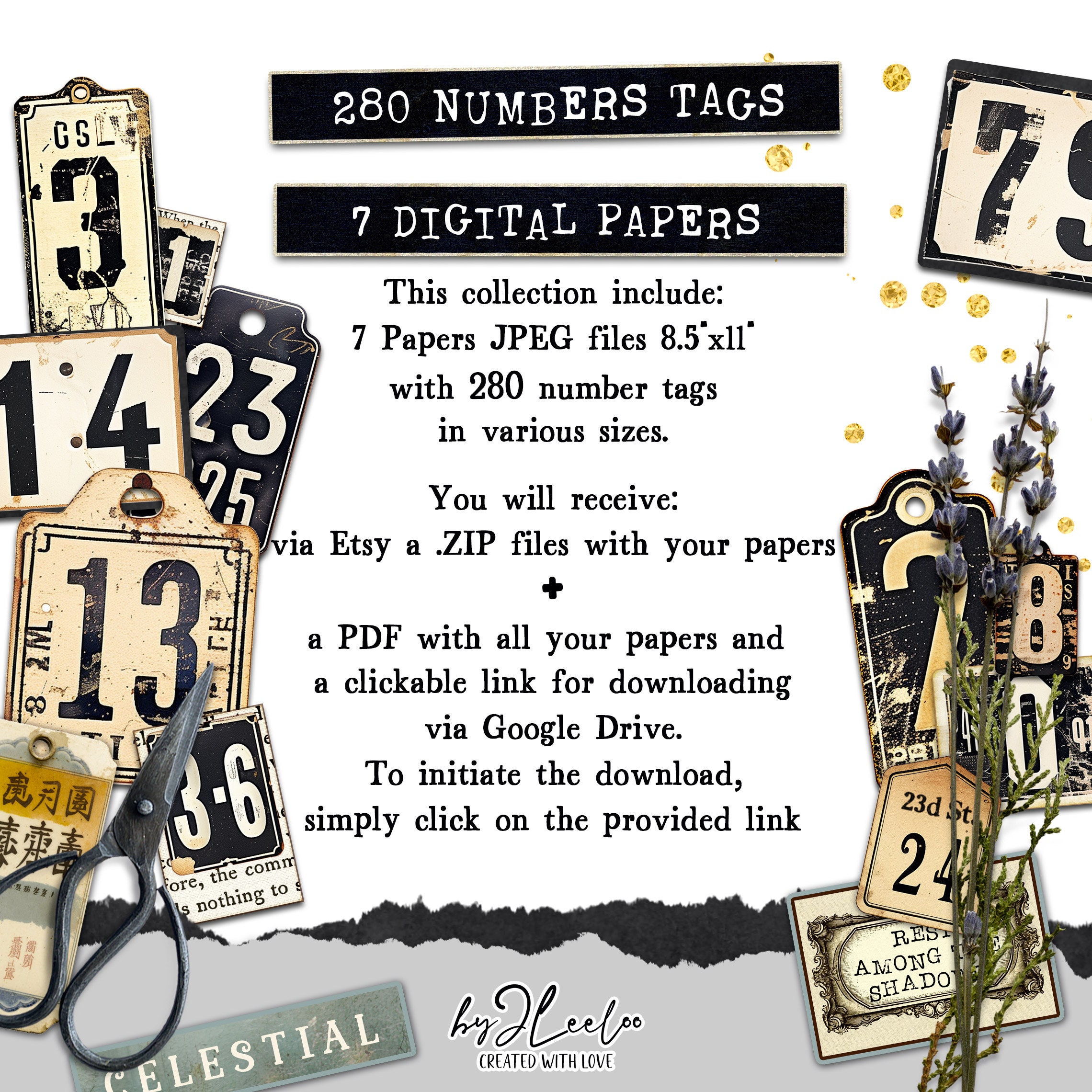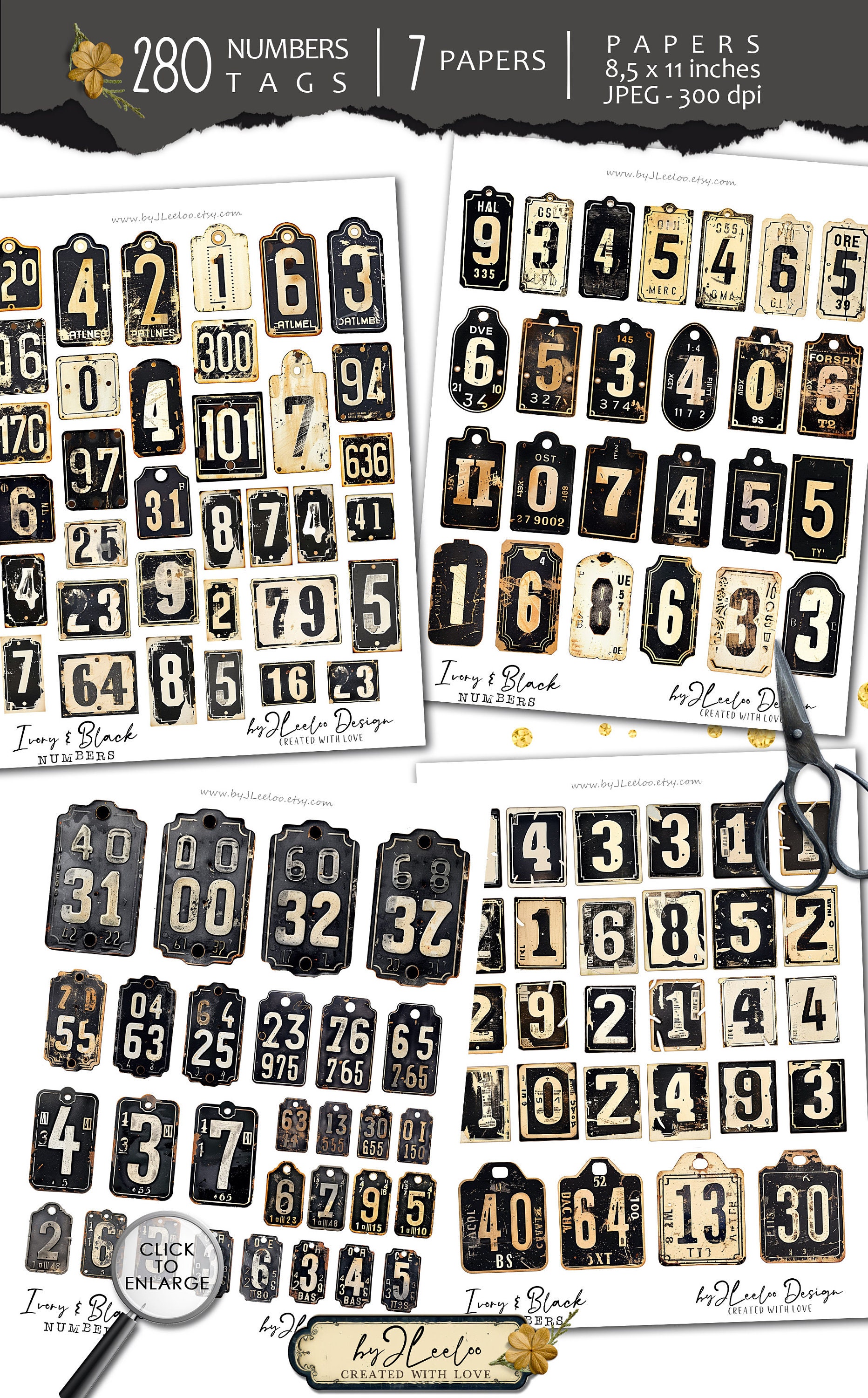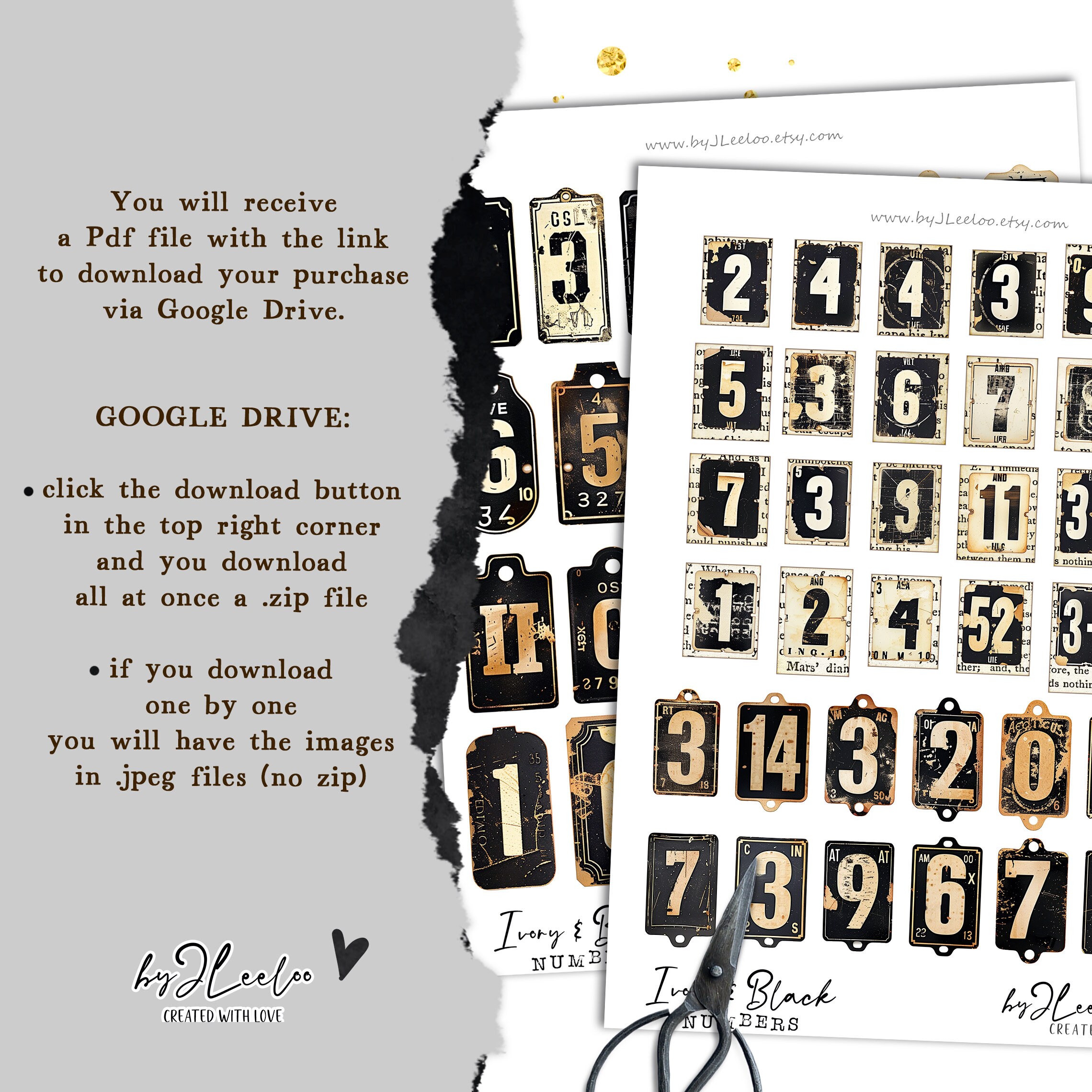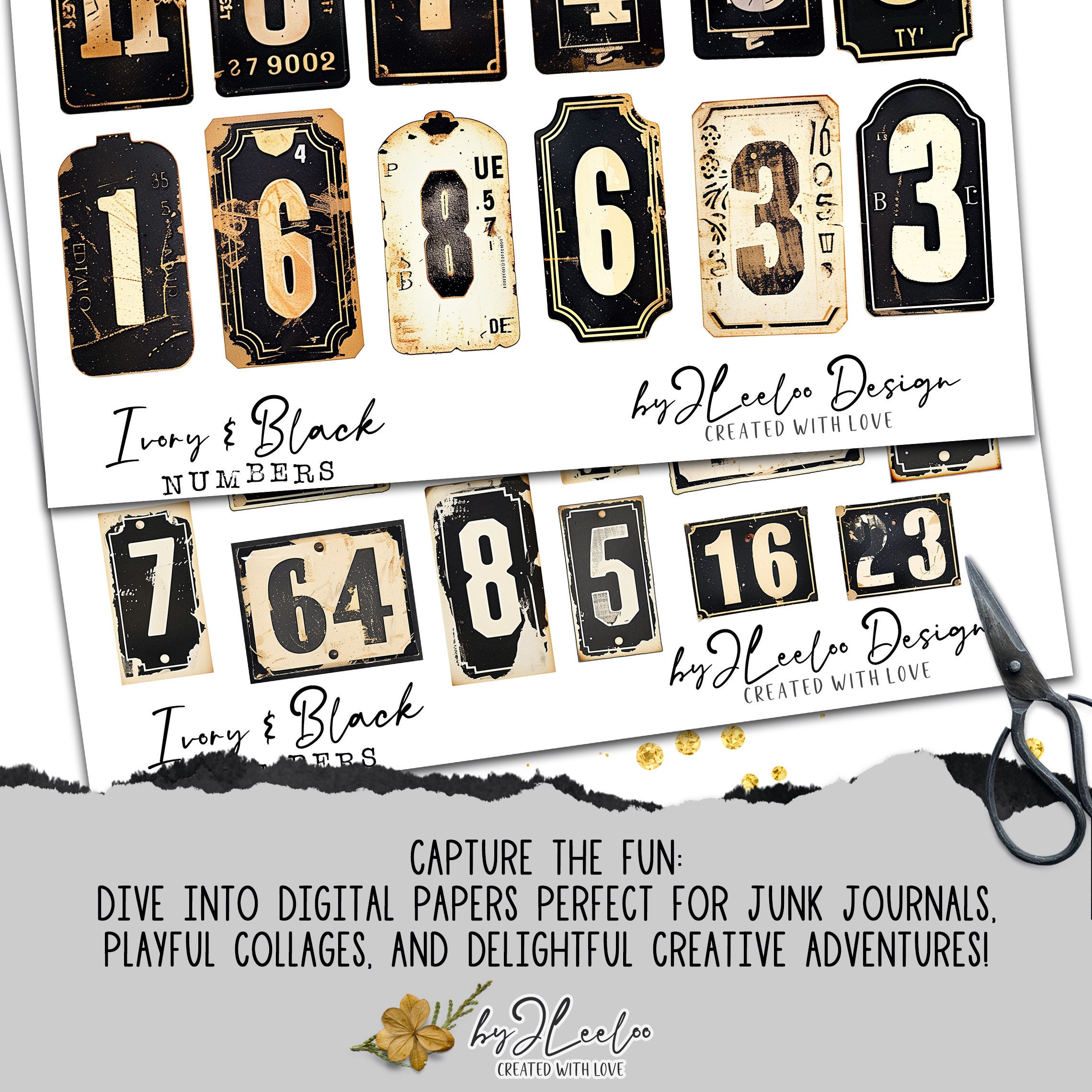 NUMBERS BLACK and IVORY tag printable industrial supplies | vintage ephemera junk journal | neutral digital collage sheet | tl285