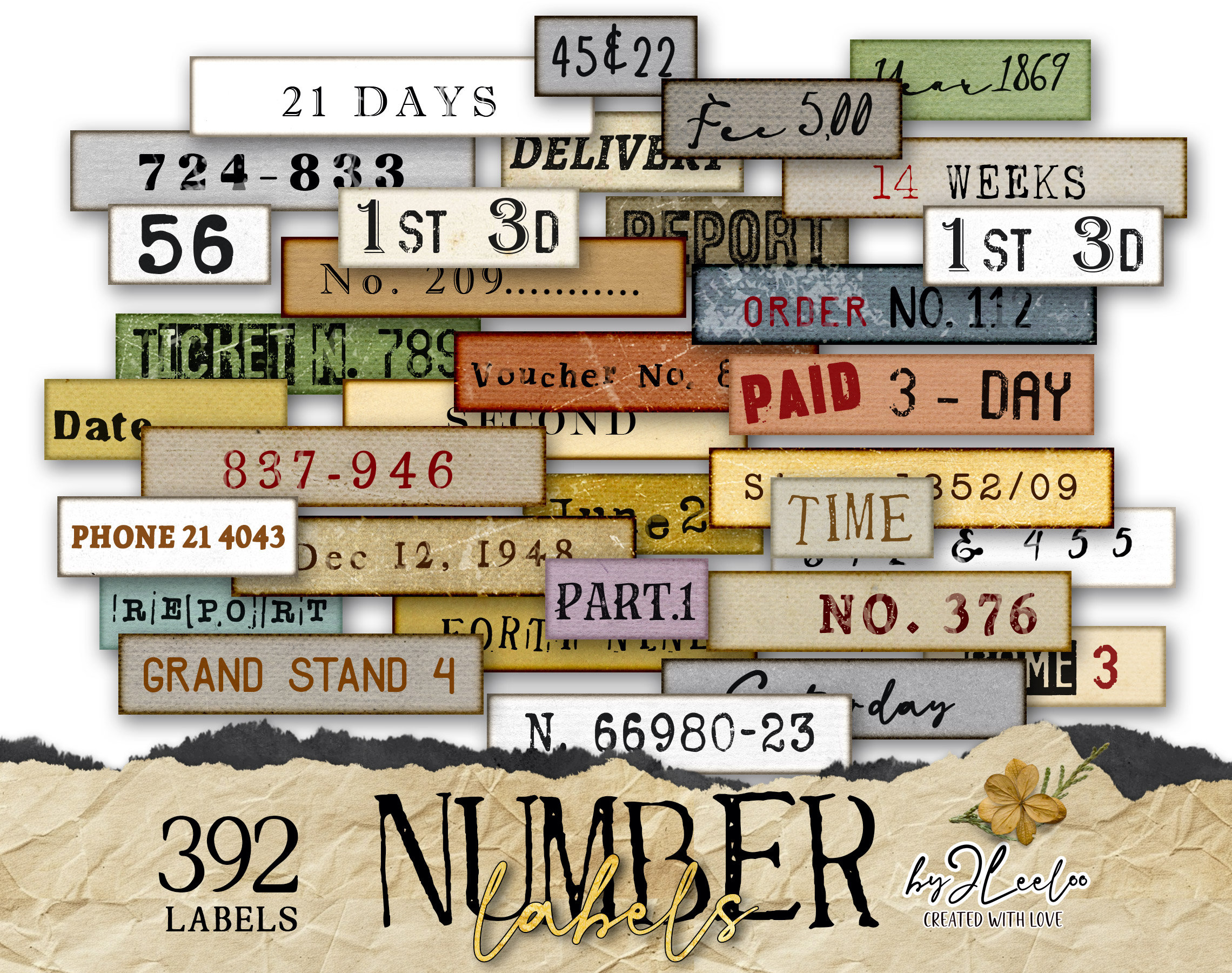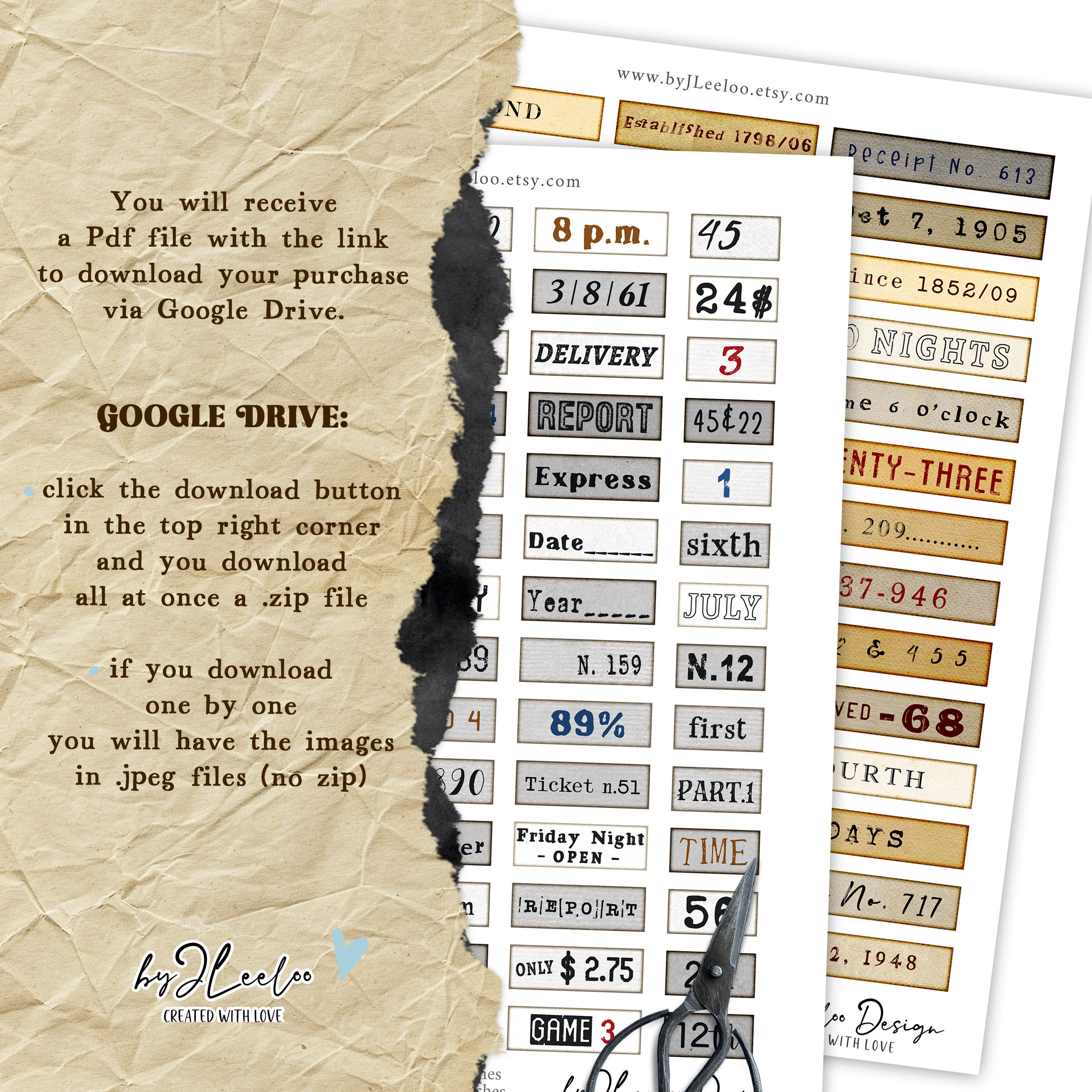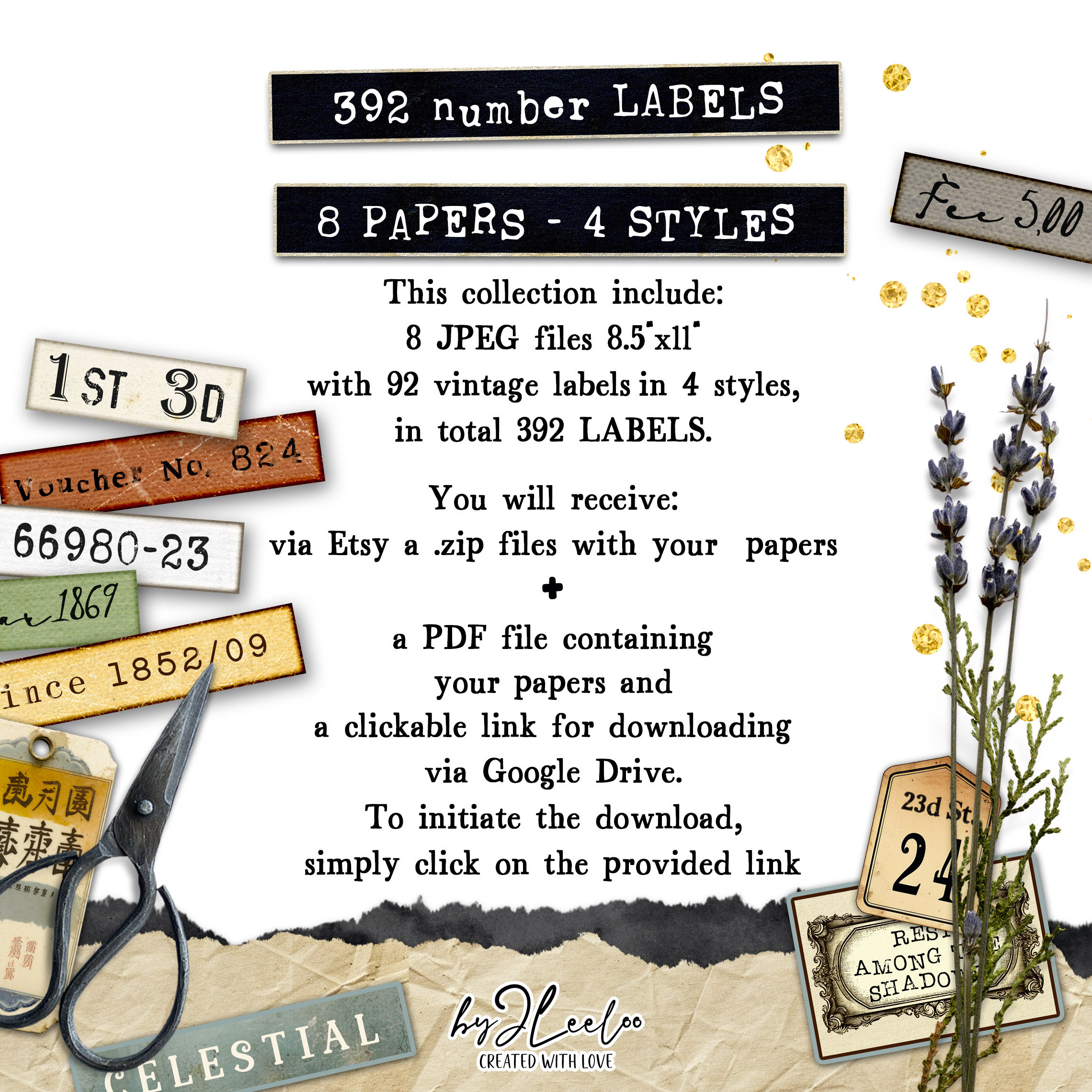 NUMBER LABELS text label printable word | grungy masculine vintage ephemera junk journal | scrapbook diary instant download | tl292