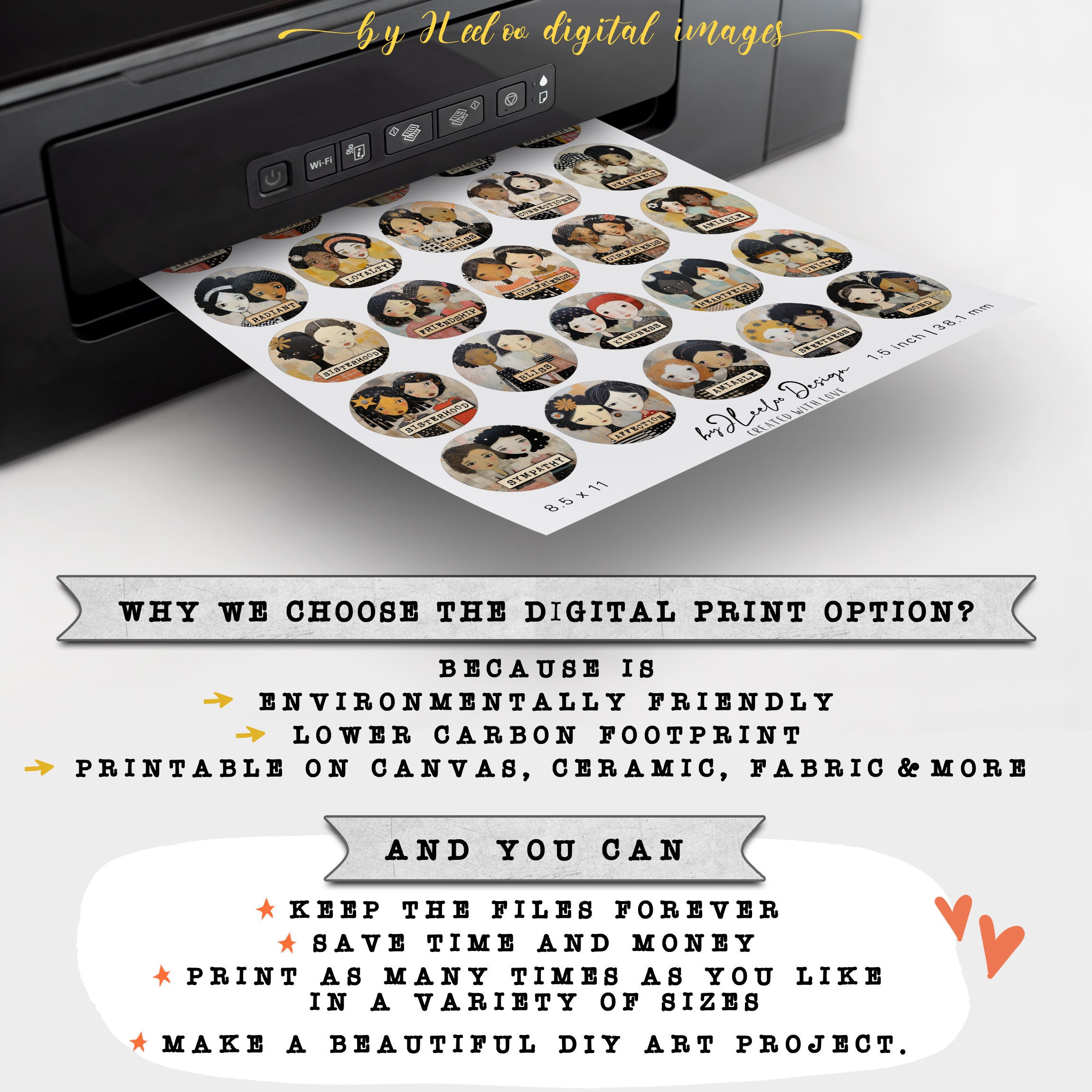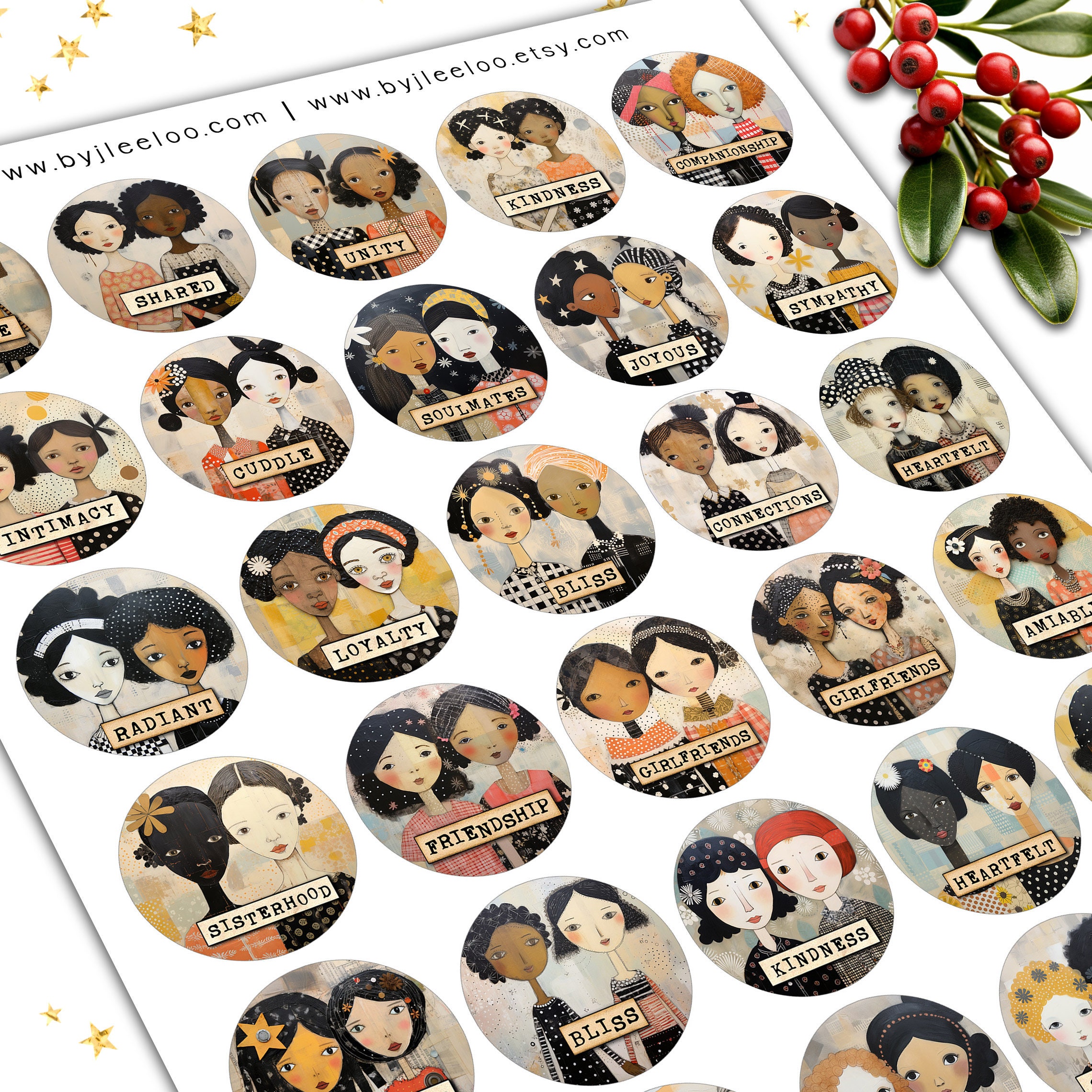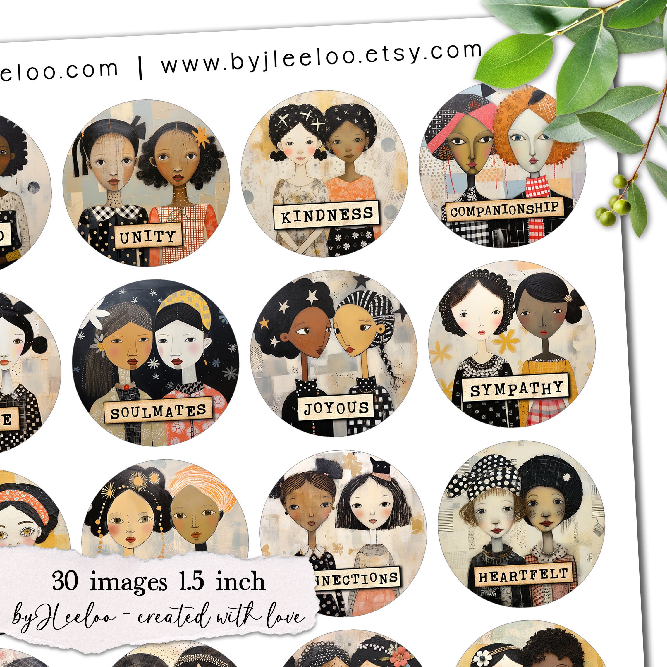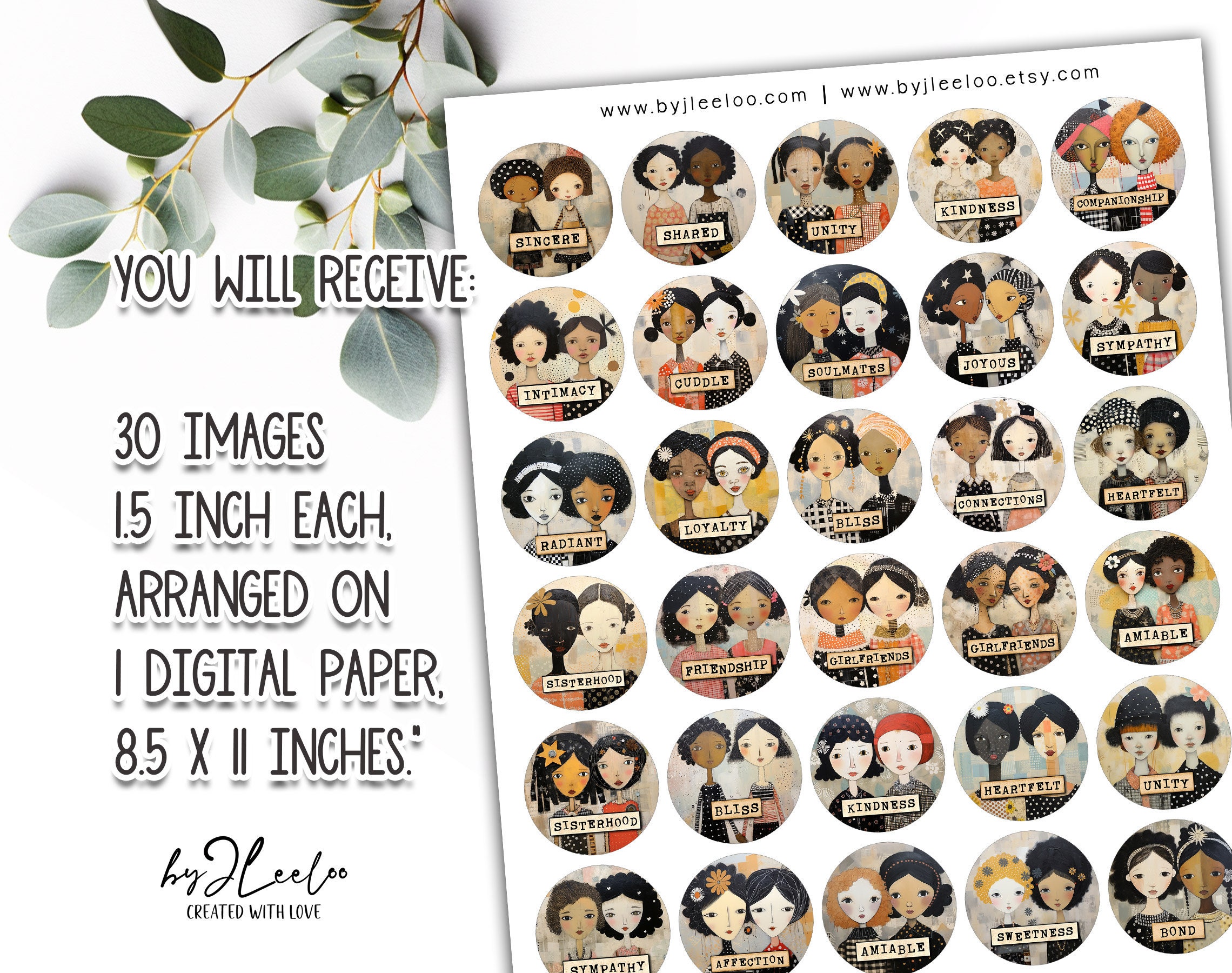 BEST GIRLFRIENDS 1.5 inch printable illustration | Gift for friend supplies round pendants sticker charm mirror magnet altered art | tn803
