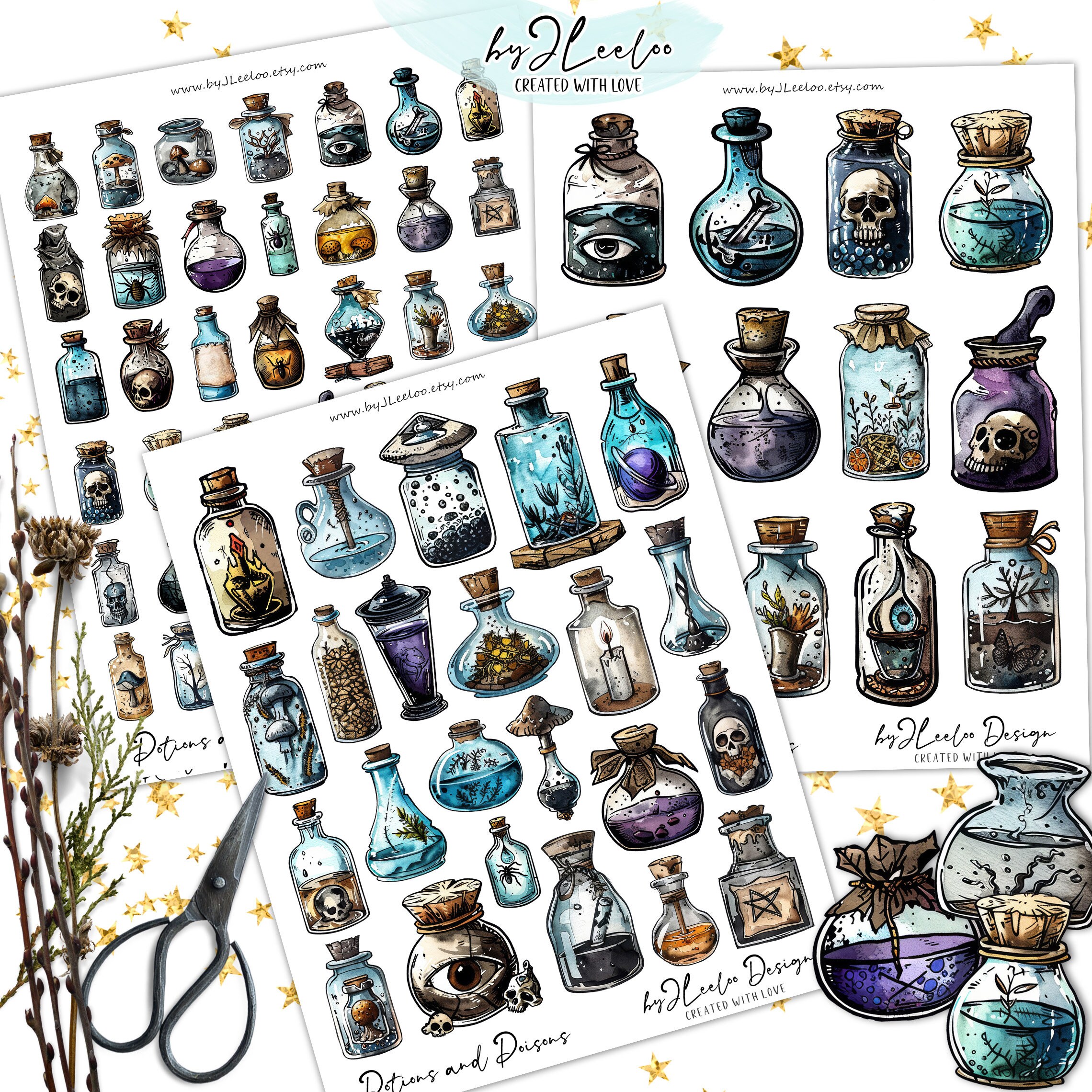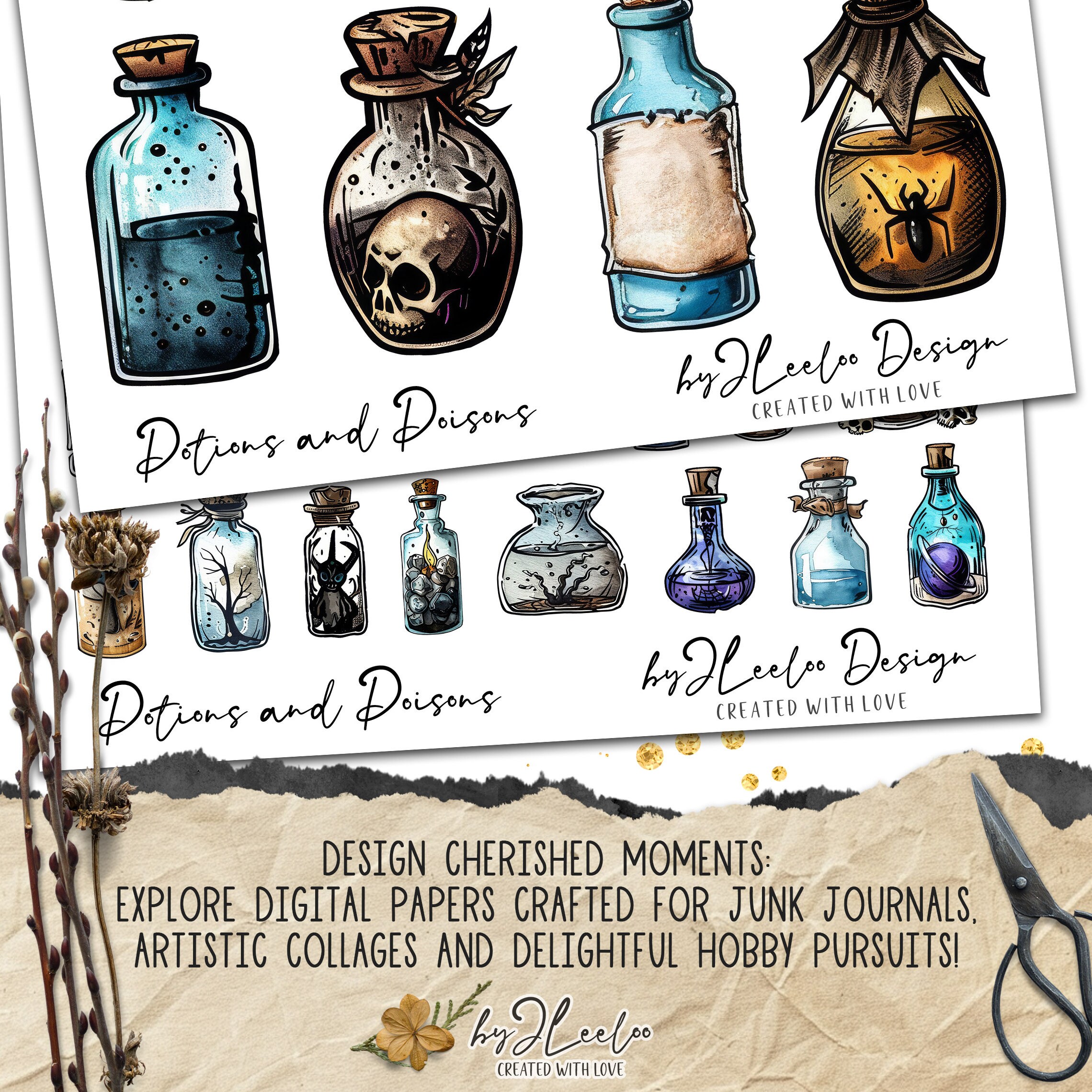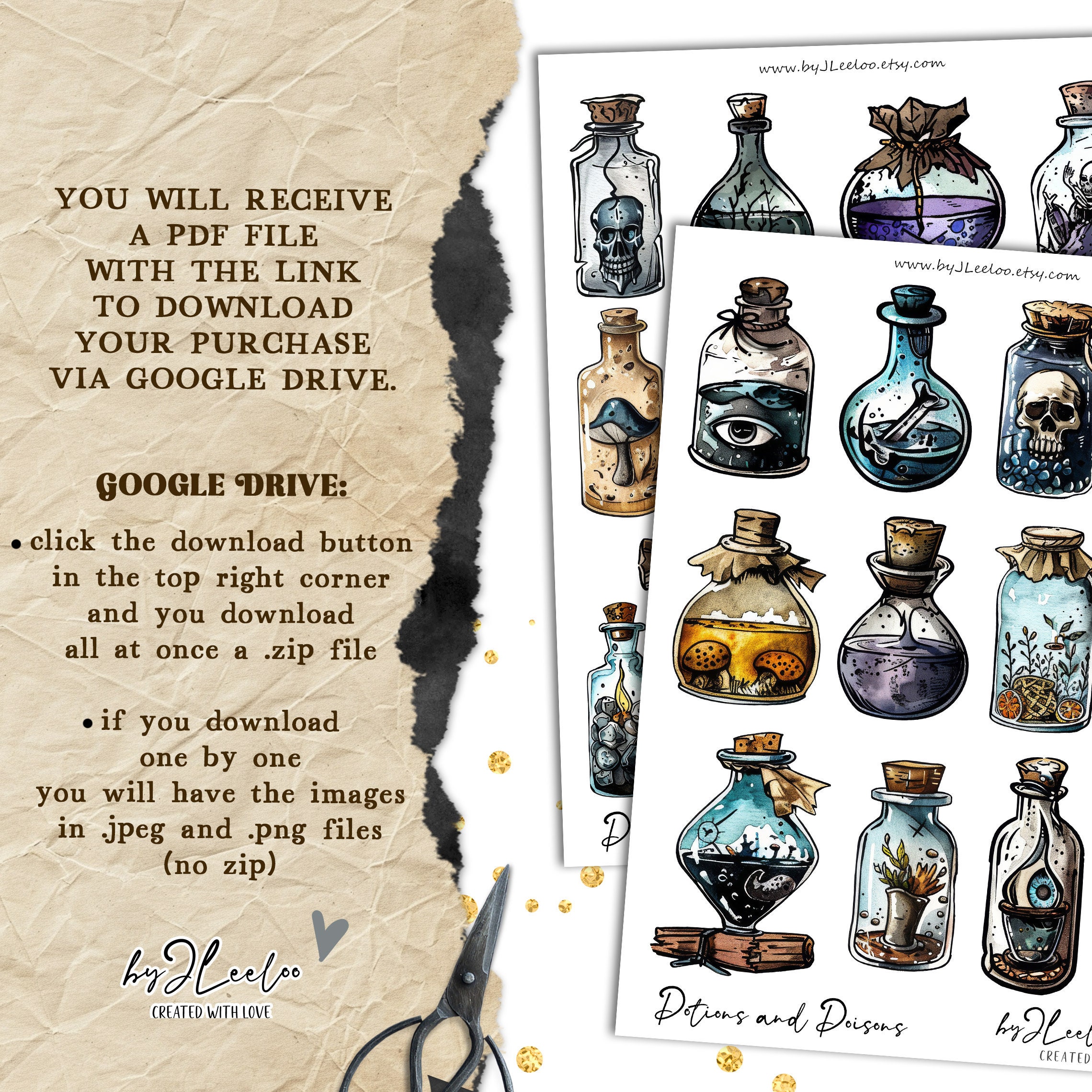 POTIONS and POISONS sticker clipart vintage supplies | PNG fussy cuts grungy printable junk journal | Halloween digital decoration | cl172