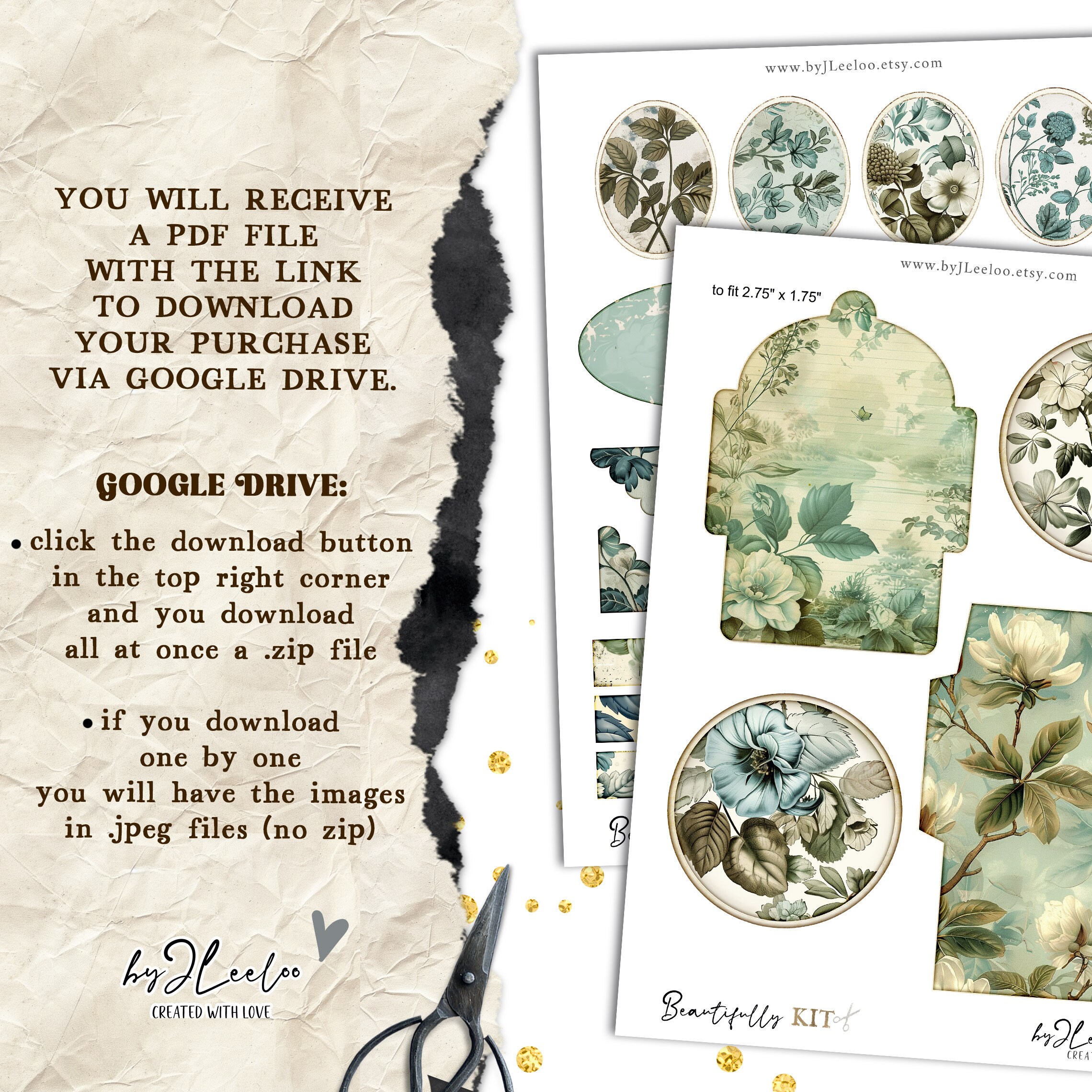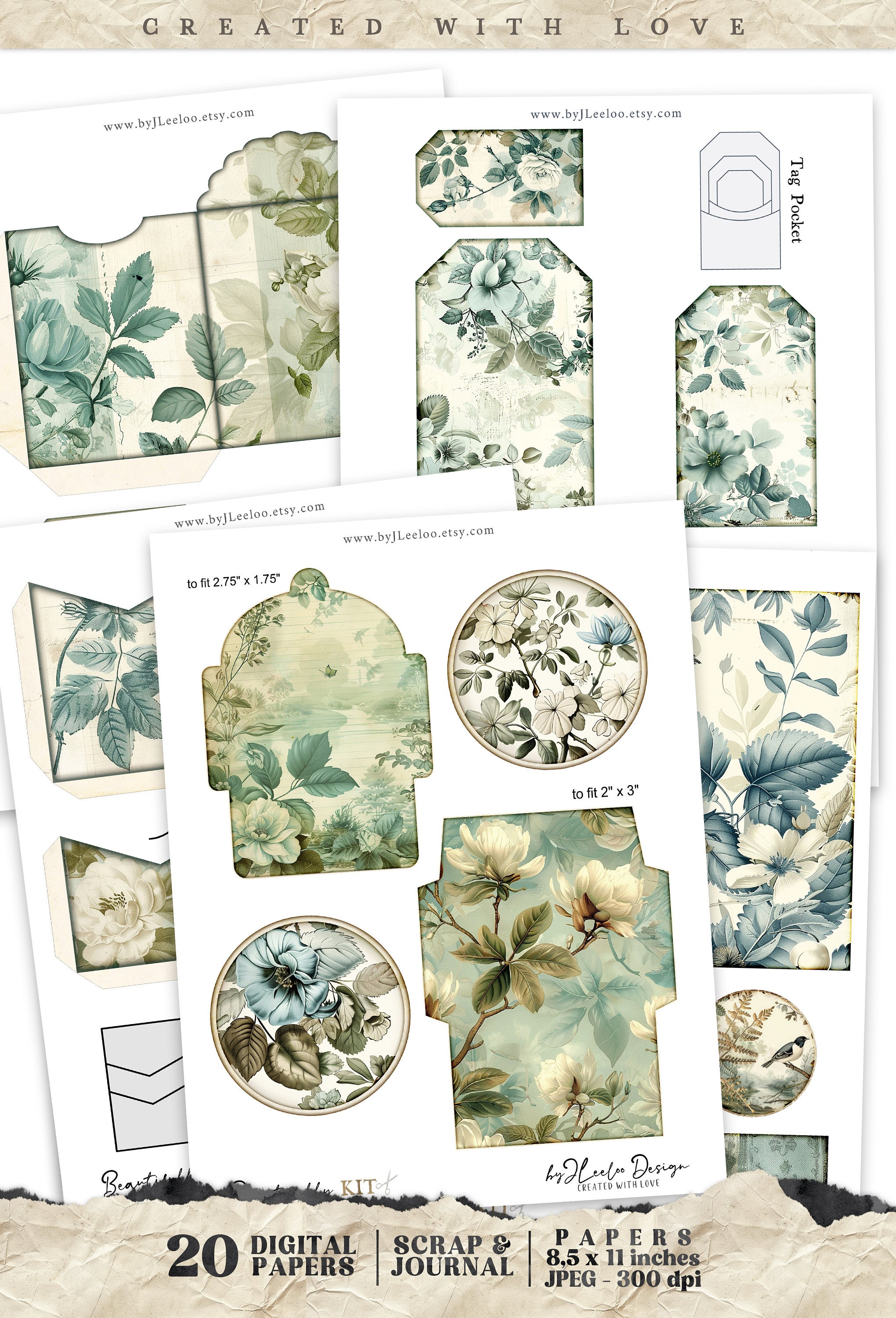 BEAUTIFULLY junk journal KIT printable | Botanical scrapbook label tag pocket ephemera supplies | Fussy cut garden greenery journal | pp791