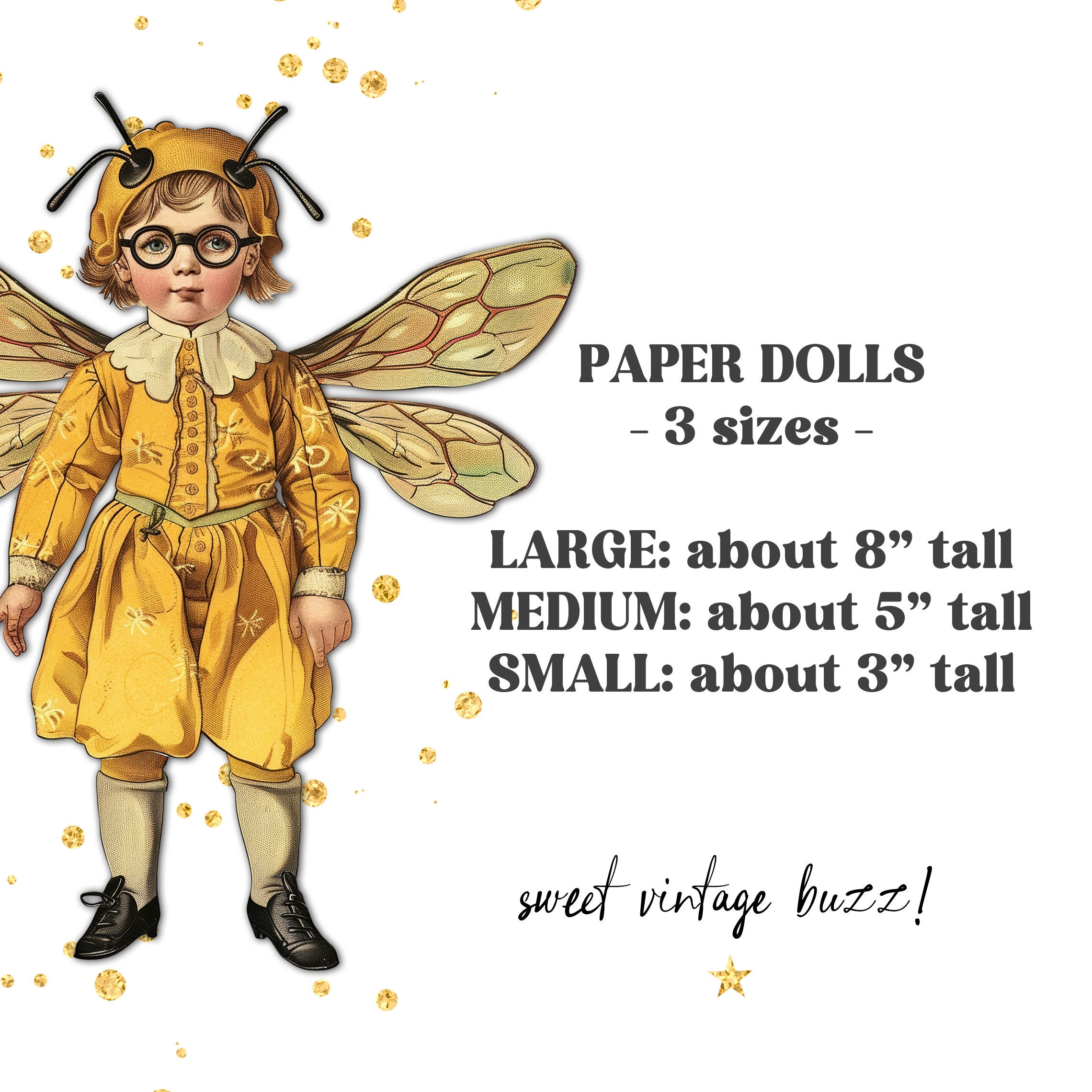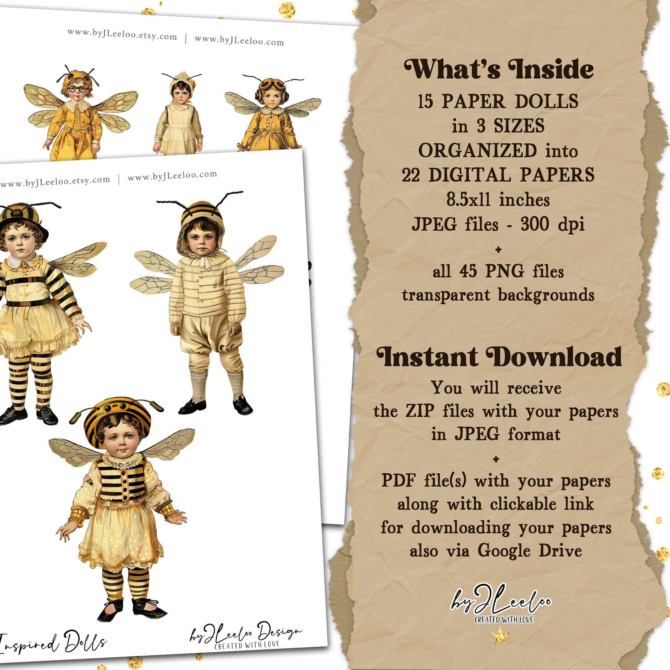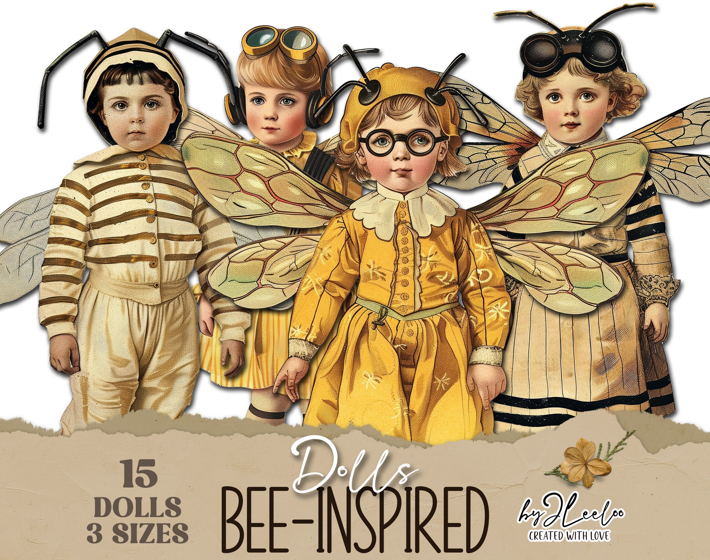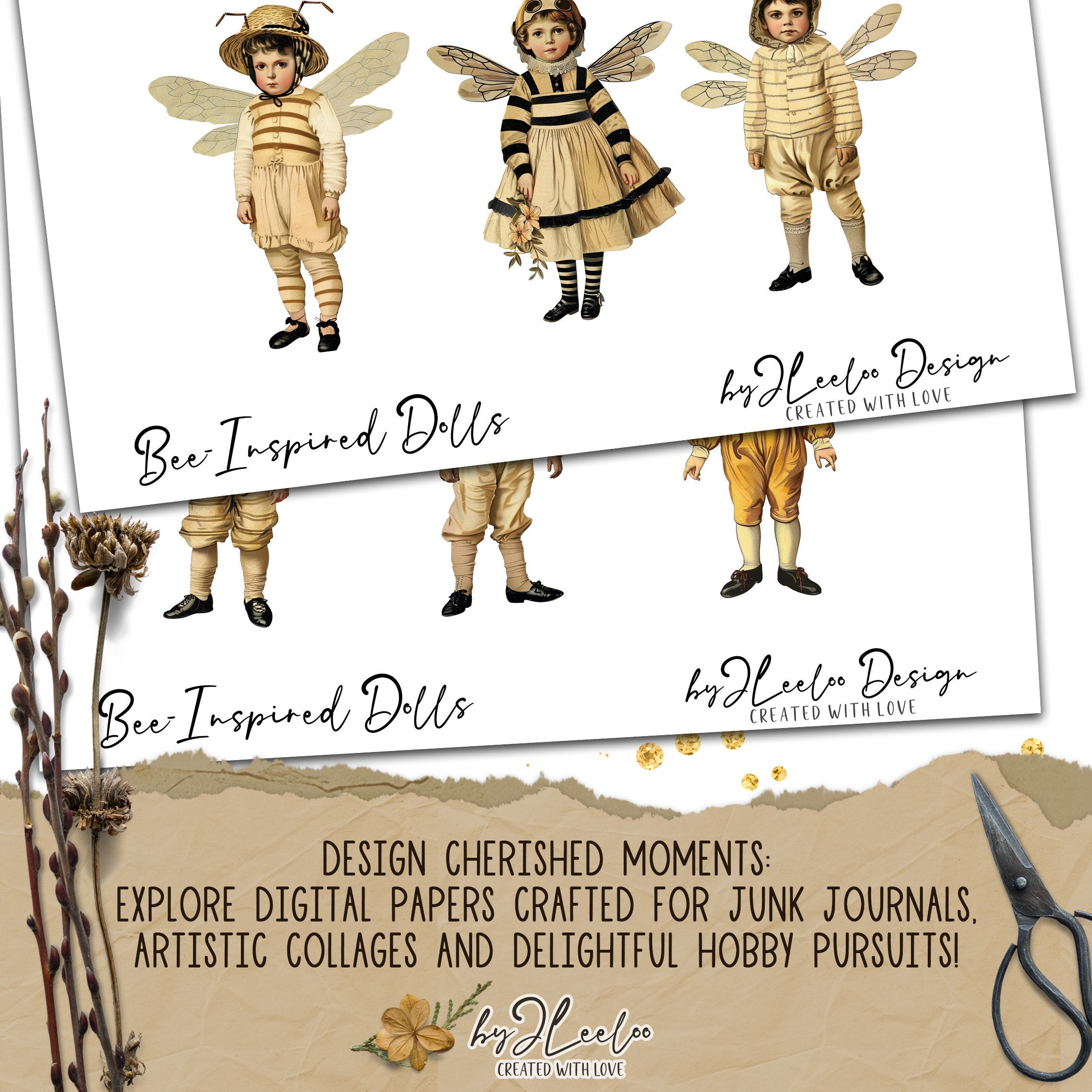 BEE-INSPIRED DOLLS paper doll printable junk journal cut off | Paper Dolls journaling supplies Hand-drawn | mini fussy cut doll digital | pp808