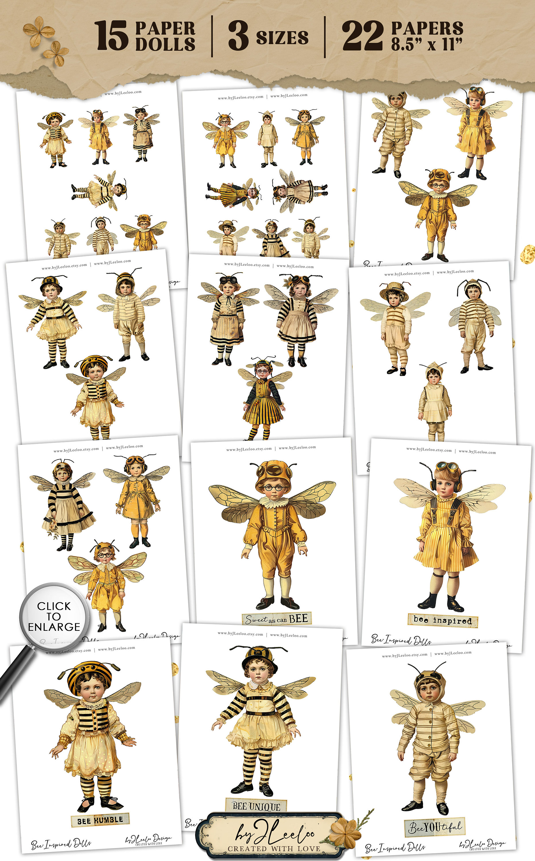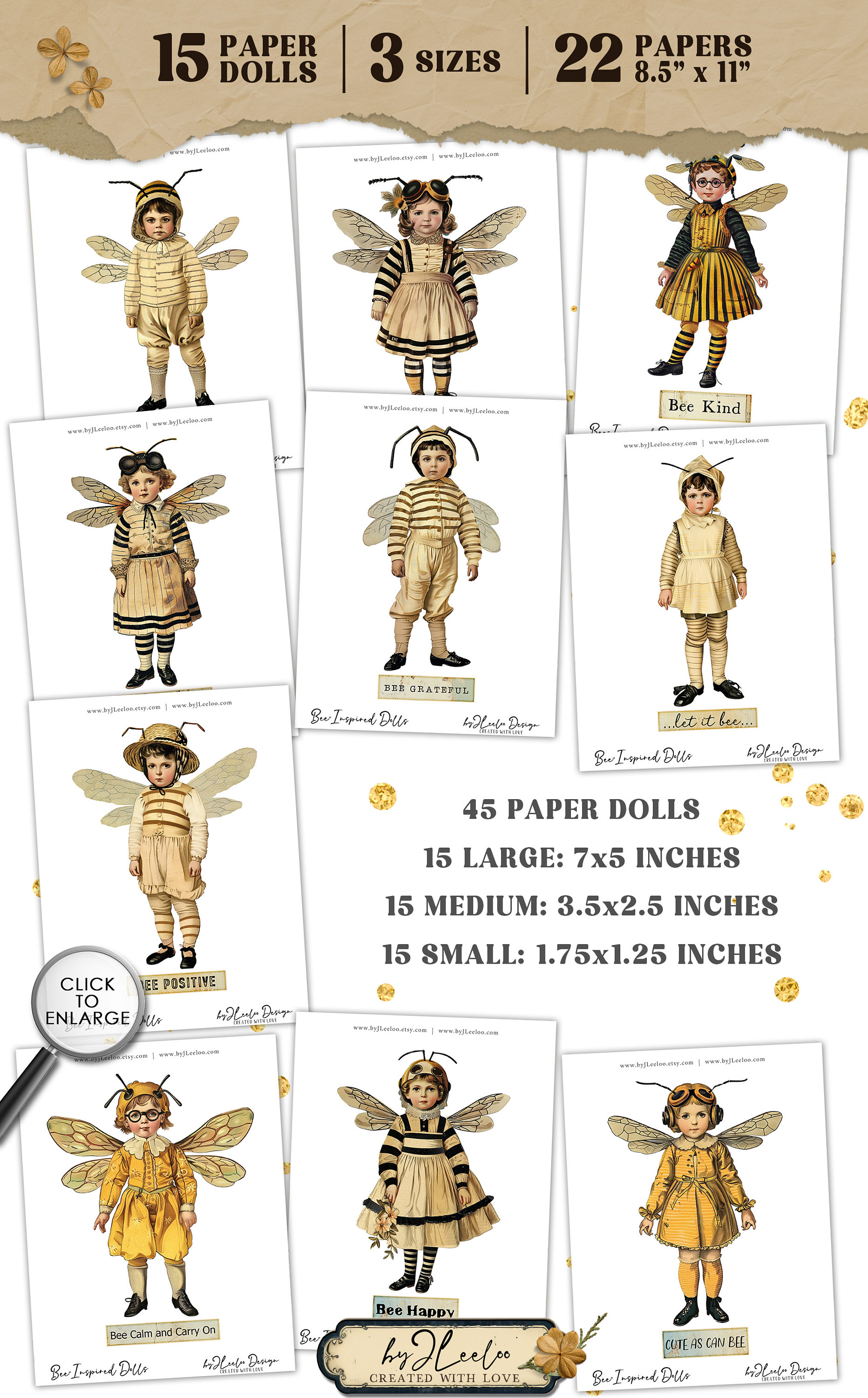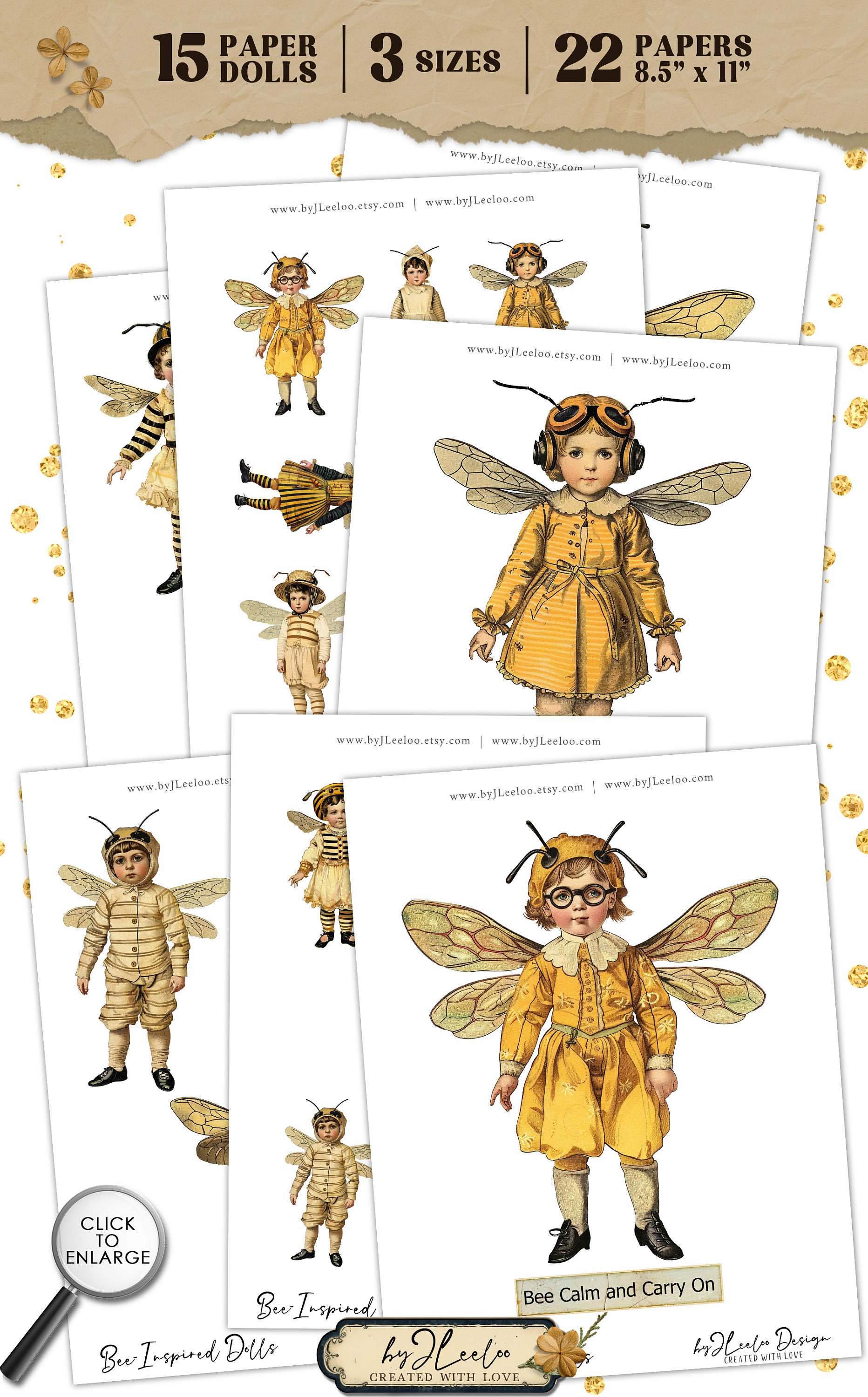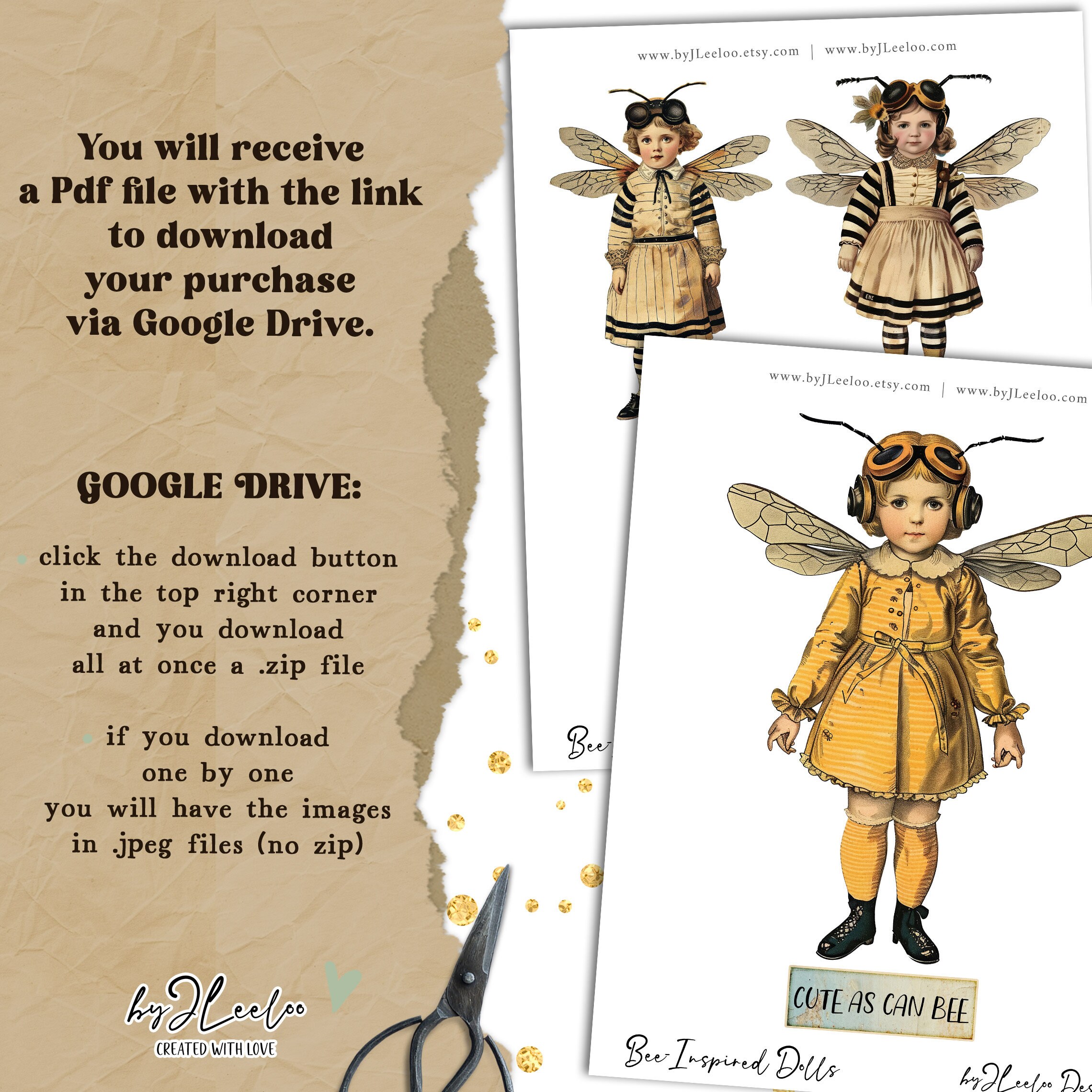 BEE-INSPIRED DOLLS paper doll printable junk journal cut off | Paper Dolls journaling supplies Hand-drawn | mini fussy cut doll digital | pp808