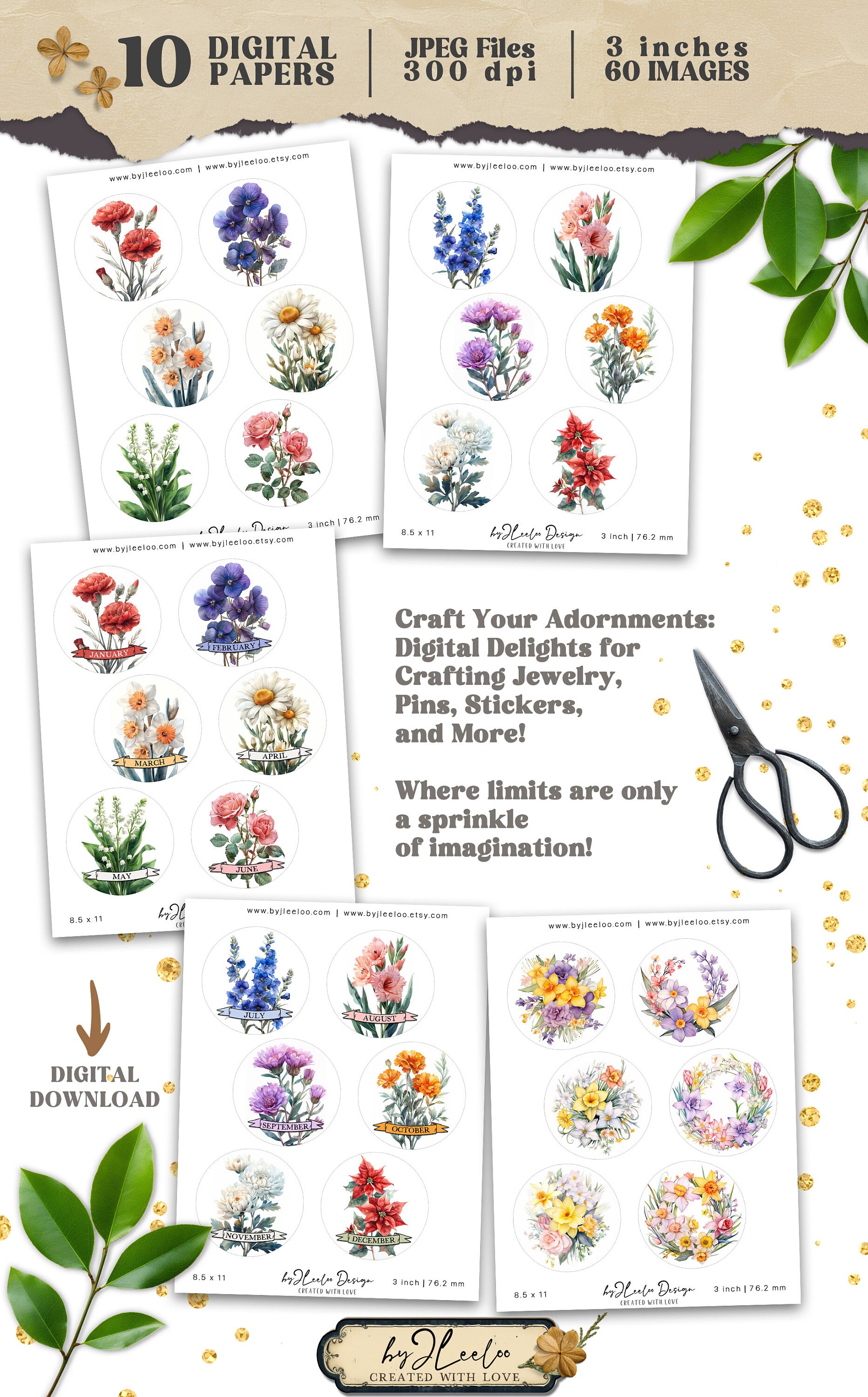 ◾ Other sizes of these images here: https://www.etsy.com/shop/byJLeeloo?search_query=birth+flowers