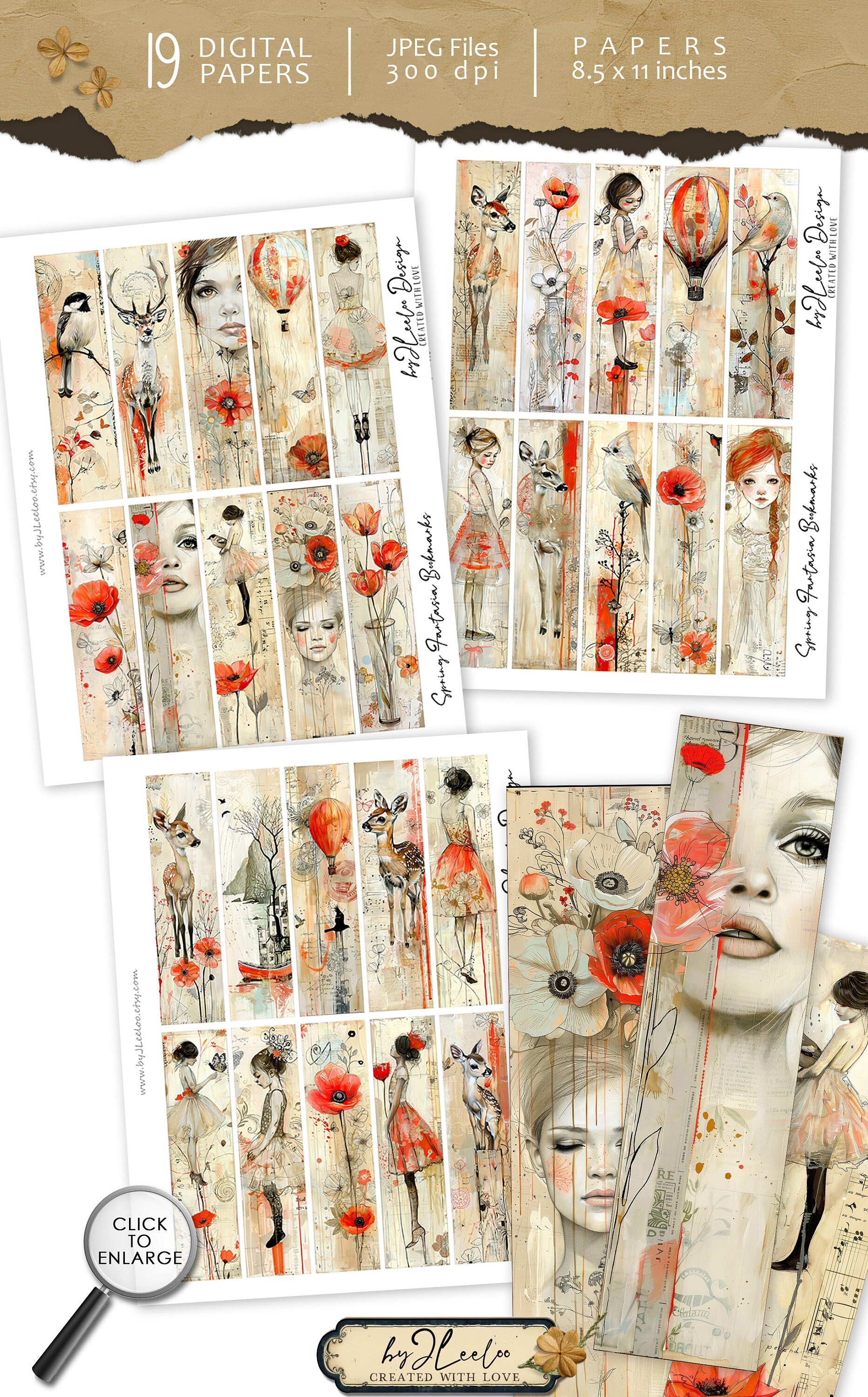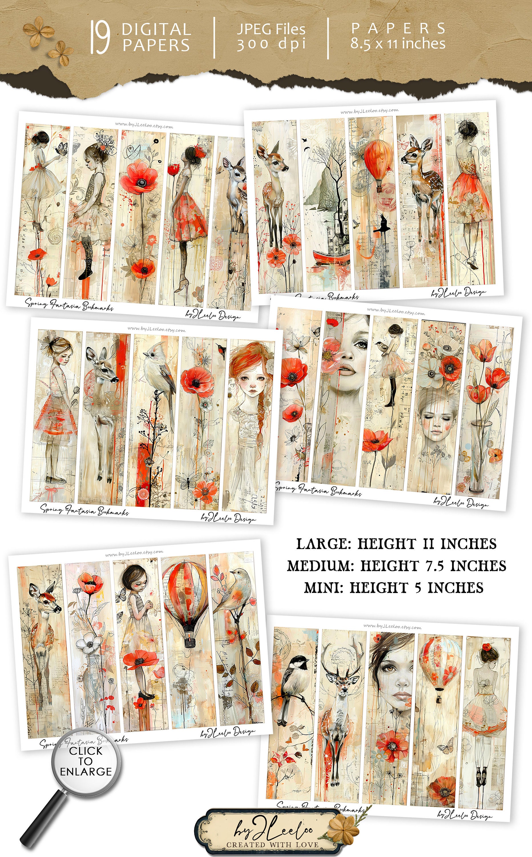 SPRING FANTASIA BOOKMARKS watercolor hand-drawn romantic card dancing girls | Scrapbook tag ephemera junk journal | digital collage | pp795