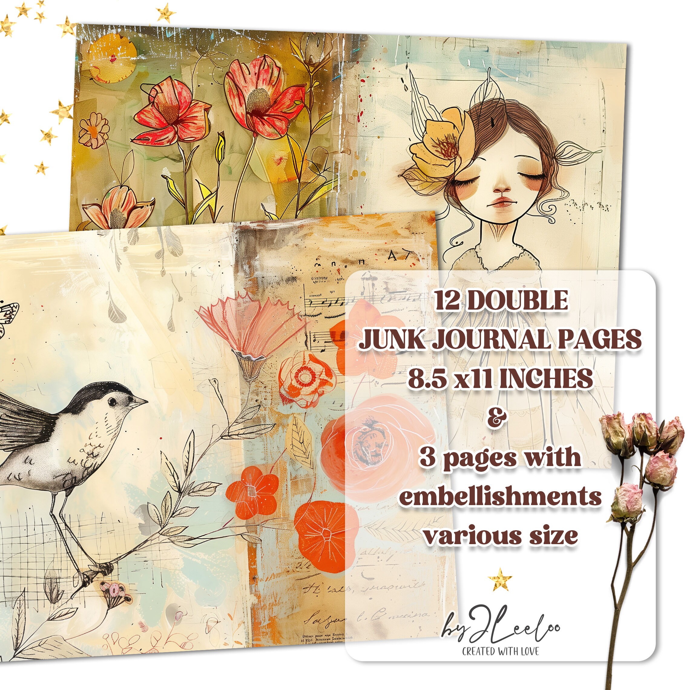 12 junk journal pages | double pages in 8,5 x 11 inch paper